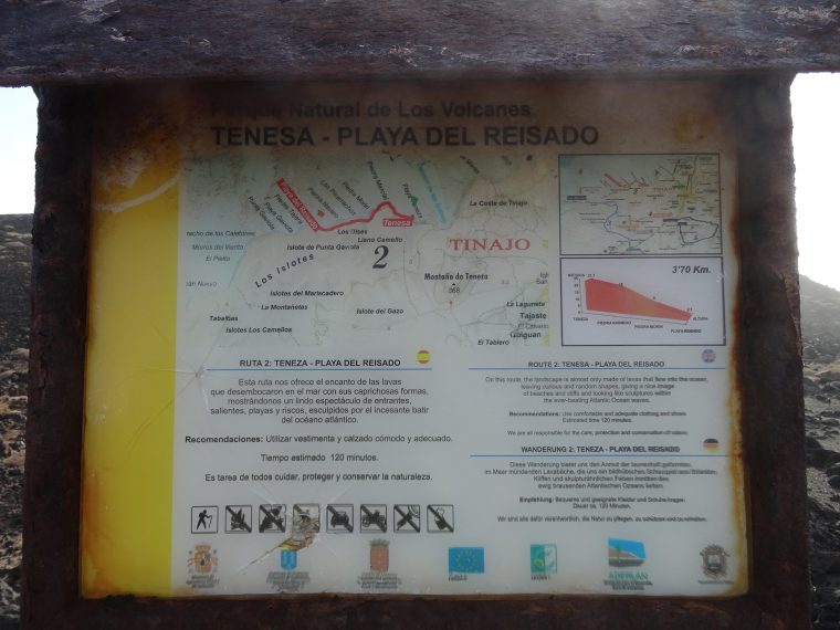We left the village towards the west and soon came across a signboard of the municipality of Tinajo. We walked a bit over lava rock on the footpath along the coast, but made a U-turn before haven reached the Playa del Raisado. 5 km