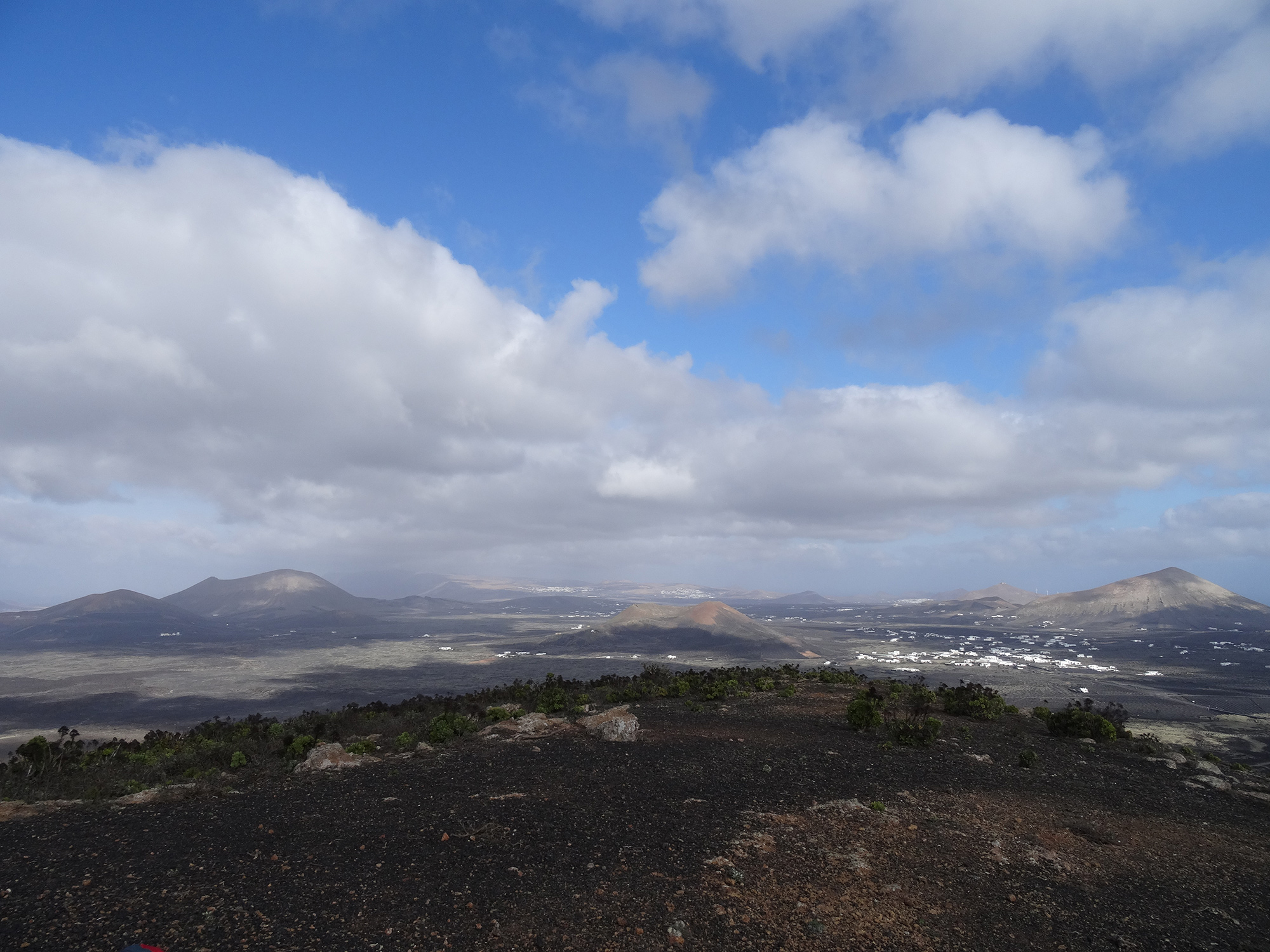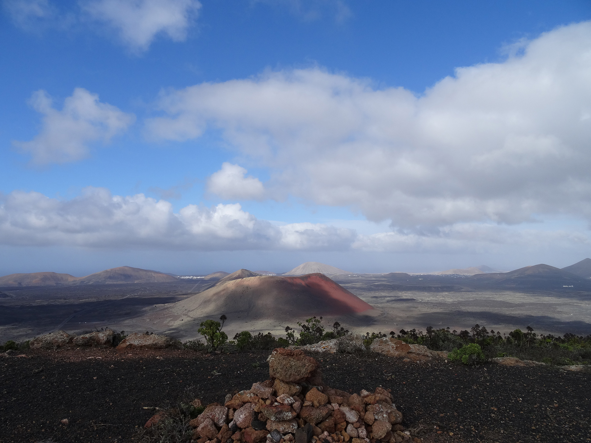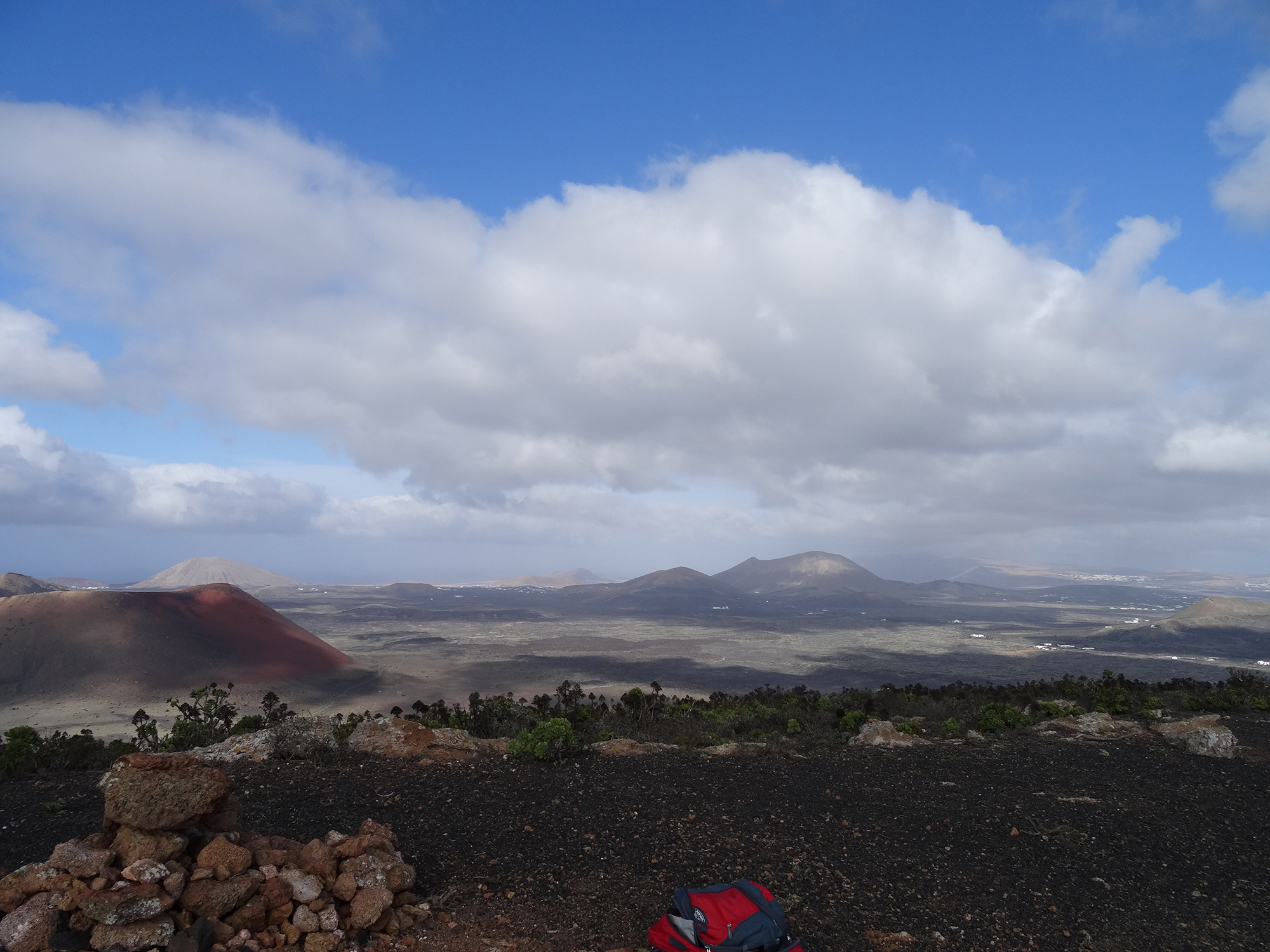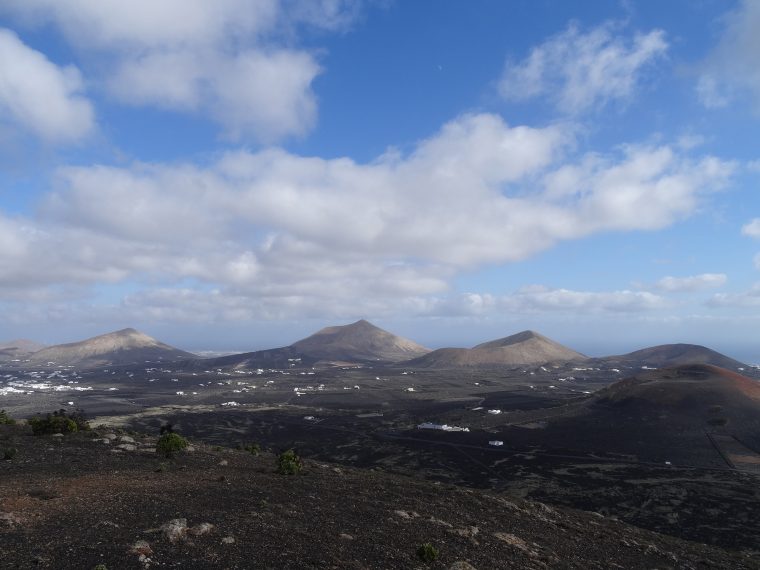 The view from the 509 meters high top of the volcano was outstanding, covering the whole of Lanzarote and granting a look inside the double crater of Montaña del Cuervo (385 m) far below.