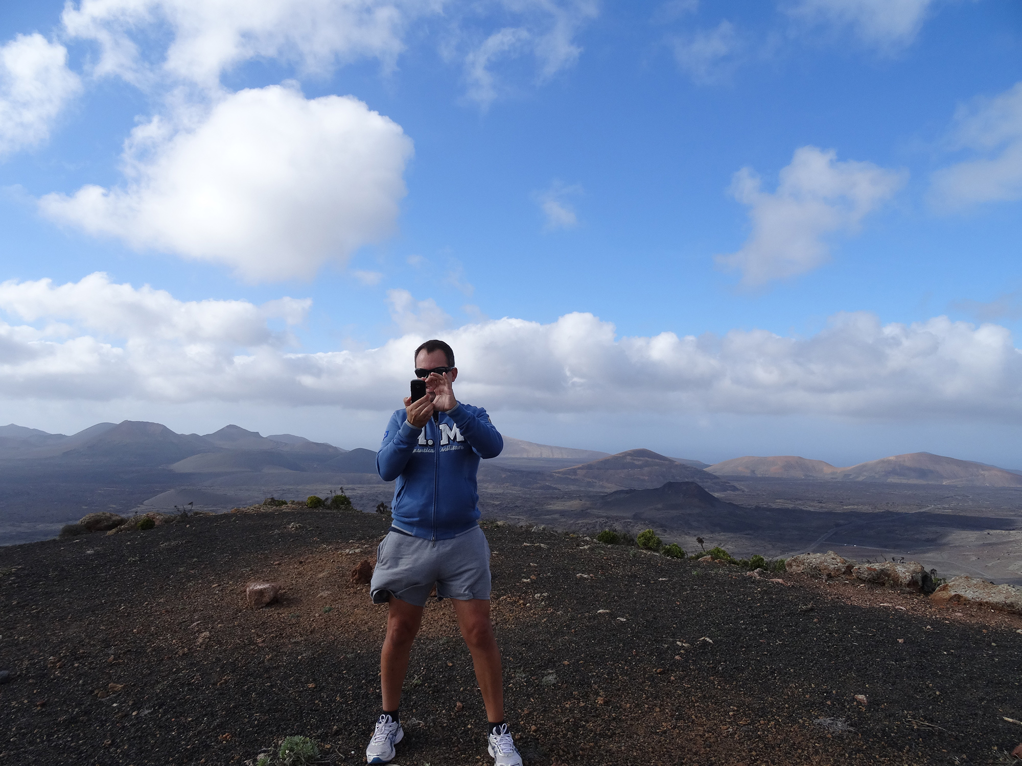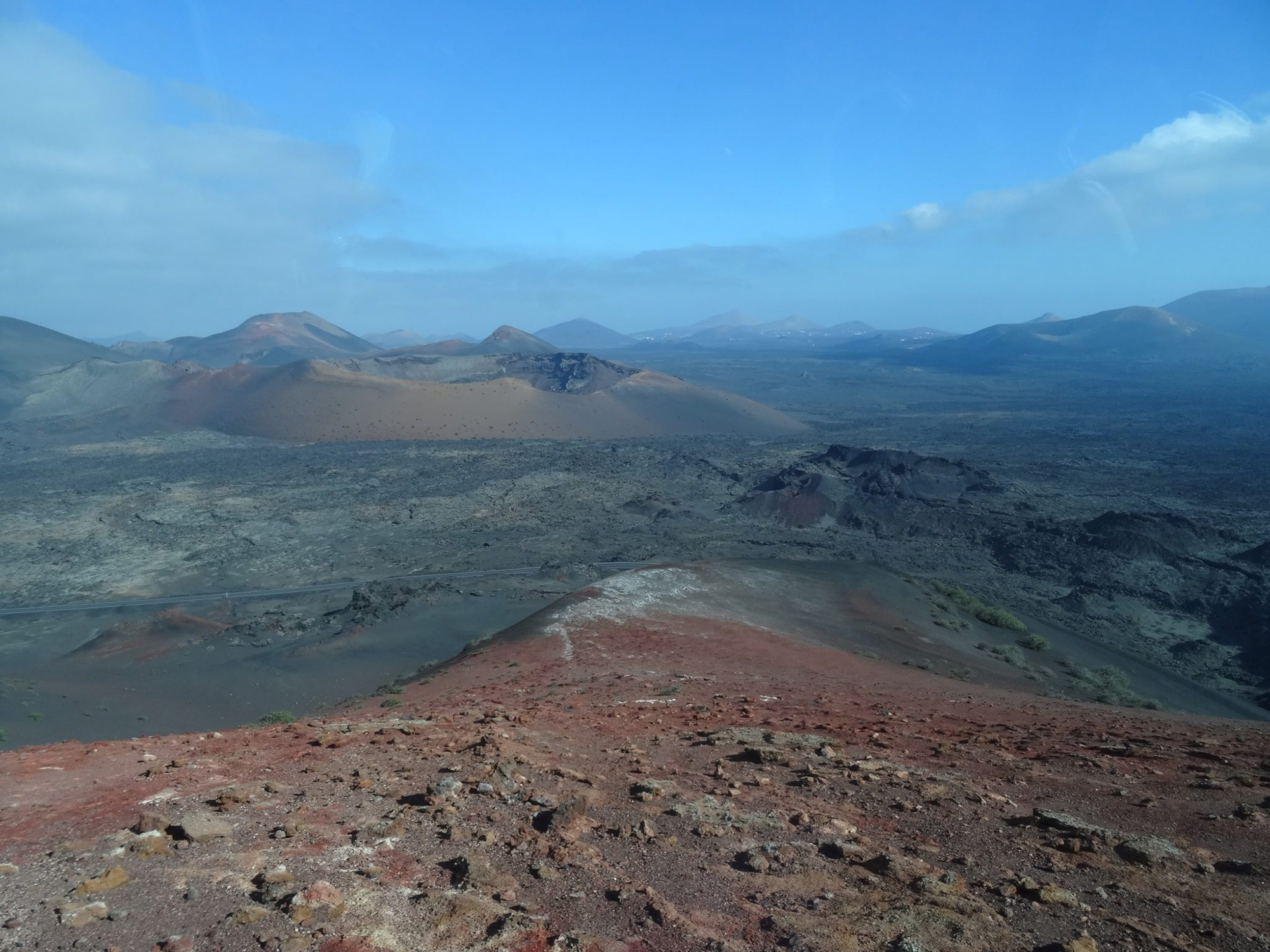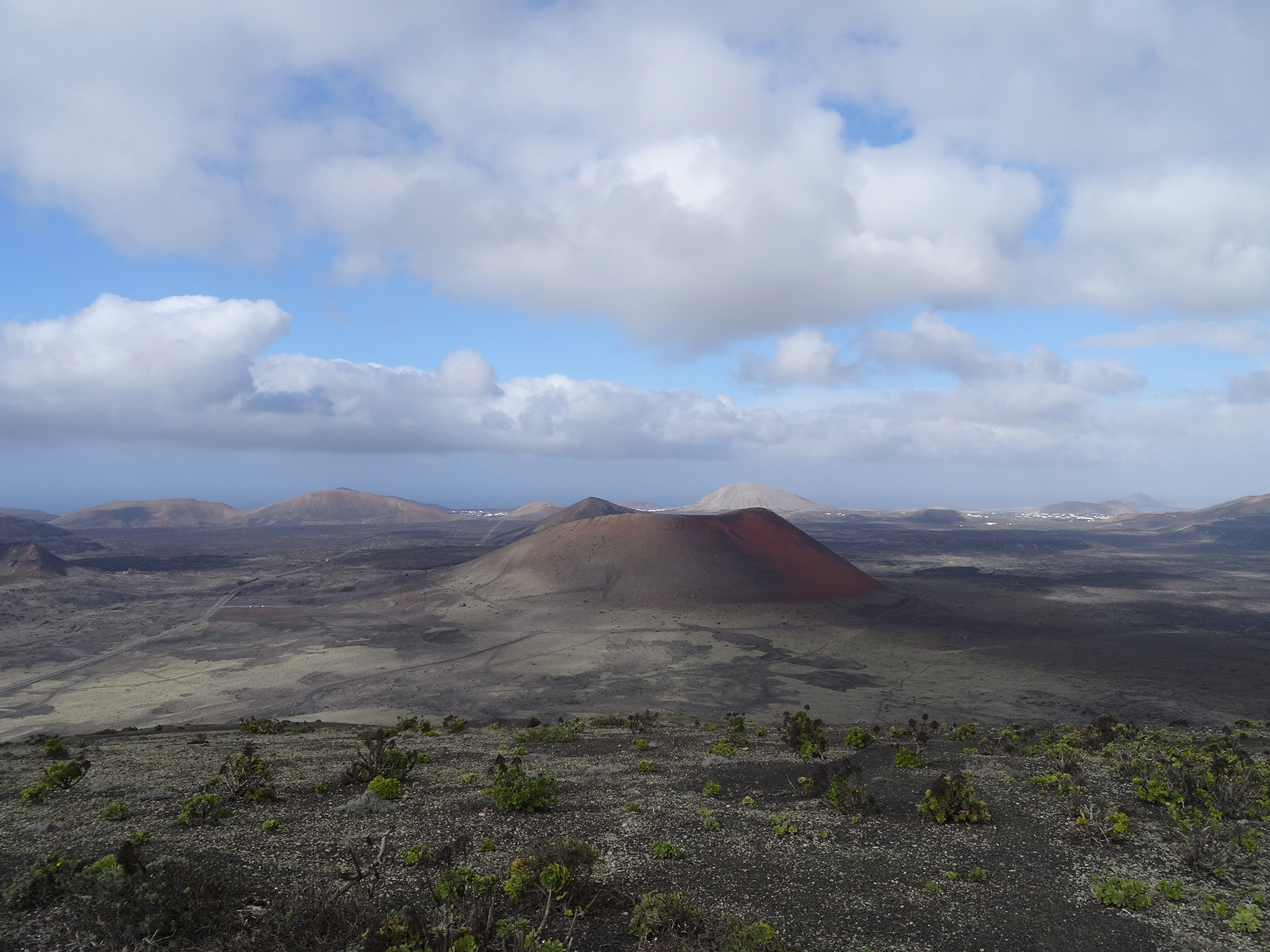The view from the 509 meters high top of the volcano was outstanding, covering the whole of Lanzarote and granting a look inside the double crater of Montaña del Cuervo (385 m) far below.