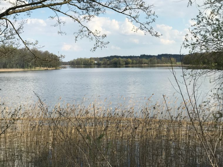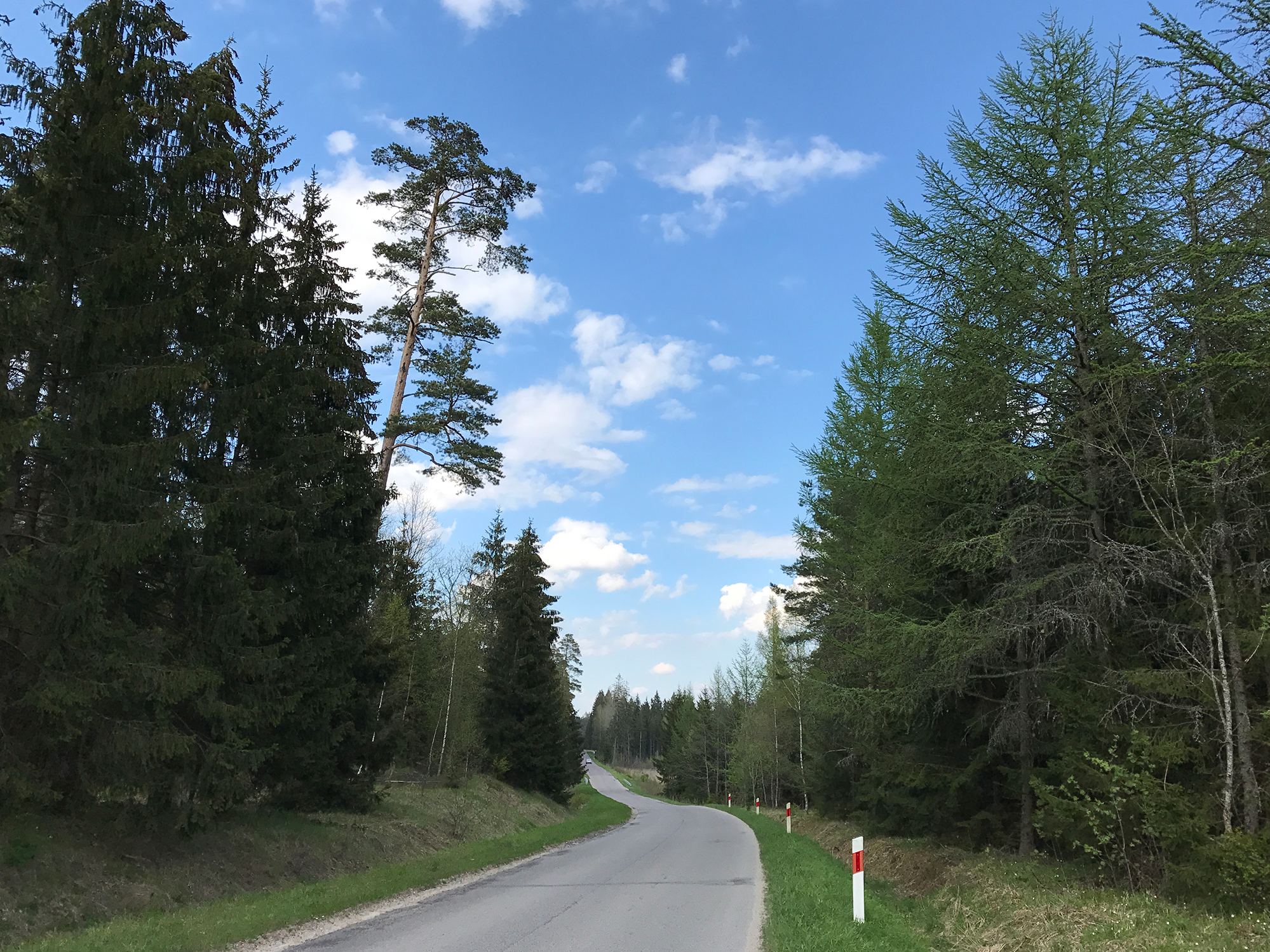 Day 15 The third day through Masuria: It was still cold in the morning, but as I arrived at the forest ranger house in Żytkiejmy, spring had finally came back. The air was filled with the song of the birds and the sents of the surrounding forest. Nobody was at home, but two huntiung dogs were securing the place. I took place on the bank in front of the house and enjoyed the rest and the warming sunshine.