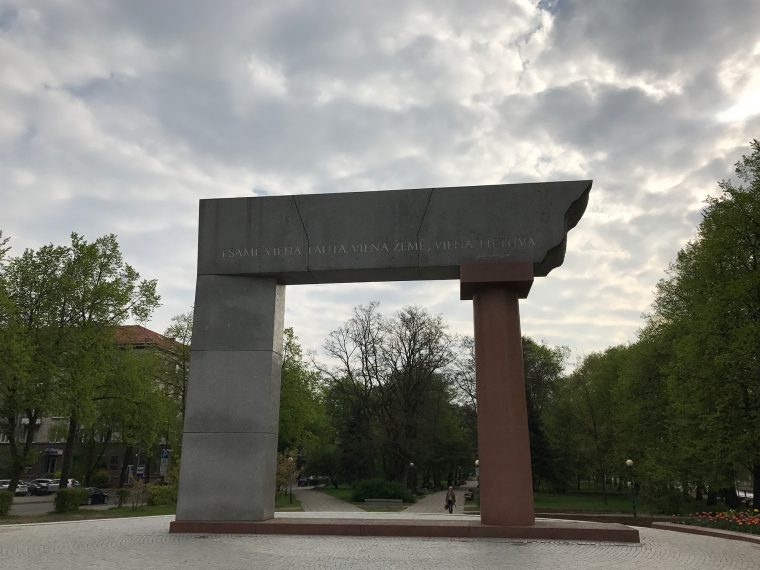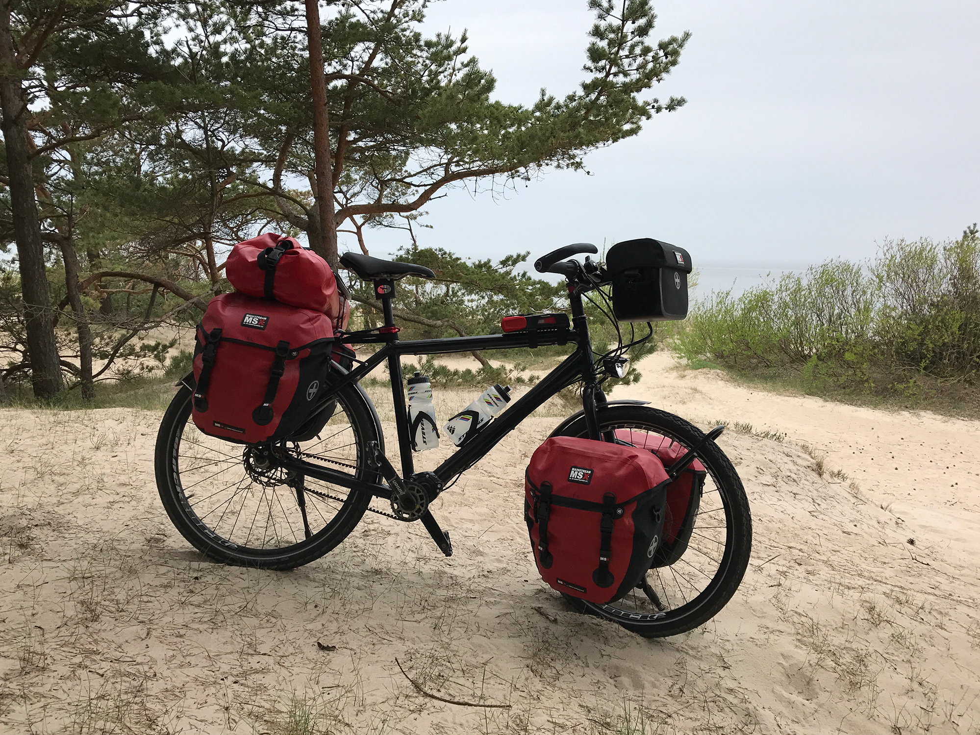 Day 20 I left my cosy hotel at 9am and cycled to the city centre. At the granite monument Arka (the Arch), a cyclist asked me where I was coming from, where I was going next and we started a chat. Marius is a Warmshowers member, but usually hosts cyclists in his own hostel. He kindly offered me to show me how to get to the EuroVelo 10 and we cycled together for a while.