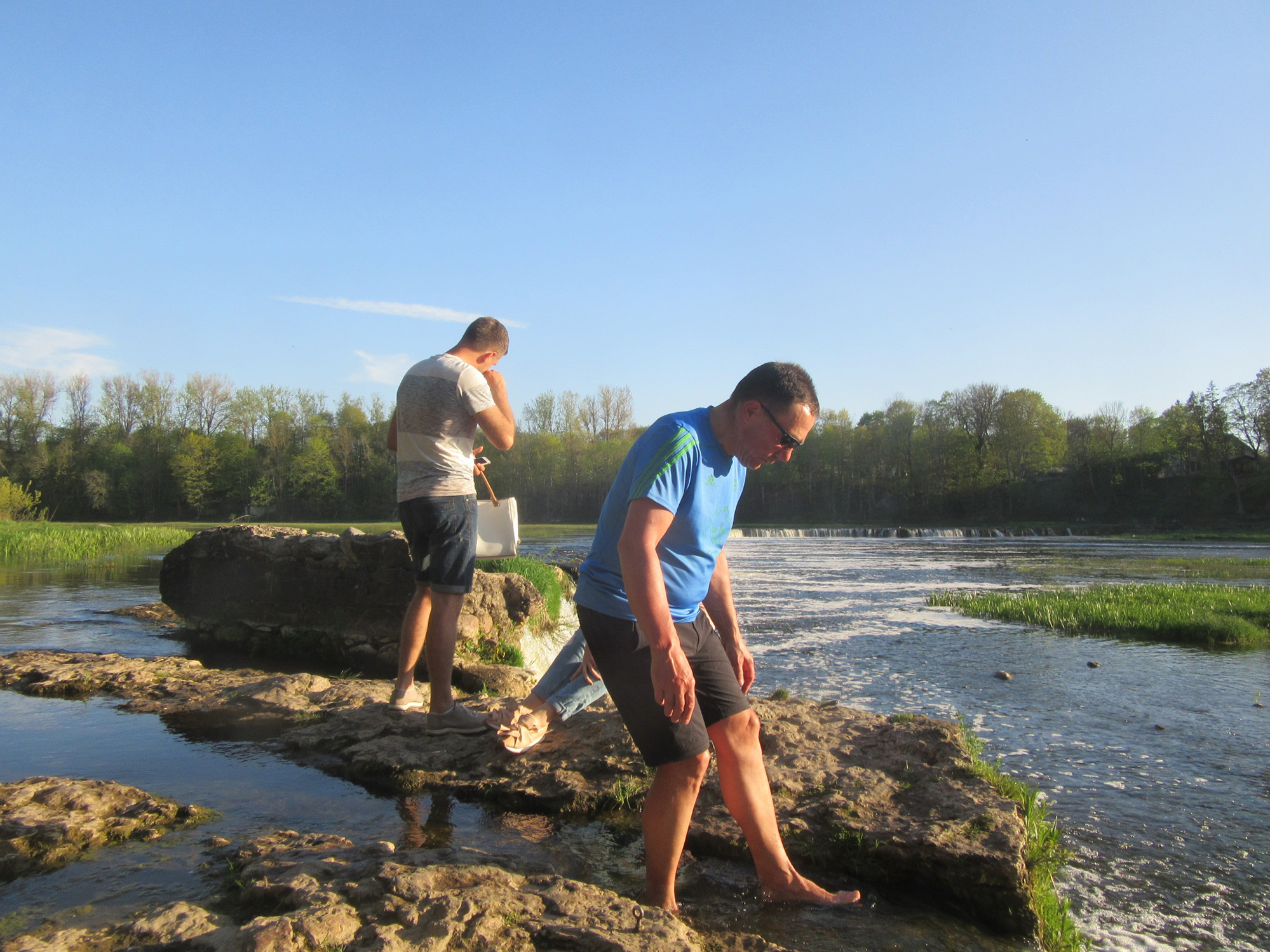It was so touching how both of them helped me feeling really comfortable. After having taken a welcome warm shower, David asked me if I would like to go to Ventas Rumba, the famous waterfall on the Venta river. Of course, we did it and I could take a footbath in the river and see the flying sturgeons in their attempt to jump up the natural river step. The sun was shining, storks were flying above the river or chasing in shallow water, young people swimming upstream from the waterfall and I was so grateful to willfully seize this unique moment!