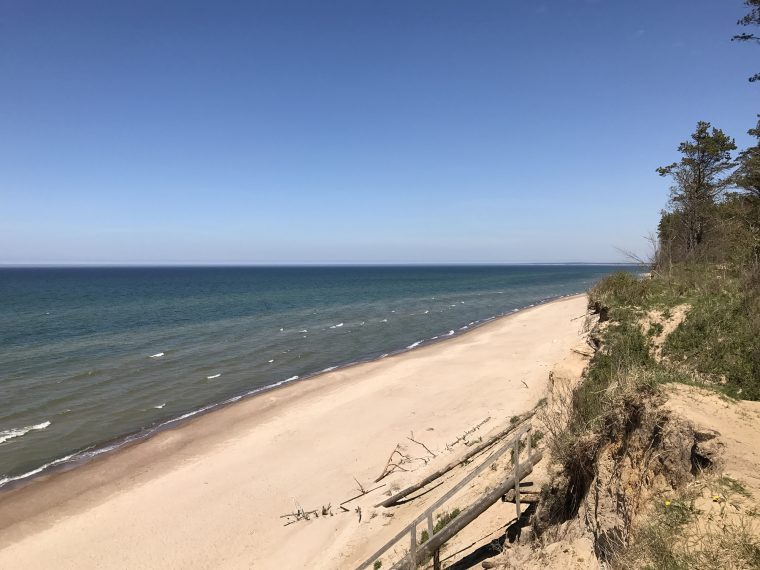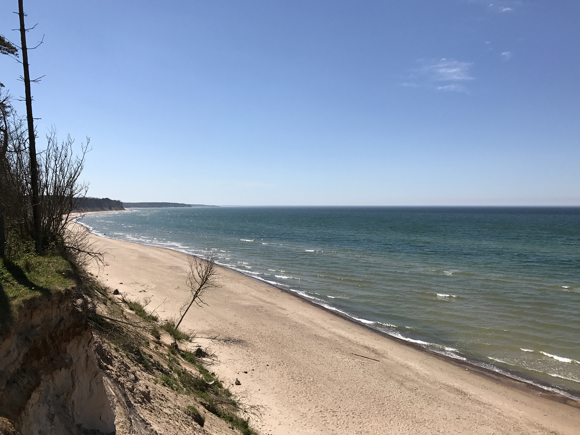 I said goodbye, stopped at a nearby cake shop to get some breakfast and took the costal road to Jūrkalne, where I arrived around 1pm. I bought some food at the local shop and went to the famous cliffs my next Warmshowers host David had recommanded to stop by. I allowed me a break on the cliffs before heading to Kūldiga.
