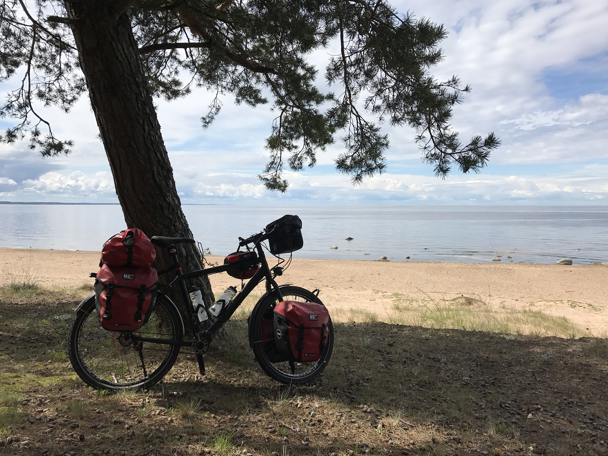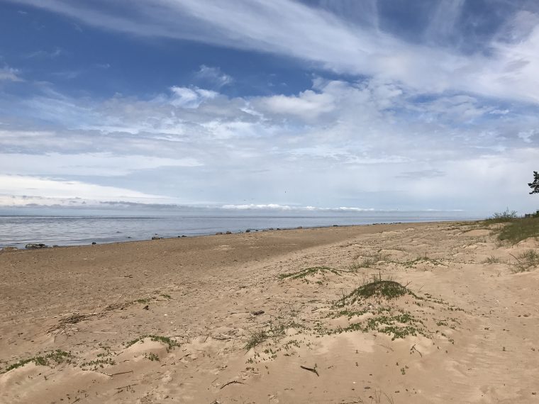 Ich reached the Baltic Sea again near Saulkrasti, the sun was shining again and allowed me a break under the pine trees at the seeside and later kept heading north.