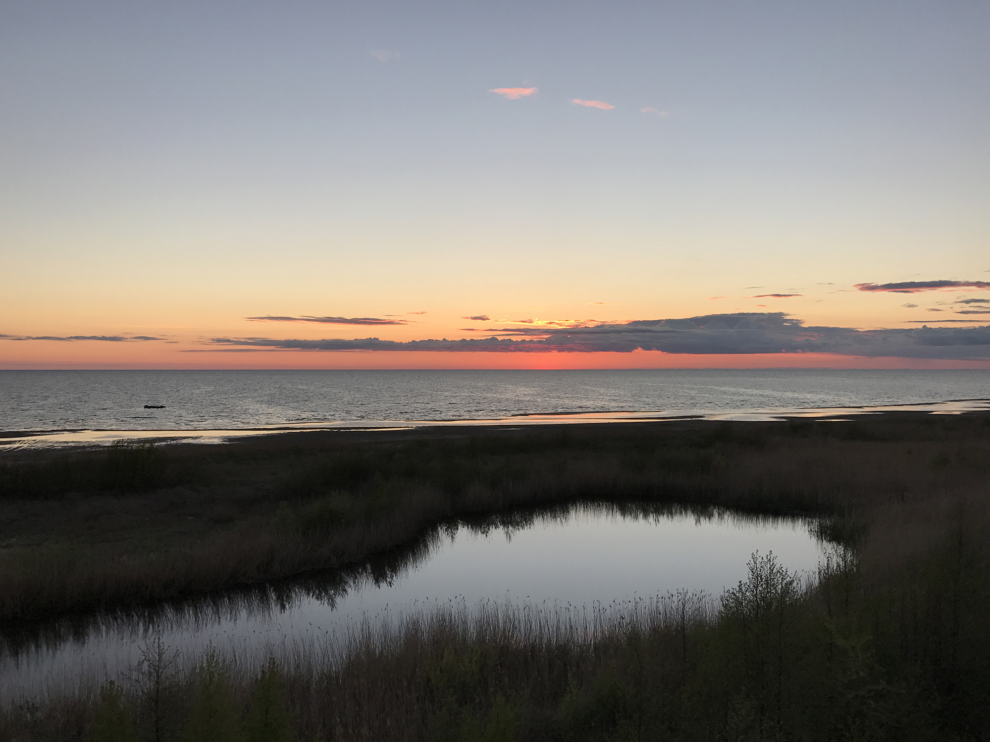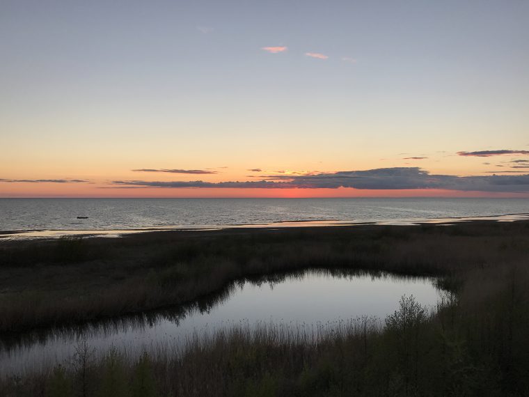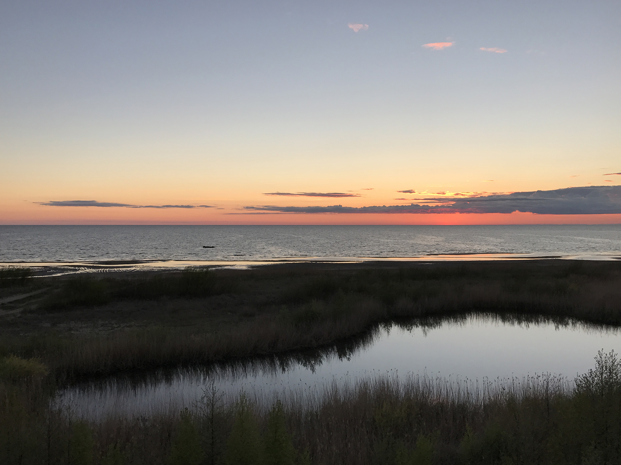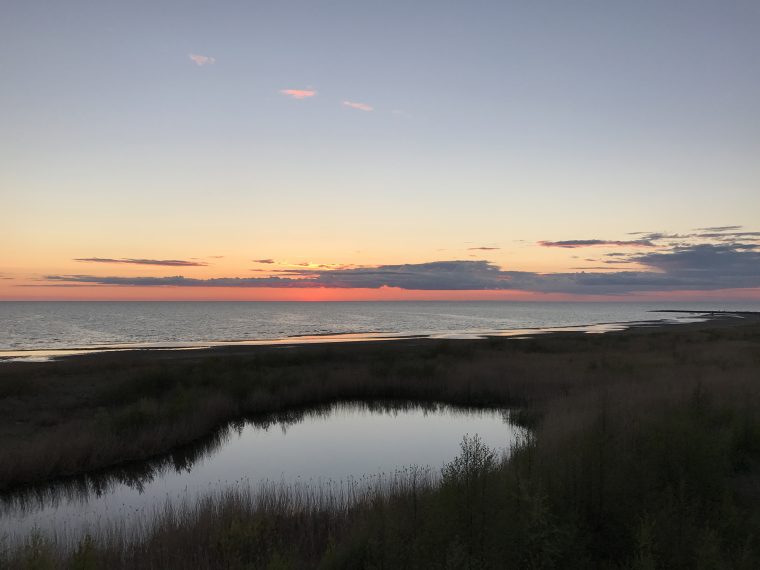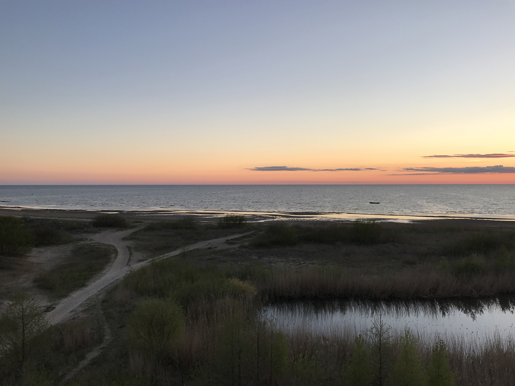 She later took another side road to a camping site at the coast and I continued my journey to Ainaži where I arrived at 7pm. At the guesthouse I took a shower and had a delicious dinner. After sunset I walked to the beach, where I discovered an observation tower I climbed up to take a few pictures.