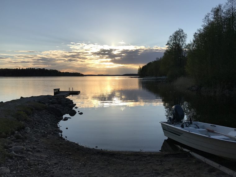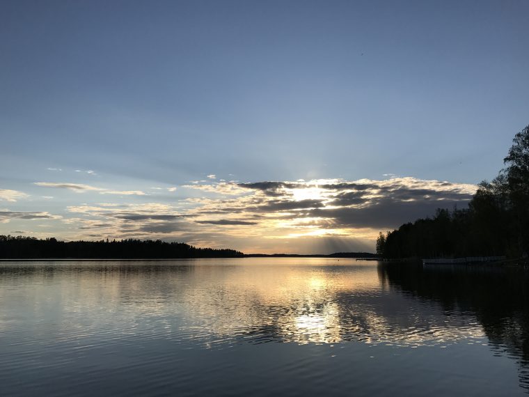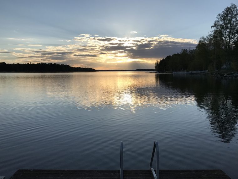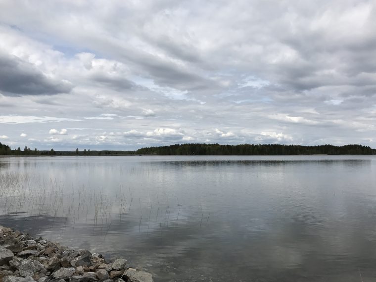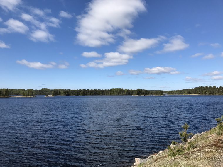 My legs had not recovered from yesterday’s long stage and I prefered to push my bike on long slopes to save some energy. I stopped at a shop in Ruokolathi, bought sandwiches, fruits and a bottle of strange tasting apple spritzer. Around noon I stopped for lunch at a lake near Virmutjoki. I had a few further short stops in the afternoon and finally reached Punkaharju at 5.30pm. There was nobody at the reception of the guesthouse, so I called the host and was free to choose my room. After having taken a shower and washed my sweaty clothing, I walked to a nearby pizzeria (the only one alternative being a grill shop) and got there a tasty pizza (with jalapeños), a tuna salad and beer. On the way back I stopped at the lake, enjoying the view and quietness of the place. Back at the guesthouse, I started to update my travel blog, but went to bed after a short while.
