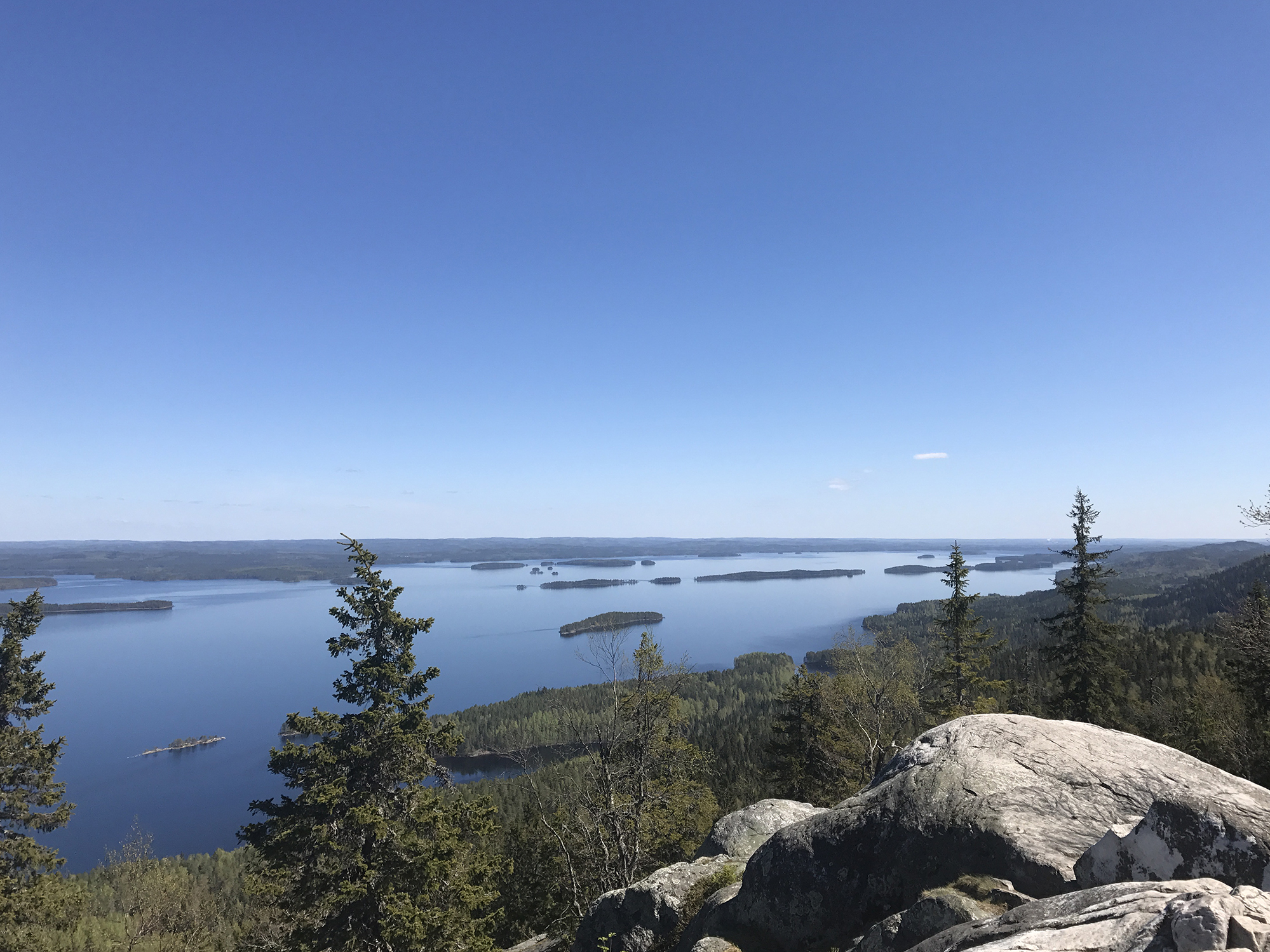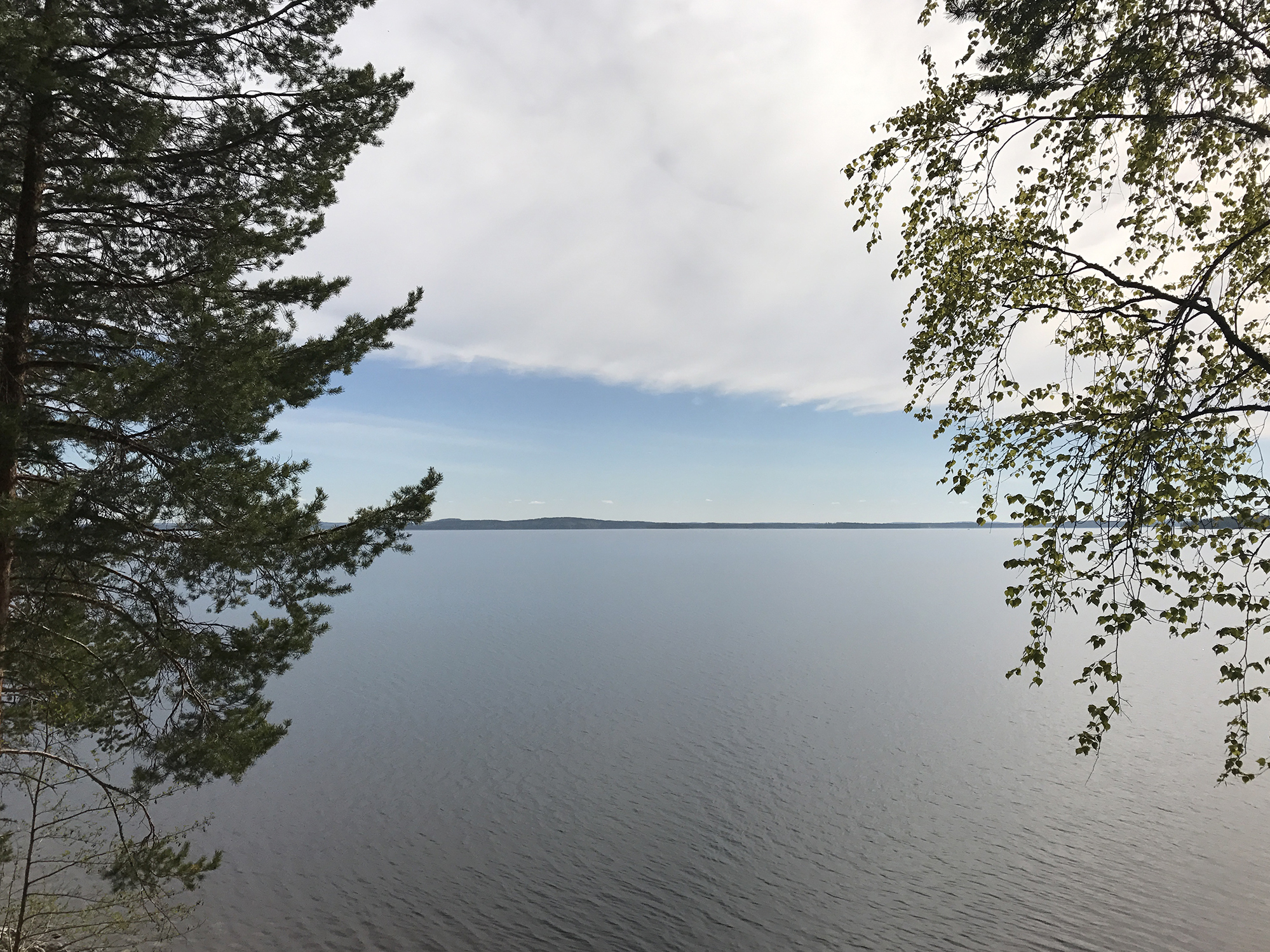 Day 42 After a short night, I had a copious home-made breakfast and leaved the cottage around 9.30am. I had to first cycle the same way back to catch road 6 in Ahmovaara. It was then easy to cycle on road 6 northward. But as my navigation app directed me on a secondary road, I had to climp up steep slopes and was after a while happy to be again on road 6. On the last kilometres on road 75 eastward toward Nurmes a fresh headwind halved my speed. Nurmes town centre lies on a narrow hill ridge between lake Pielinen and lake Nurmesjärvi.