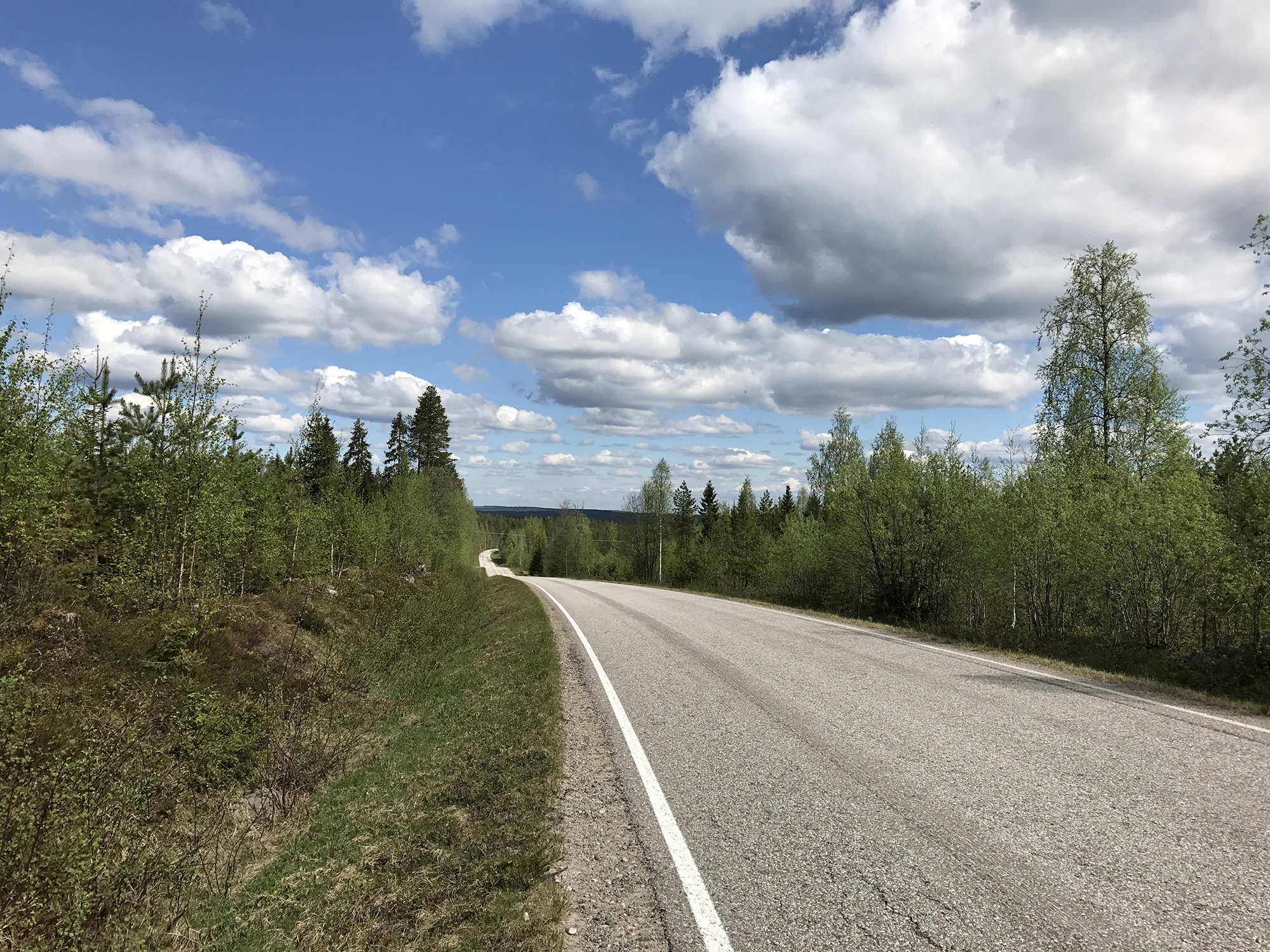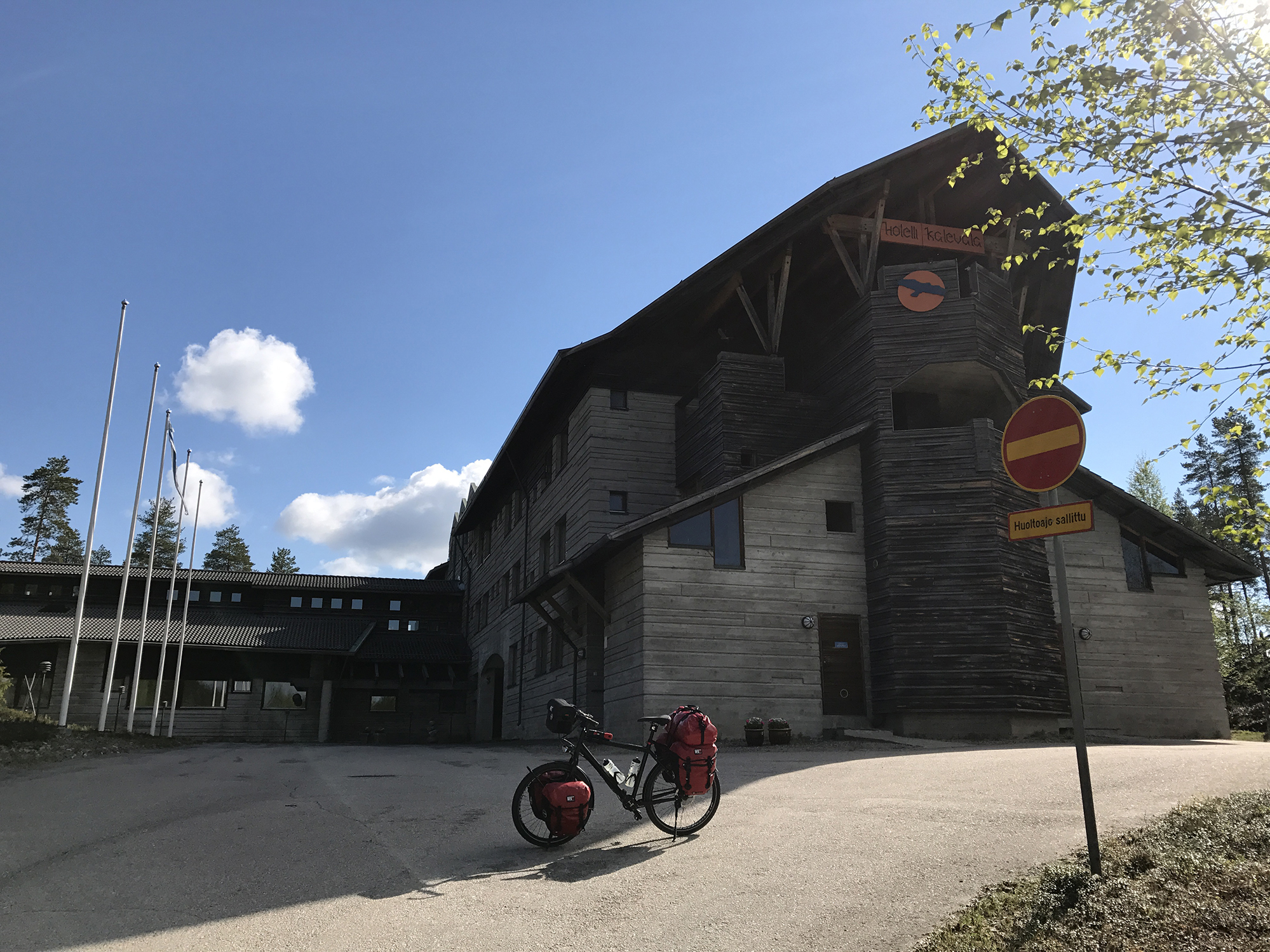 Day 44 I left Hotelli Kalavela around 9.30am after a good breakfast. The sun was shining, temperature around 18ºC and there was little traffic on road 9070. After the intersection with route 89, asphalt got replaced by gravel for 10 km. In Moisiovaara followed route 9110 to Suomussalmi. Some of the slopes were very steep and I was finally happy to get some rest as I arrived in Suomussalmi.