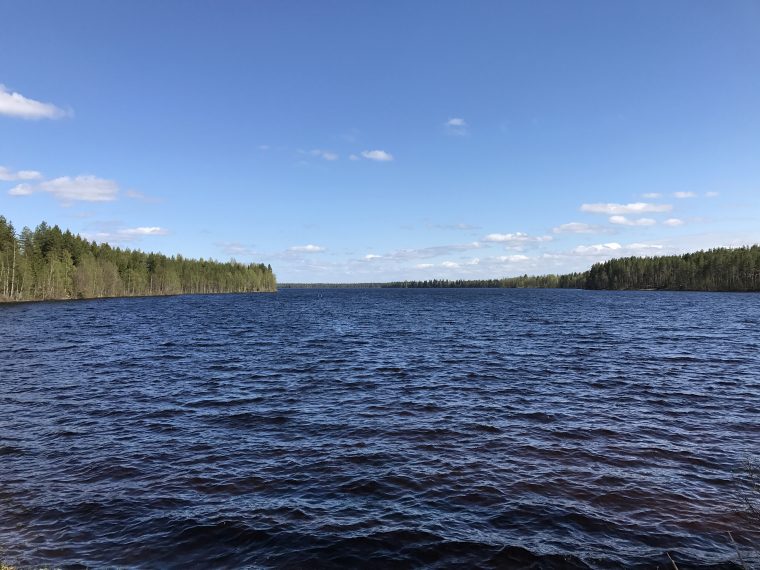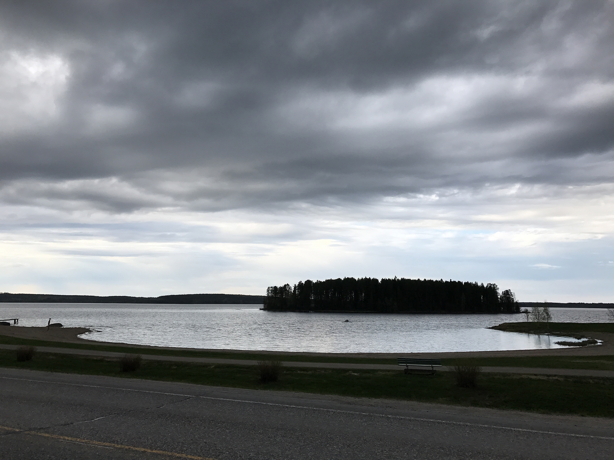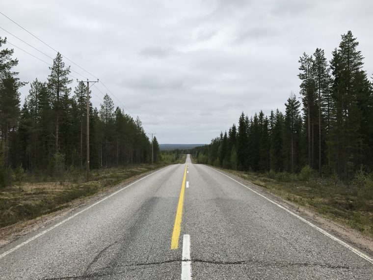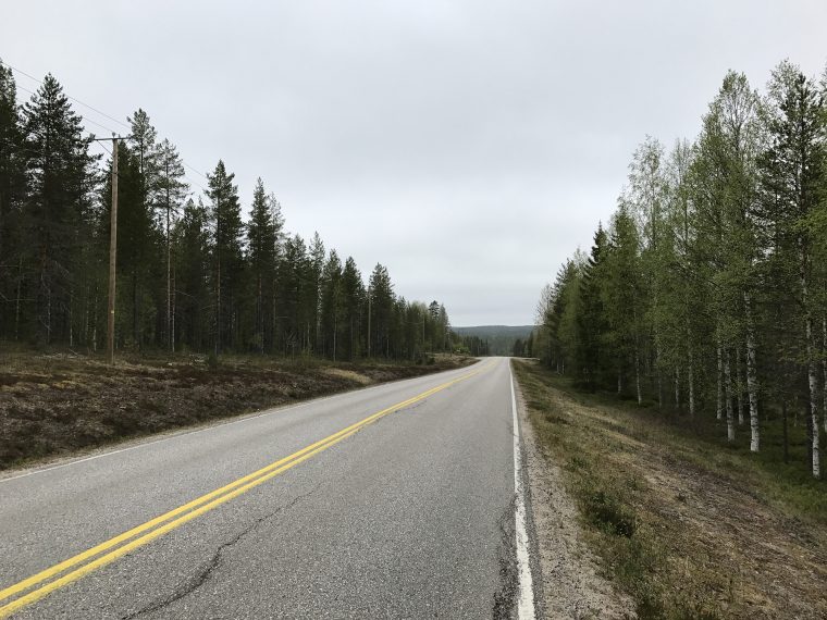 Day 45 I left Suomussalmi around 9am. Because of the cold weather in the morning (grey sky, temperature 6ºC, fresh wind from North-East) I had to dress warmly, but I froze for 2 hours. After having left road 5/E63, I was alone on road 897 and its many slopes, but the road was in good condition and I finally got a good pace. After having reached the junction with road 800, weather became gradually better and I had to remove some clothing. As I finally arrived in Taivalkoski and stopped at a supermarket to buy some food, it was summer.