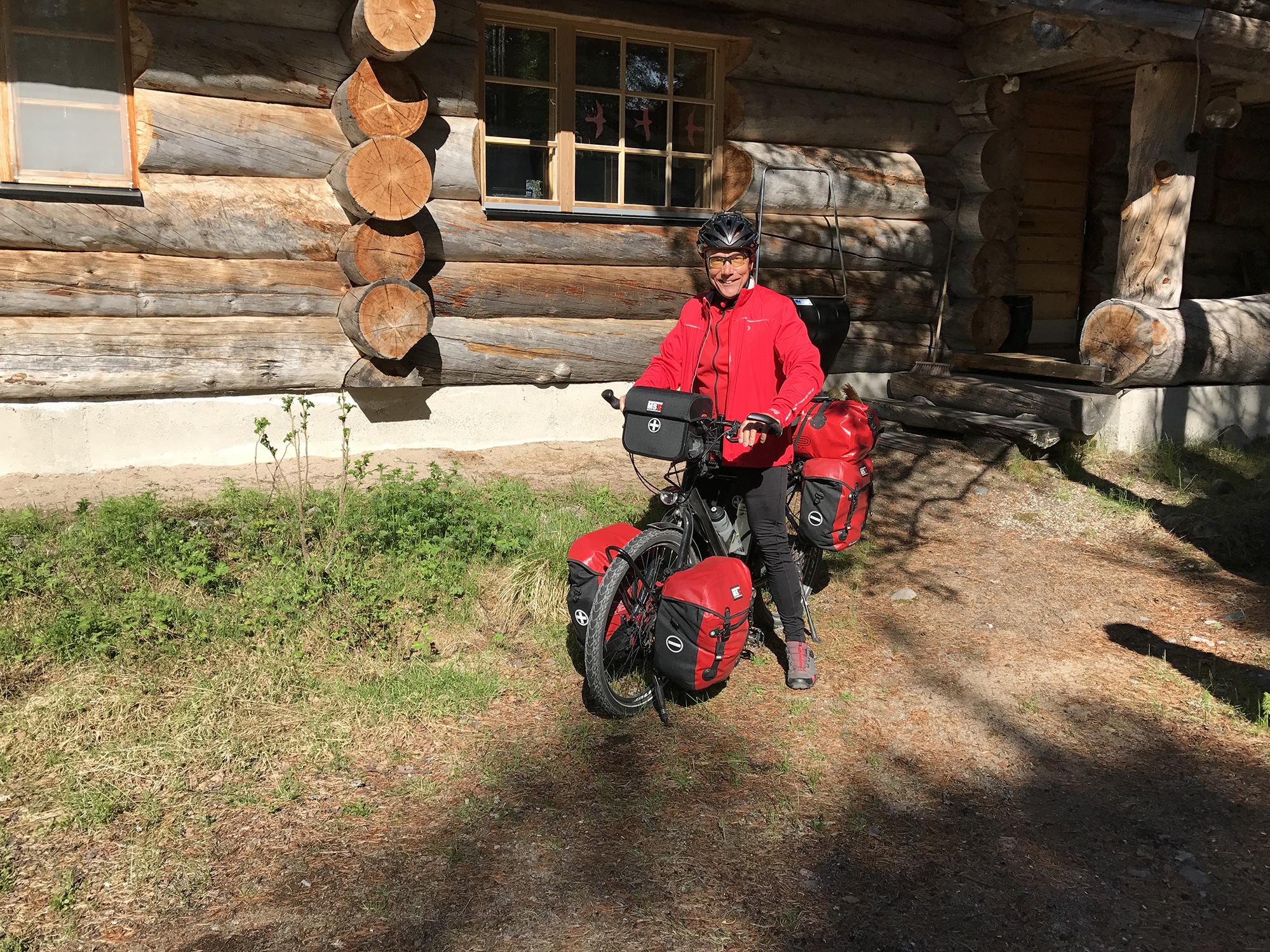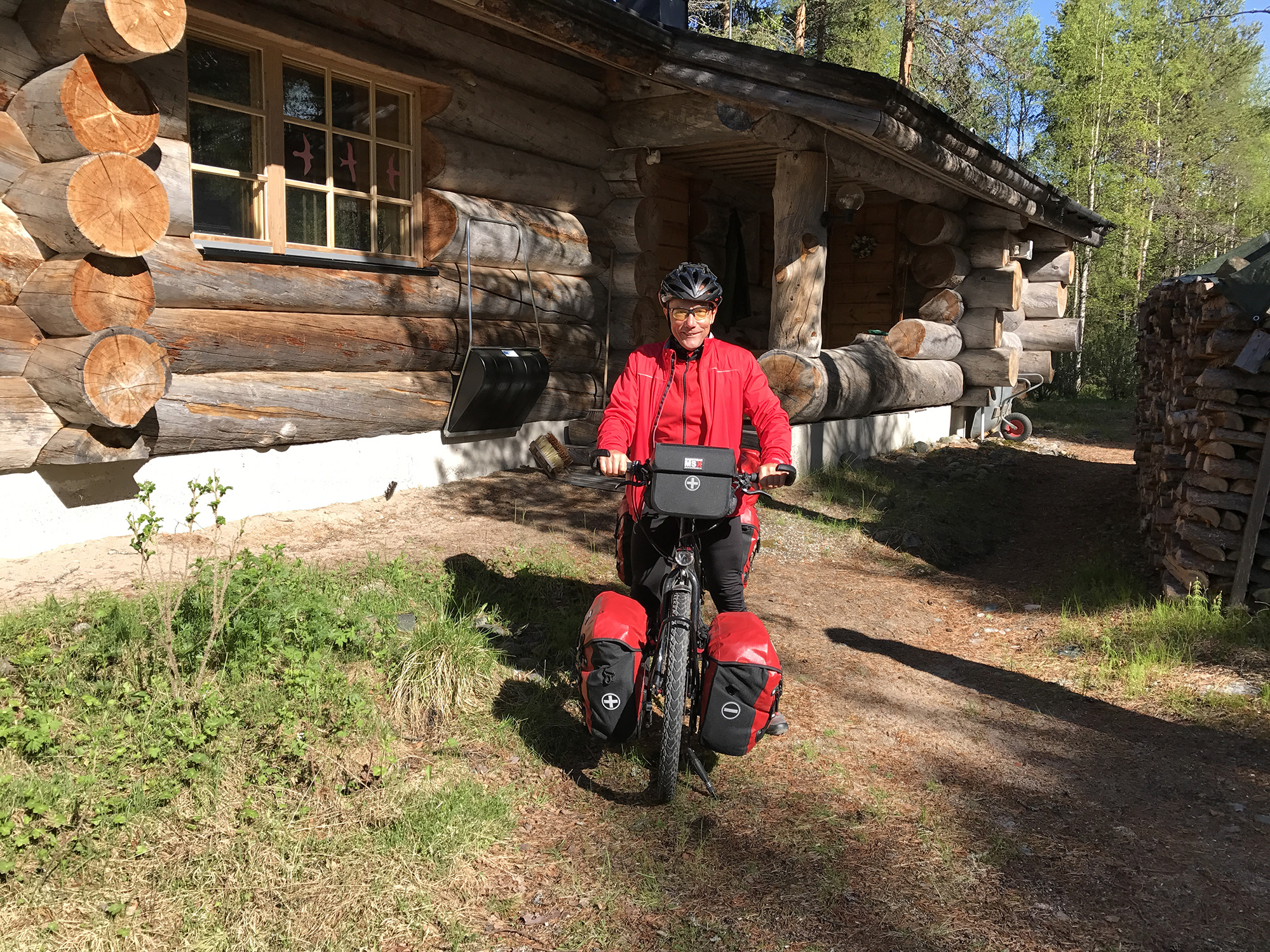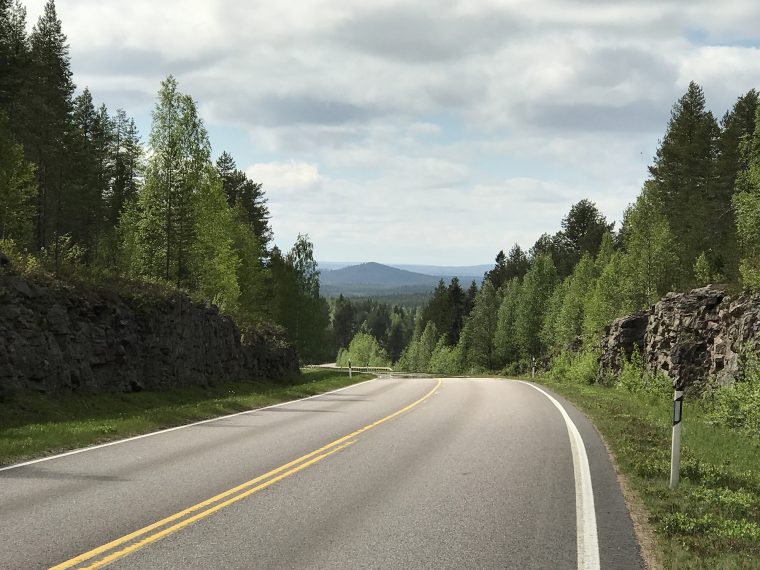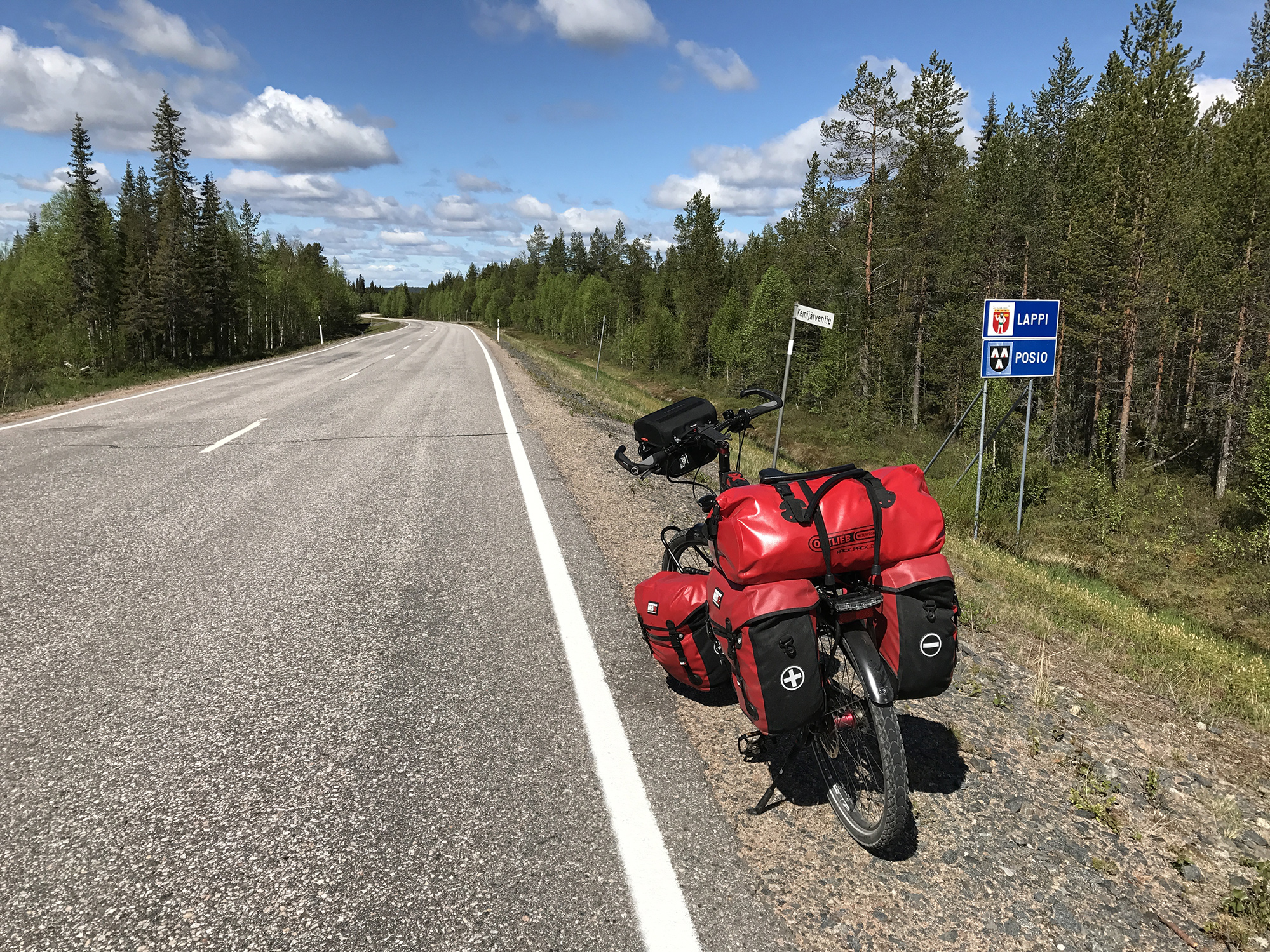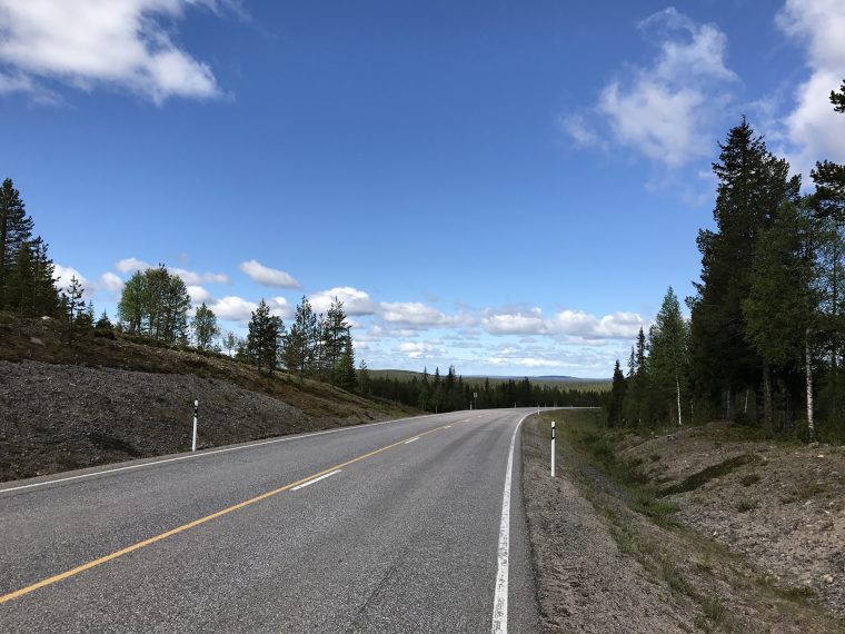 Day 53 I left Alex and Anne around 9.30am and rejoined road 5/E63 Kuusamo – Kemijärvi 10 minutes later. All the way to Kemijärvi I had to fight against a cold headwind. Around noon I entered Lapland and two hours later crossed the Polar Circle. A some places reindeers were staying on the middle of the road and first fled into the forest as passing by cars blew the horn.