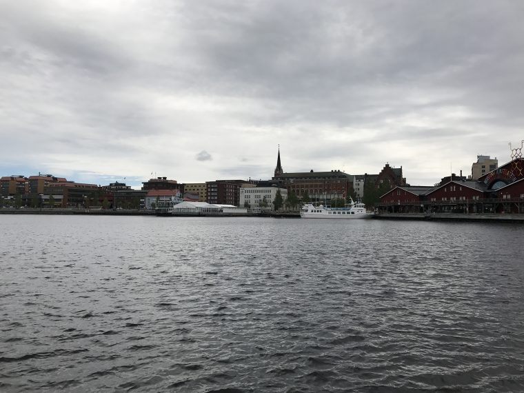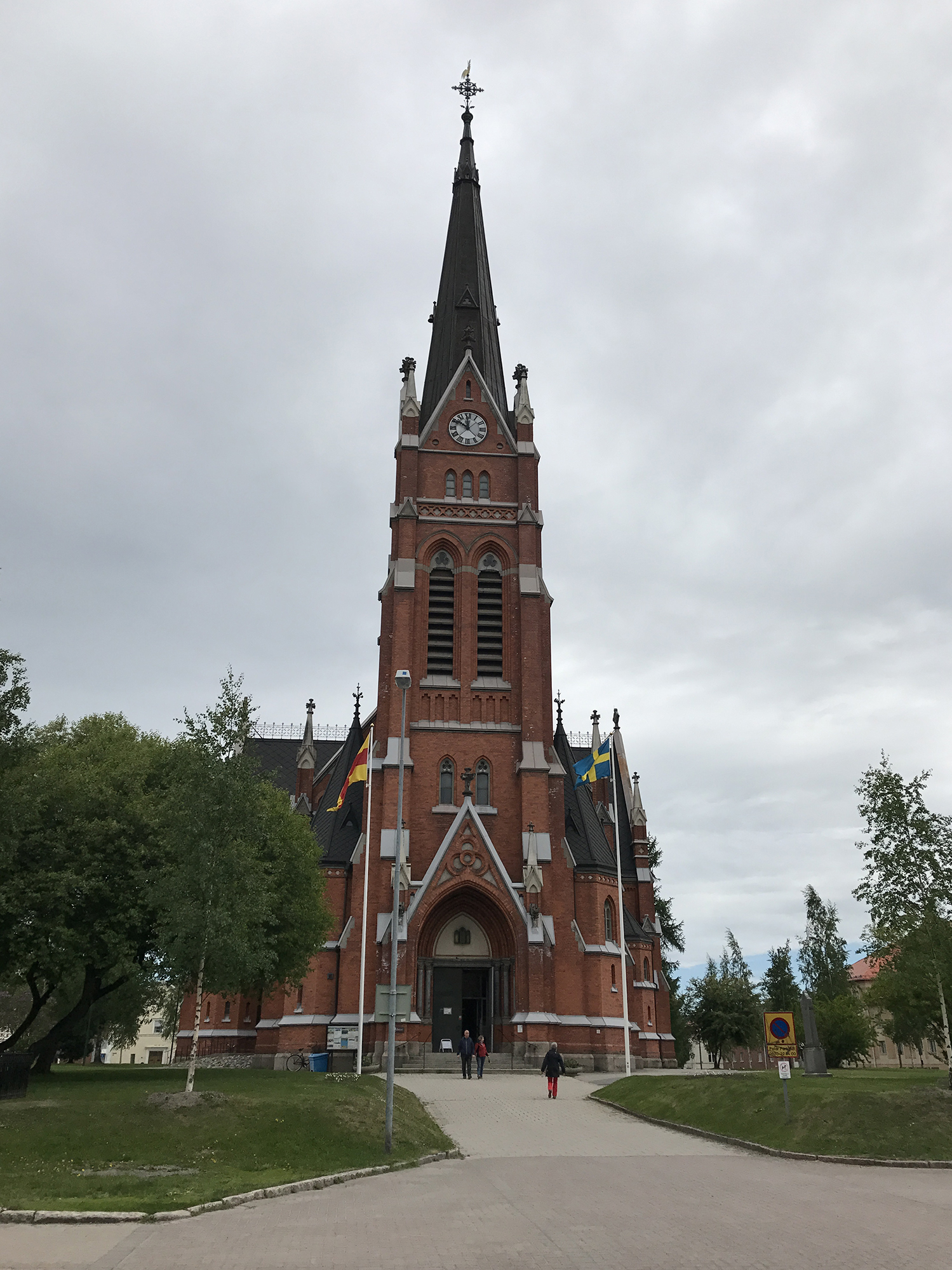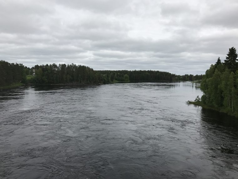 I followed road 189 to Kalix. It was a quiet road and a gentle tailwind pushed me southward. After Kalix I had to follow the main north-south road axis of Sweden: the E4. The problem was that the width of the hardshoulder was variing from 60 to 10 cm and because of the wire-rope barrier in the middle of the road, passing by vehicles could not take an appropriate distance to me and I had to cycle highly concentrated like a tightrope artist to keep balance on narrow hardshoulder sections. I was more than happy as I finally could leave the E4 round 20 km before Luleå. The road from Persön to Bensbyn is close to the seaside and there was little traffic there. I stopped at the a sandy beach at the Björsbyfjärden to clean up my bike before going to the hotel downtown Luleå, where I arrived around 6.30pm. I left my bike in the well heated hotel garage. The city was deserted this Friday. Midsummer’s day (Midsommar) is on Saturday June 24, but the Swedes celebrate it on the eve (Midsommarafton), i.e. on Friday and Midsummer’s Eve is a de facto public holiday in Sweden with offices and most of the shops and restaurants having closed. But I was lucky to find an openend bisto/restaurant here I got a tasty salad with shrimps, spaghetti carbonara, tiramisu and lager beer.