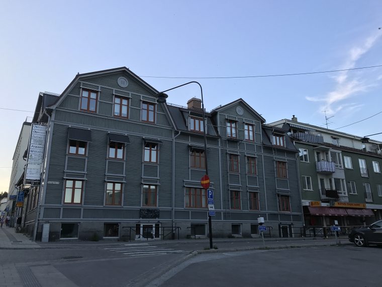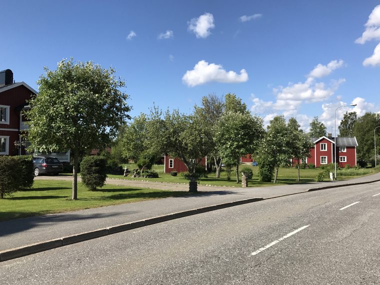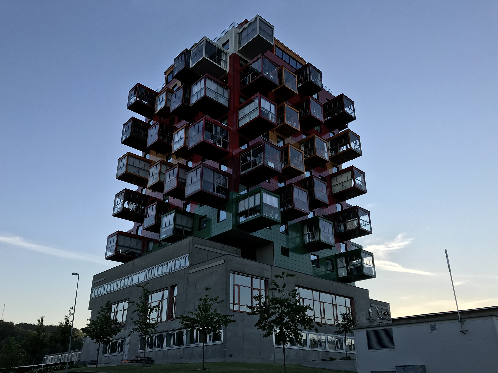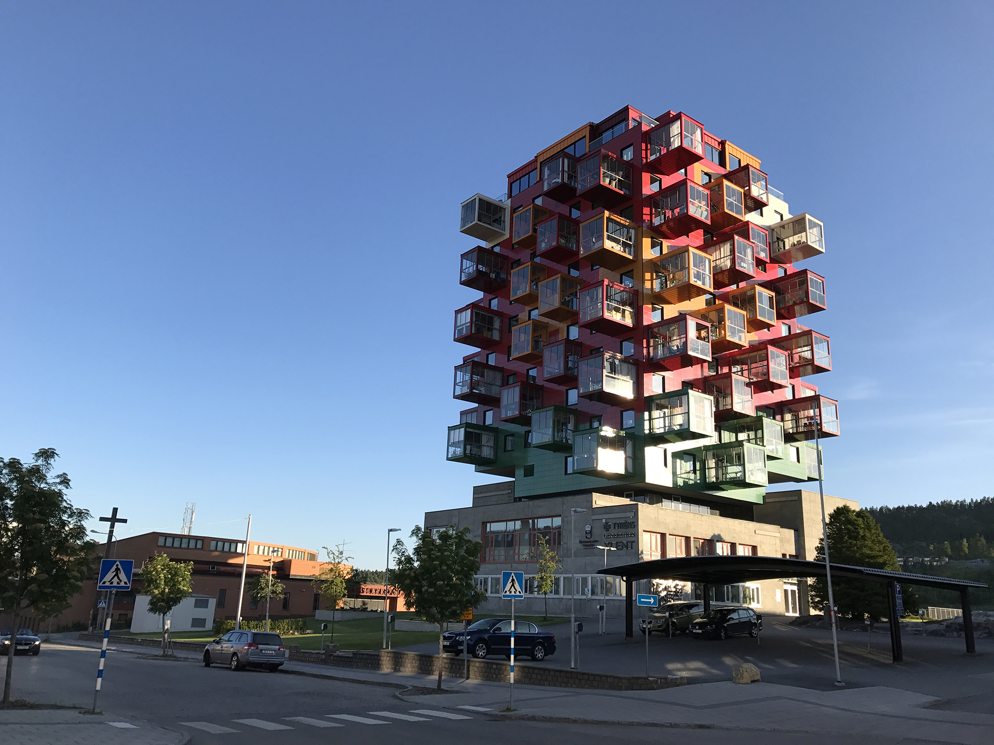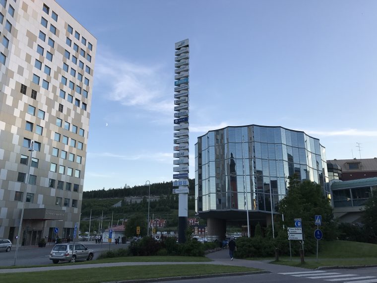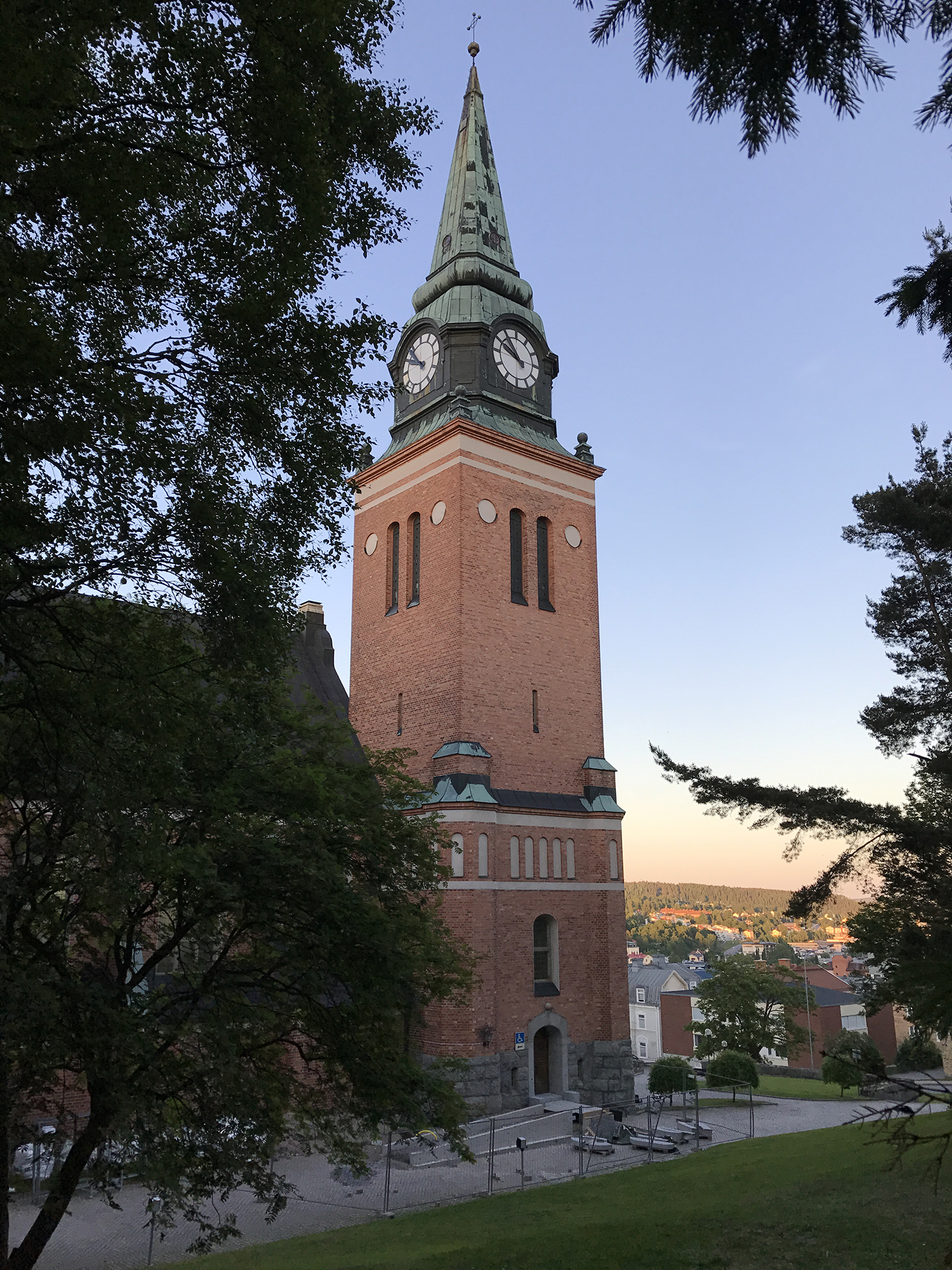 Day 63 After a delayed spartanic breakfast, I left the hotel around 8am and had no problem to get outside of Umeå. The weather was fine, the terrain relatively flat and a tailwind gently pushed me southward. But on the last 50 km I entered the Höga Kusten region and it became more and more hilly. At 6.30pm I reached Örnsköldsvik, the home city of Fjällräven, and the guesthouse. After having taken a refreshing shower I walked downtown for dinner and stopped at a chinese restaurant. After dinner I walked a while along the sea front, where two huge port cranes remind of the former harbour location.