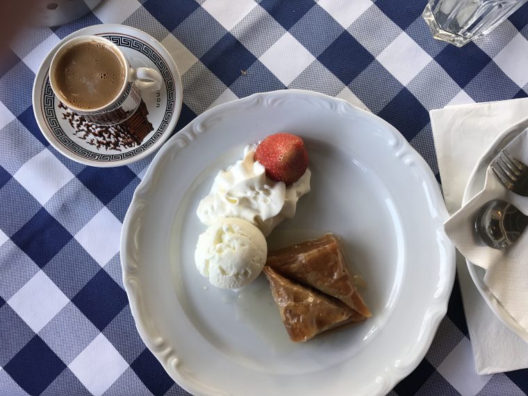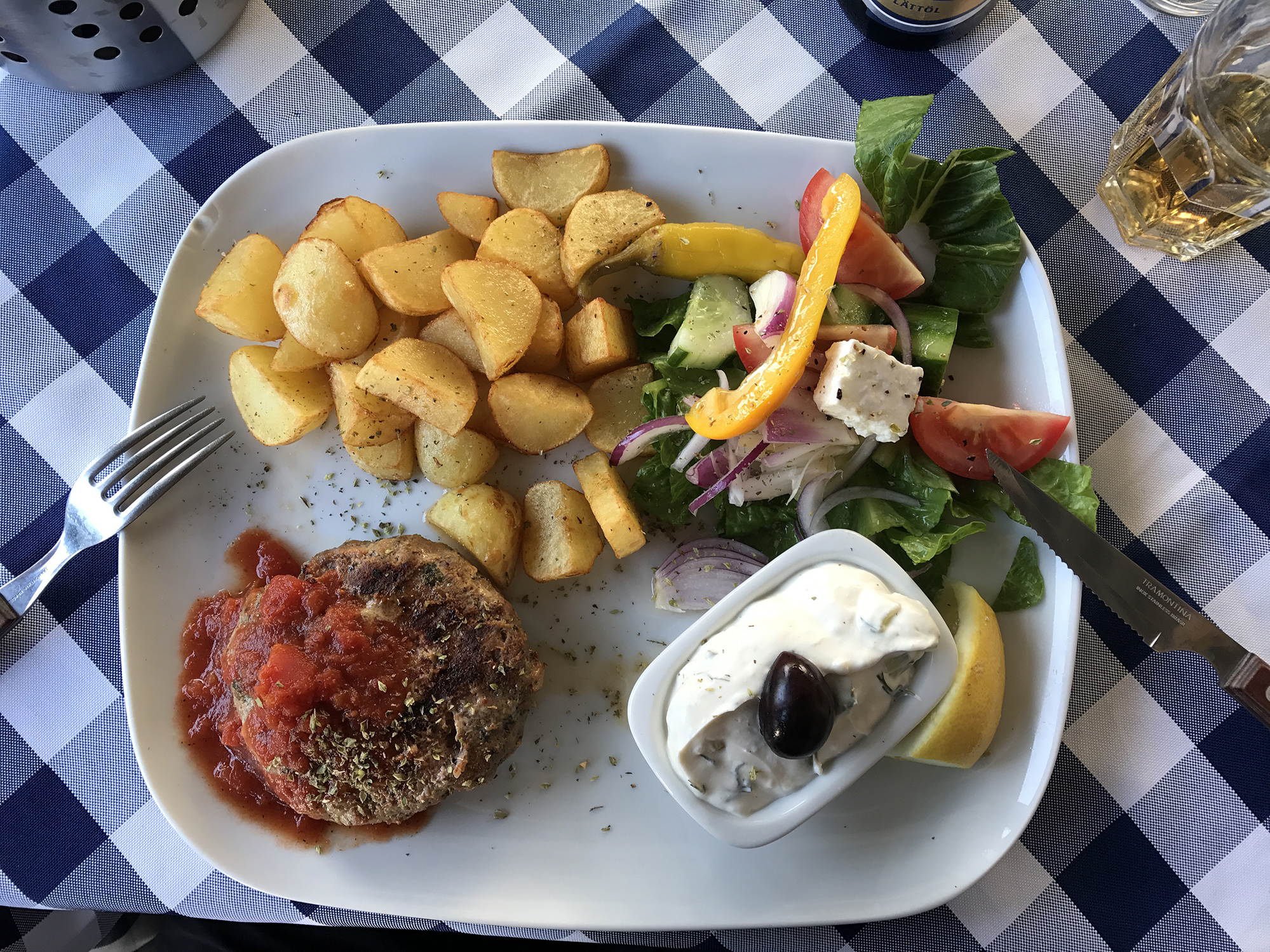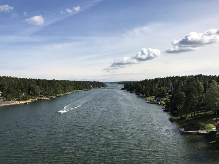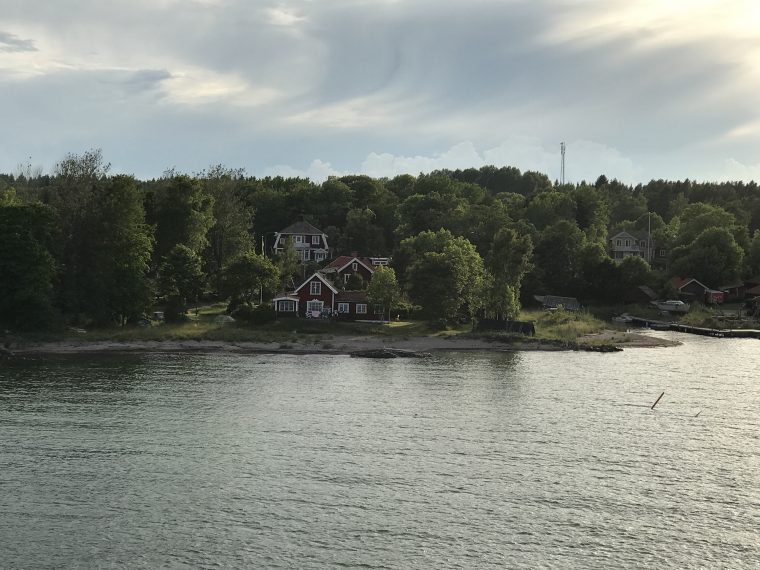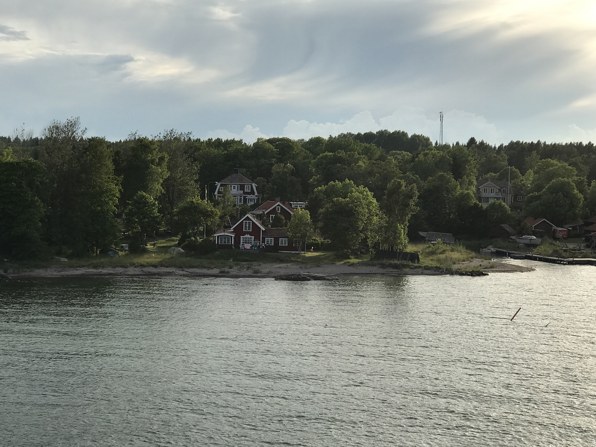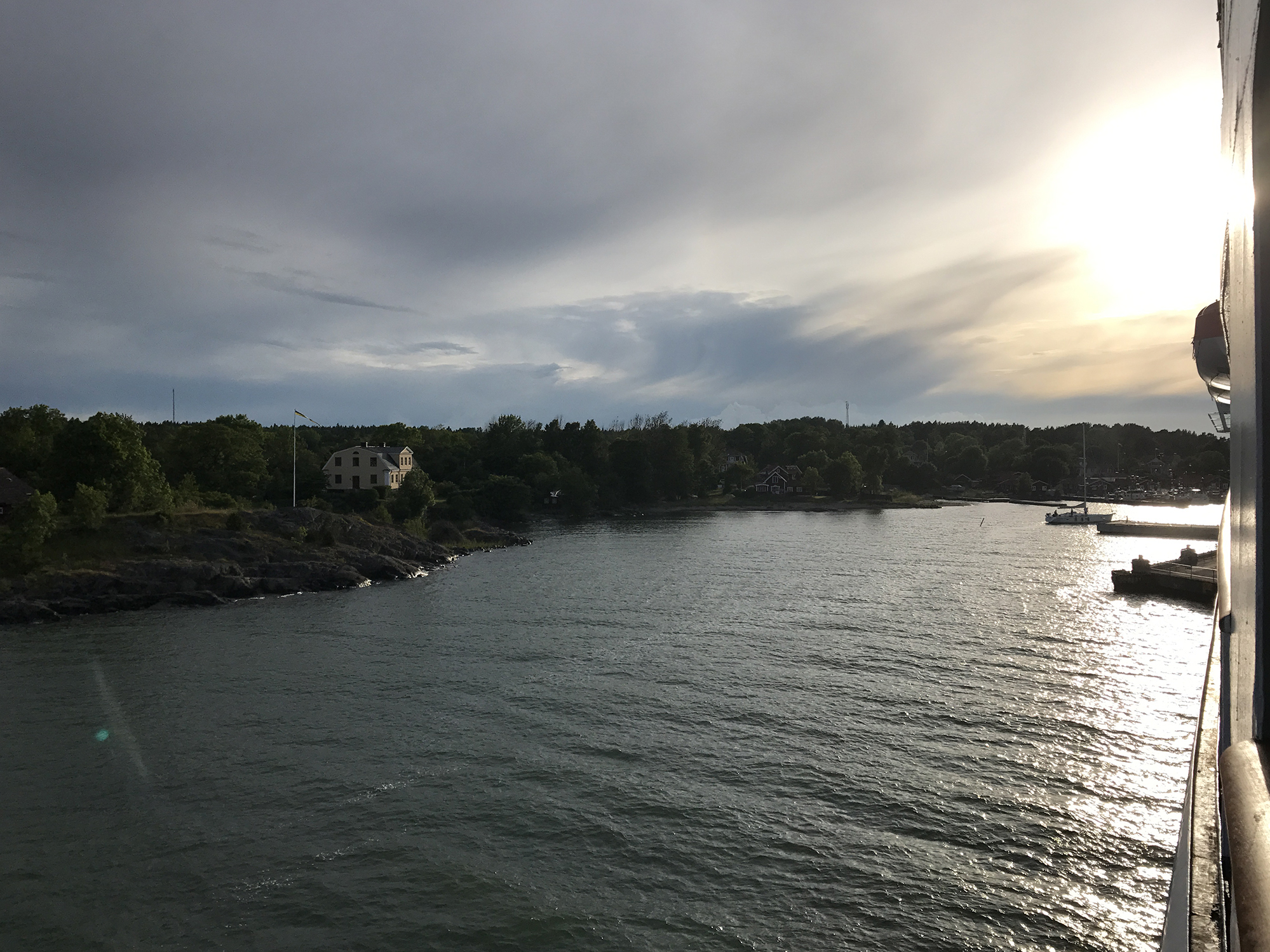 Day 71 I left the camping site around 8am. The sun was shining, but the wind was blowing from south-west and it was the direction to Grisslehamn. Anyway, I had plenty of time. In the early afternoon, after 75 km a dark cloud suddenly masked the sun and it started to rain. As I stopped after a while to take my raincoat, the rain stopped. A perfect timing I thought. A few kilometres later the road was dry again. One hour before reaching the harbour, I stopped at a village store to buy some orange juice and a 1000 kcal american style icecream, went to a nearby park and enjoyed the luxurious lunch break. In Grisslehamn I went to a greek taverna and enjoyed my first mediterranean dinner on this cycle tour.