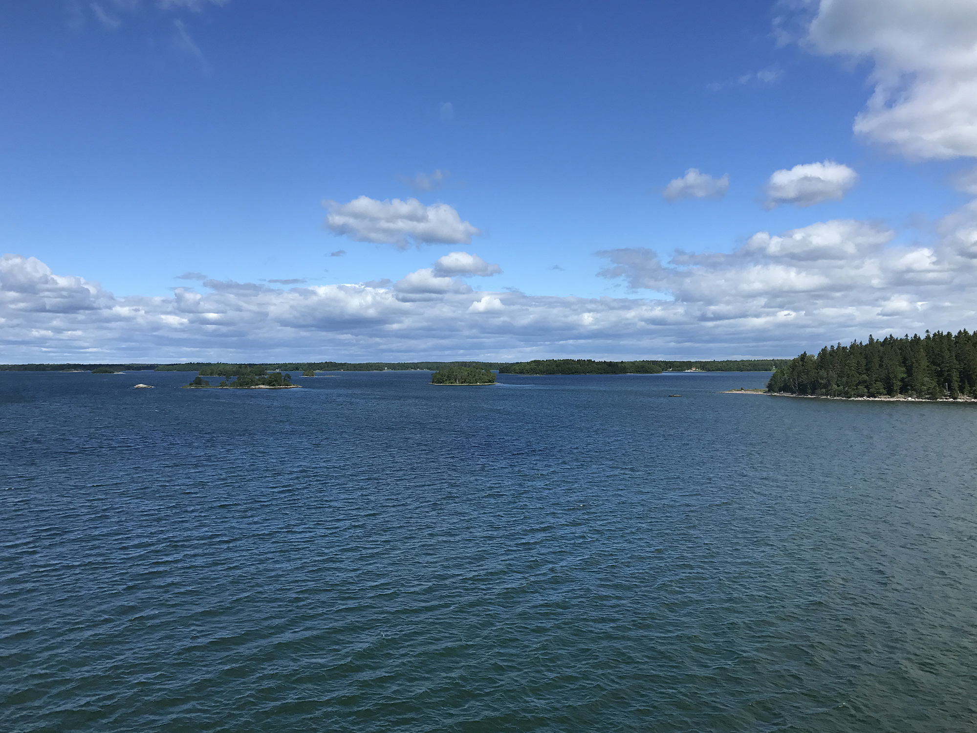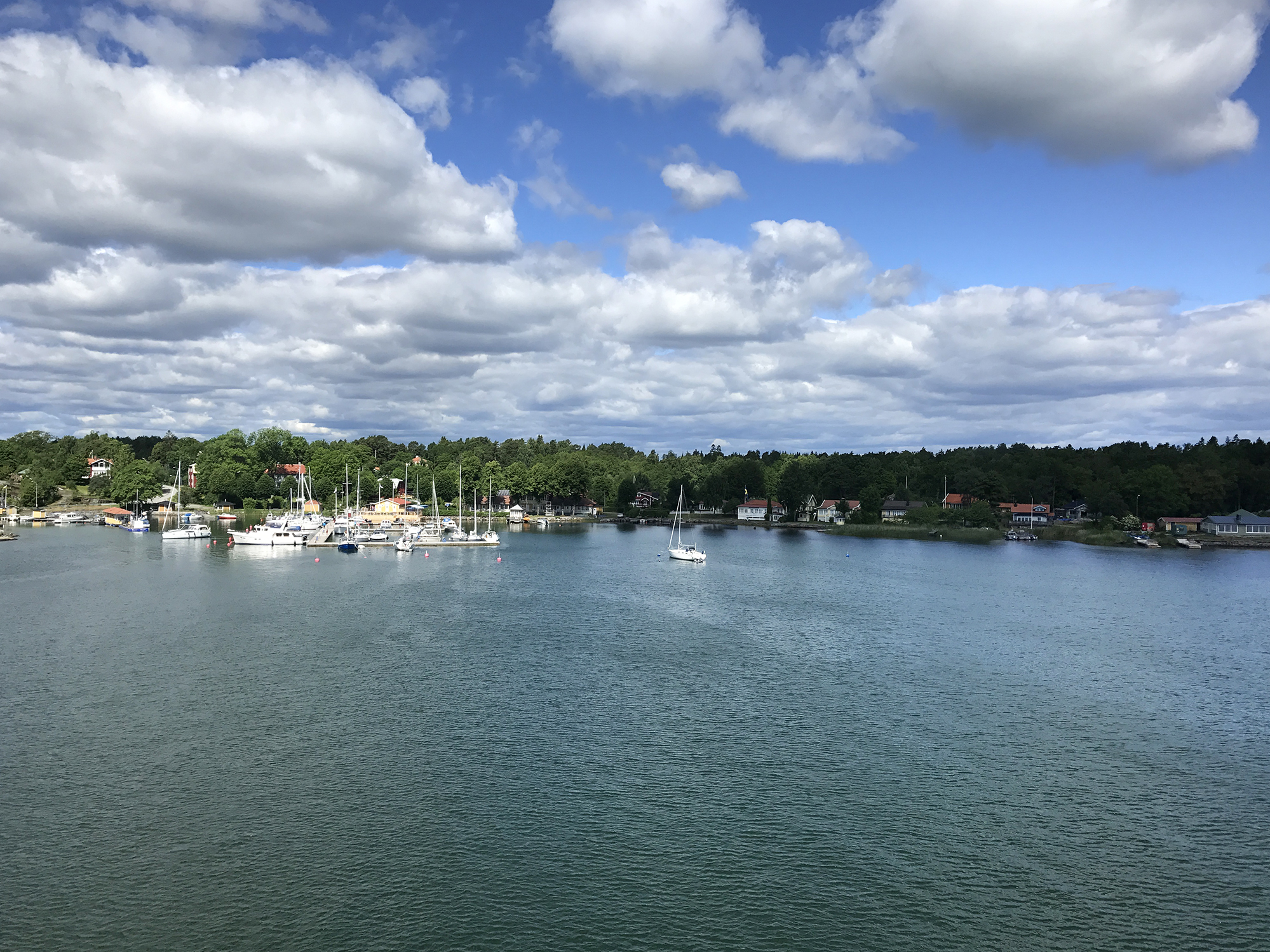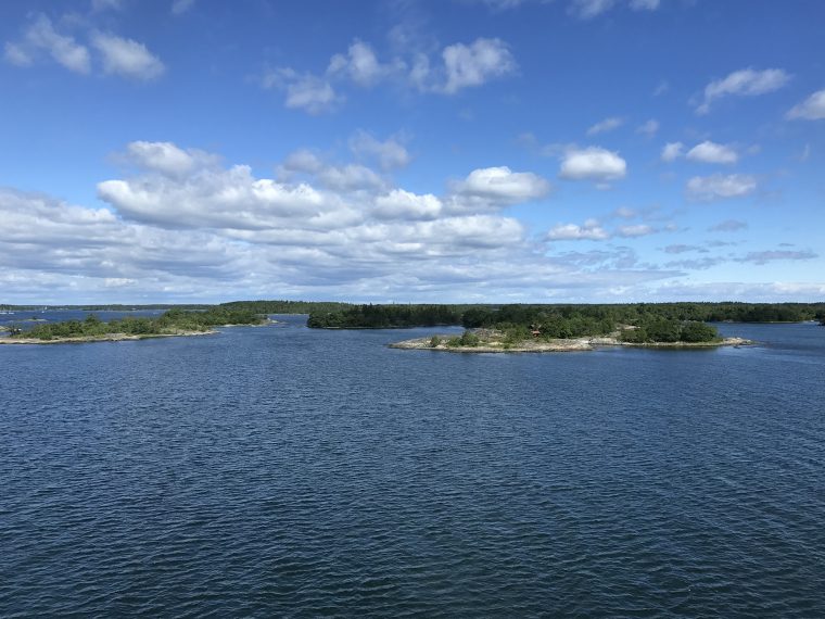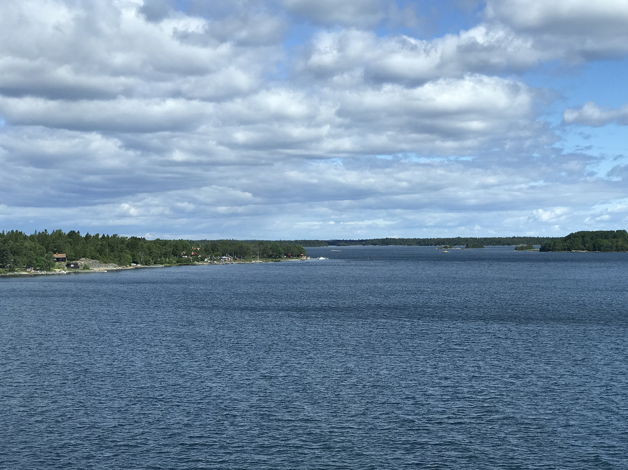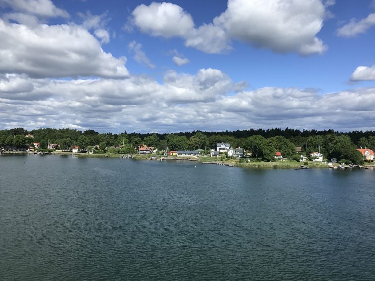 Day 76 After a too short night I woke up at 5:30am and at 6:30am I was ready to leave. Åsa and the kids were still sleeping. I followed road 3 back to Mariehamn, enjoyed a last time the nature and headed directly to the Viking Line terminal at the Western Harbour. There I could directly enter the ferry. It was 8:00am. Most of the passengers having got onboard in Turku were still in their cabins and it was strange to find only a few passengers walking around in this huge ship. Bars, cafeteria and restaurant were still closed and I had to wait until 9:00am to have breakfast. As the duty free shop opened, I bought several chocolate bars for the coming cycling days, while most of the passengers showed only interest for alcoholic drinks. At lunch time I had a long chat with Rogério, a Swedish passenger from Stockholm having a simular information technology background, but prefering sailing rather than cycle touring, even if he used to cycle around with his road bike. We had a lot of fun until the ferry arrived in Stockholm.