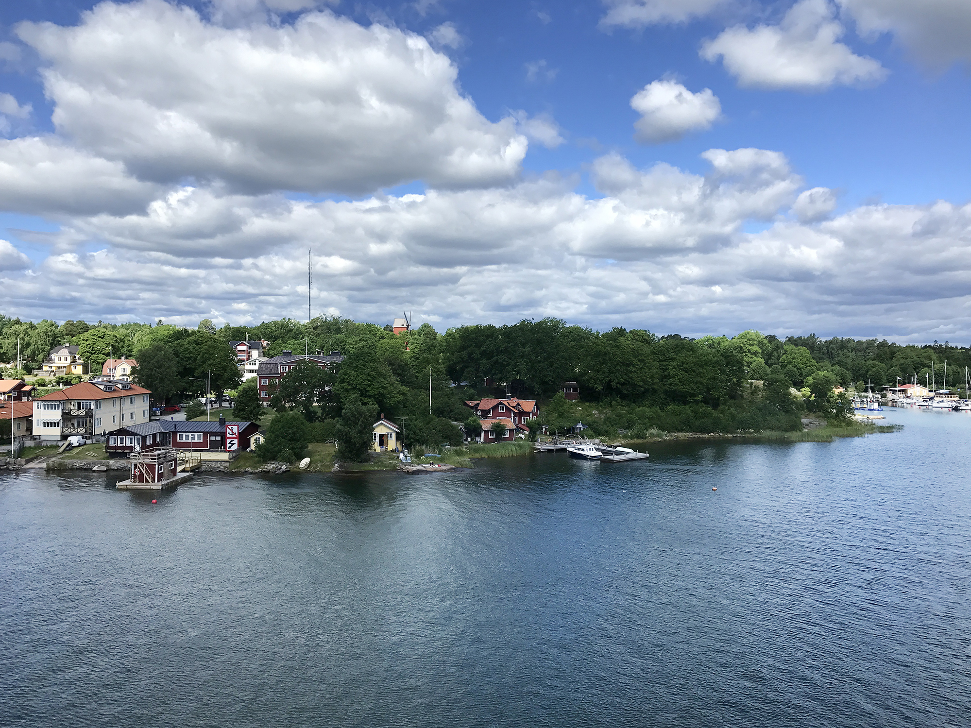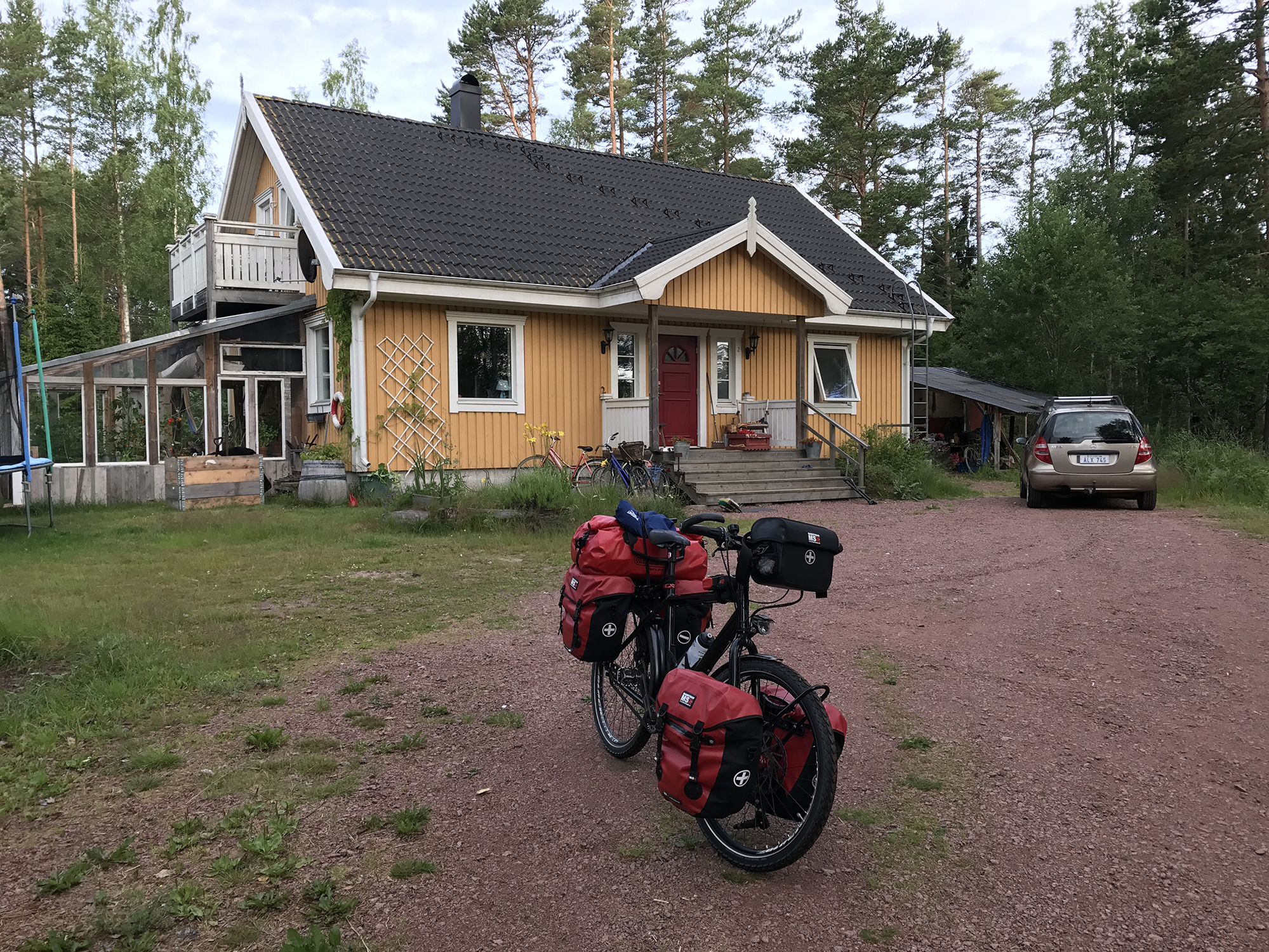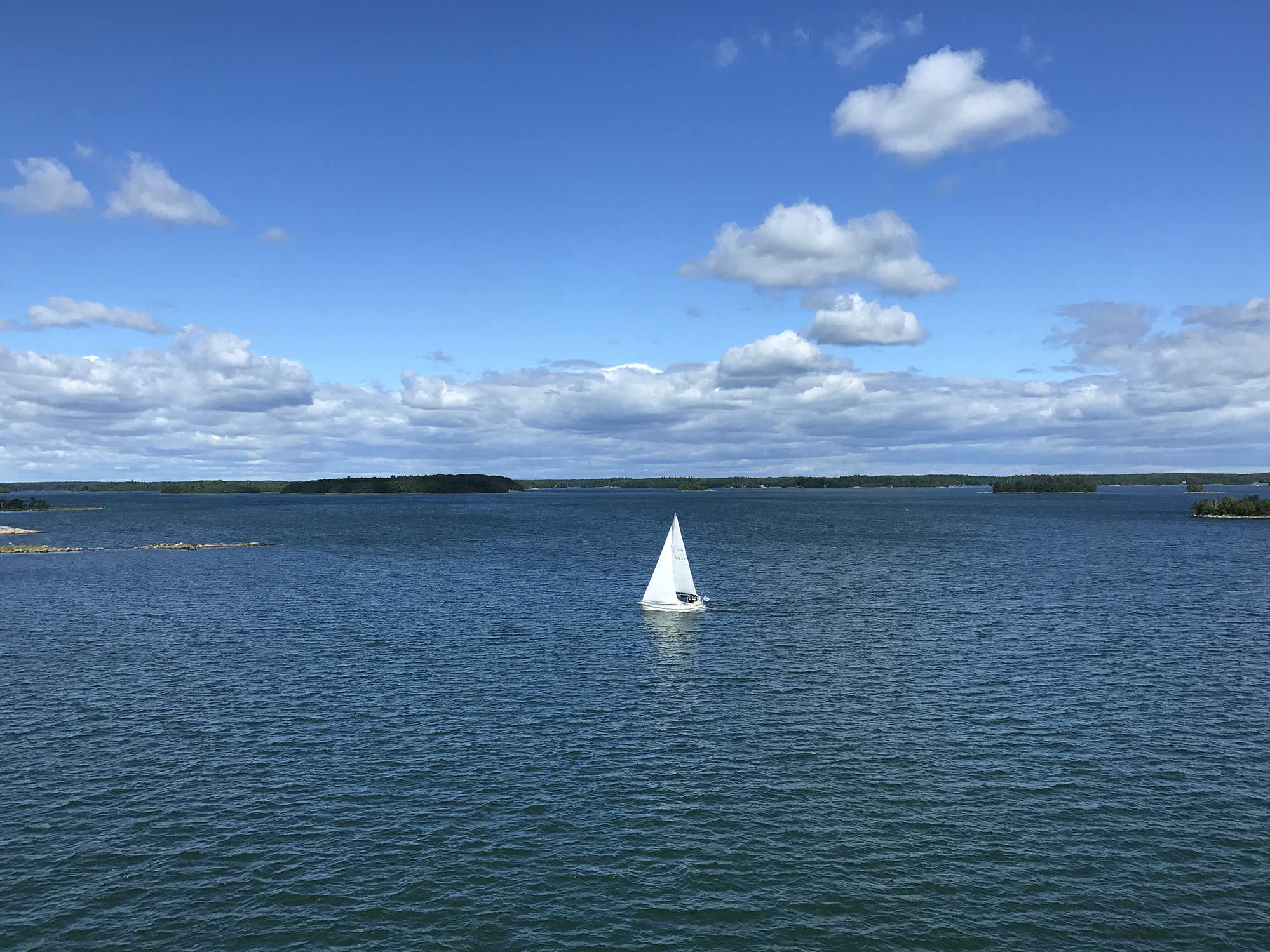 Day 76 After a too short night I woke up at 5:30am and at 6:30am I was ready to leave. Åsa and the kids were still sleeping. I followed road 3 back to Mariehamn, enjoyed a last time the nature and headed directly to the Viking Line terminal at the Western Harbour. There I could directly enter the ferry. It was 8:00am. Most of the passengers having got onboard in Turku were still in their cabins and it was strange to find only a few passengers walking around in this huge ship. Bars, cafeteria and restaurant were still closed and I had to wait until 9:00am to have breakfast. As the duty free shop opened, I bought several chocolate bars for the coming cycling days, while most of the passengers showed only interest for alcoholic drinks. At lunch time I had a long chat with Rogério, a Swedish passenger from Stockholm having a simular information technology background, but prefering sailing rather than cycle touring, even if he used to cycle around with his road bike. We had a lot of fun until the ferry arrived in Stockholm.