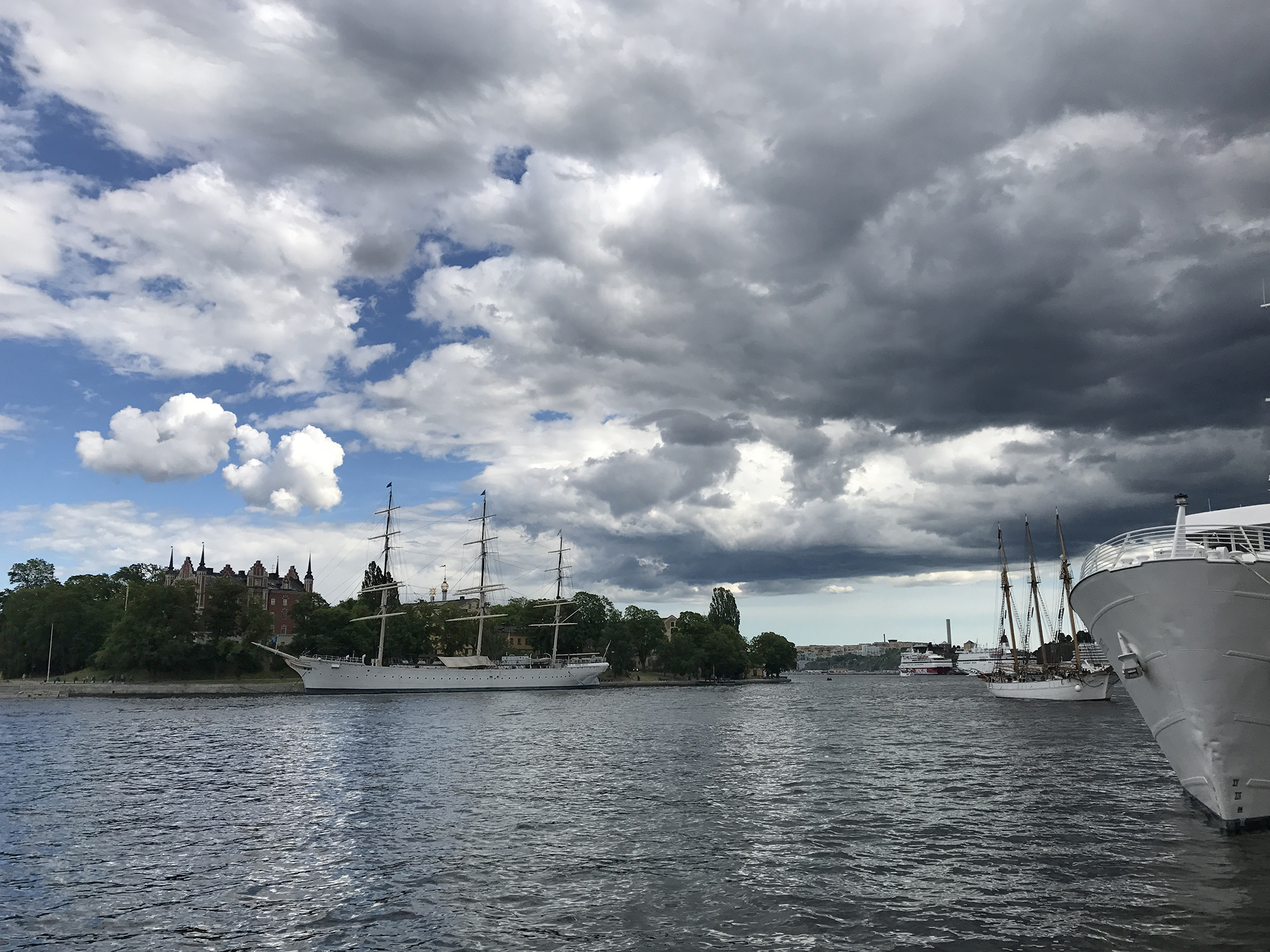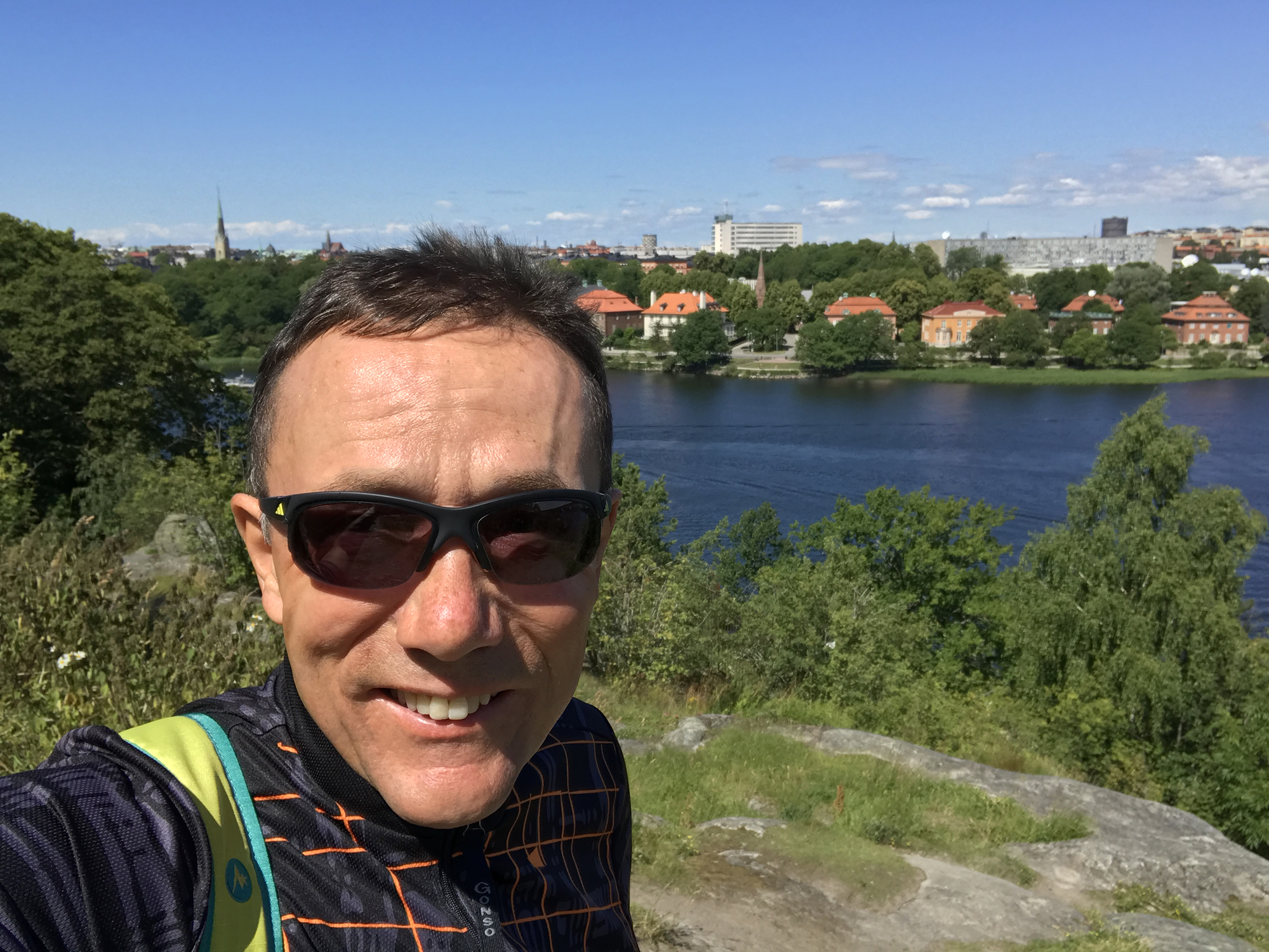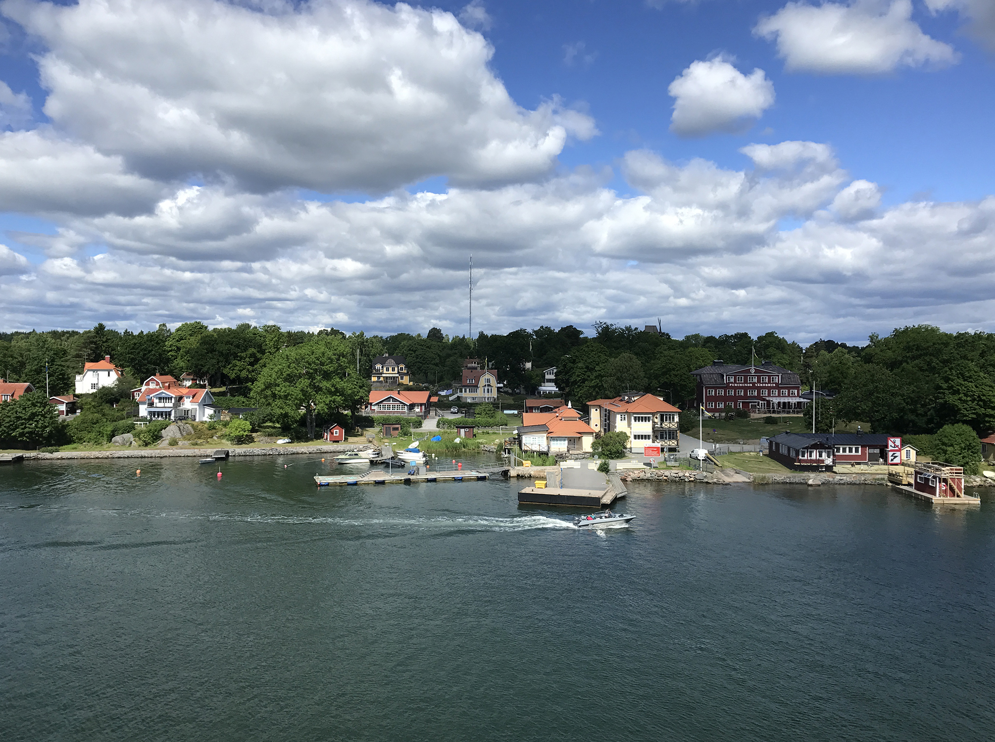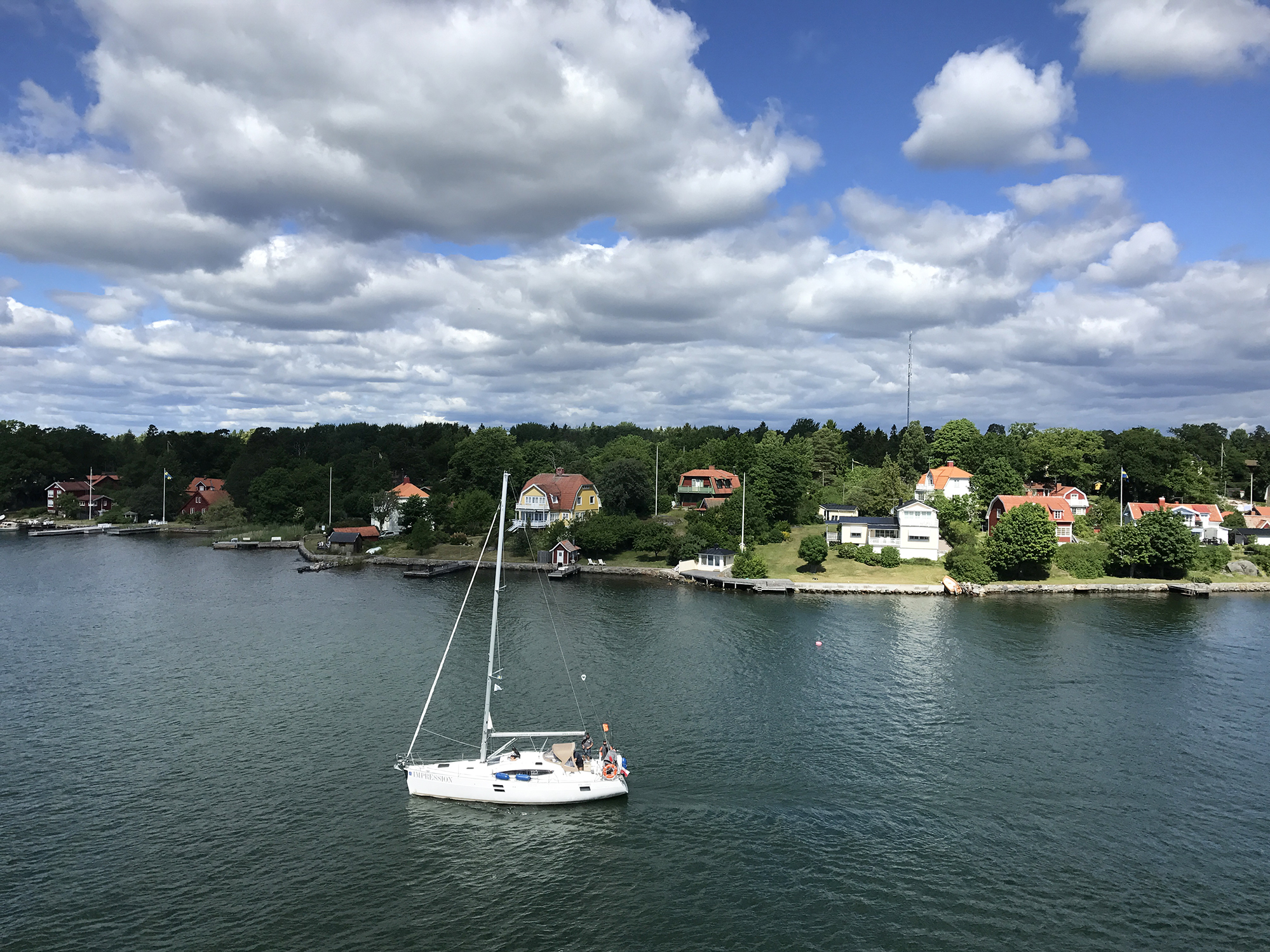 Day 76 After a too short night I woke up at 5:30am and at 6:30am I was ready to leave. Åsa and the kids were still sleeping. I followed road 3 back to Mariehamn, enjoyed a last time the nature and headed directly to the Viking Line terminal at the Western Harbour. There I could directly enter the ferry. It was 8:00am. Most of the passengers having got onboard in Turku were still in their cabins and it was strange to find only a few passengers walking around in this huge ship. Bars, cafeteria and restaurant were still closed and I had to wait until 9:00am to have breakfast. As the duty free shop opened, I bought several chocolate bars for the coming cycling days, while most of the passengers showed only interest for alcoholic drinks. At lunch time I had a long chat with Rogério, a Swedish passenger from Stockholm having a simular information technology background, but prefering sailing rather than cycle touring, even if he used to cycle around with his road bike. We had a lot of fun until the ferry arrived in Stockholm.