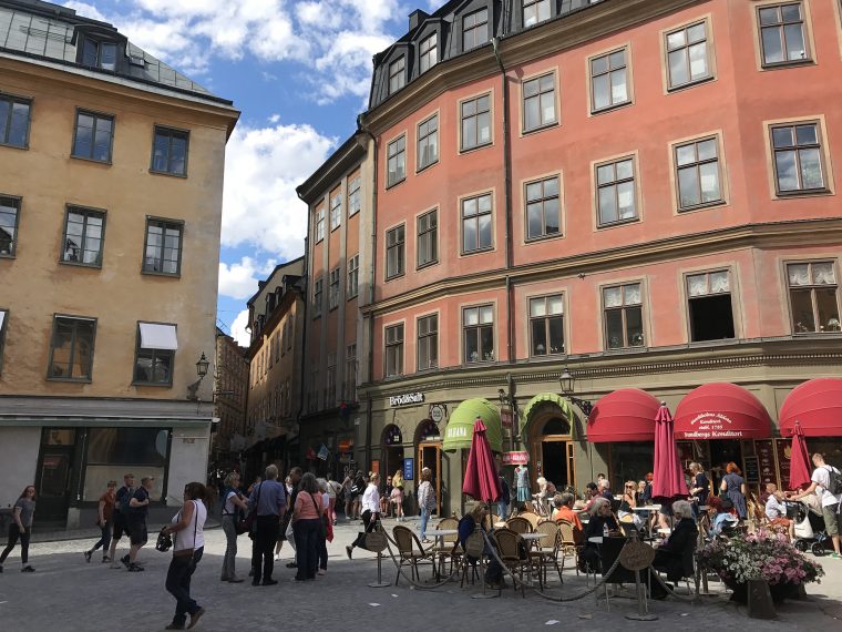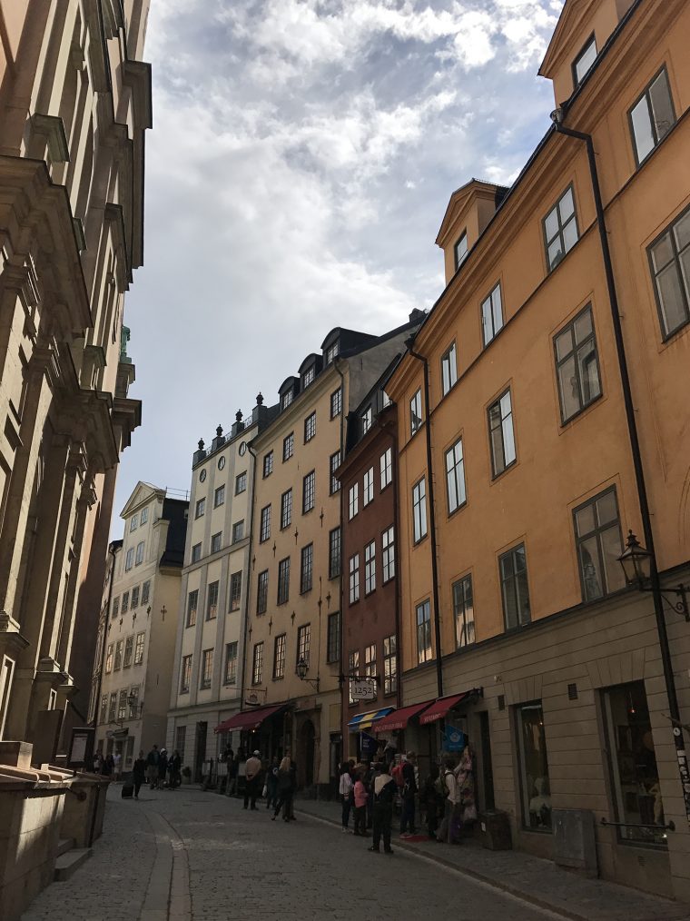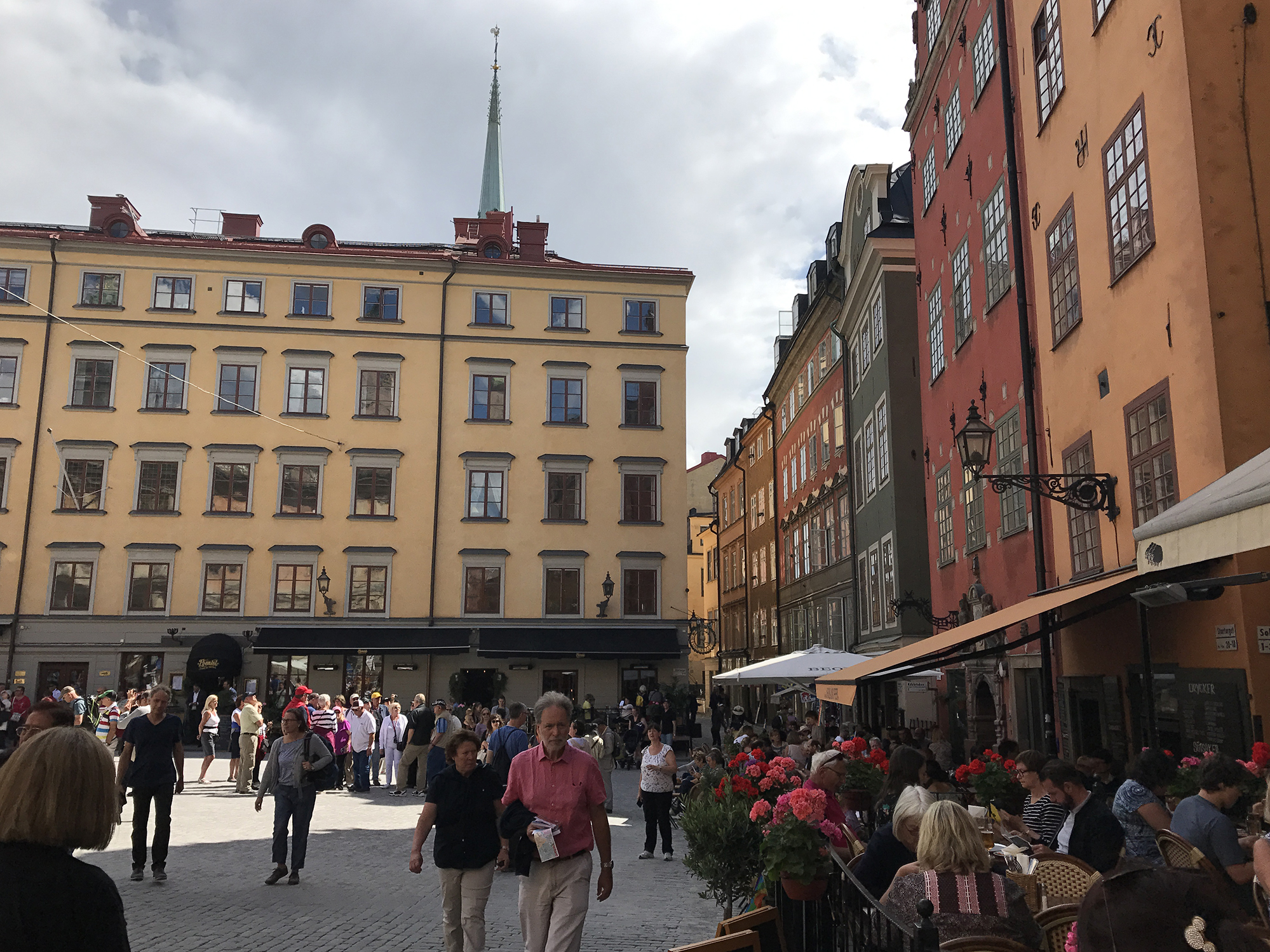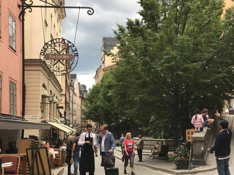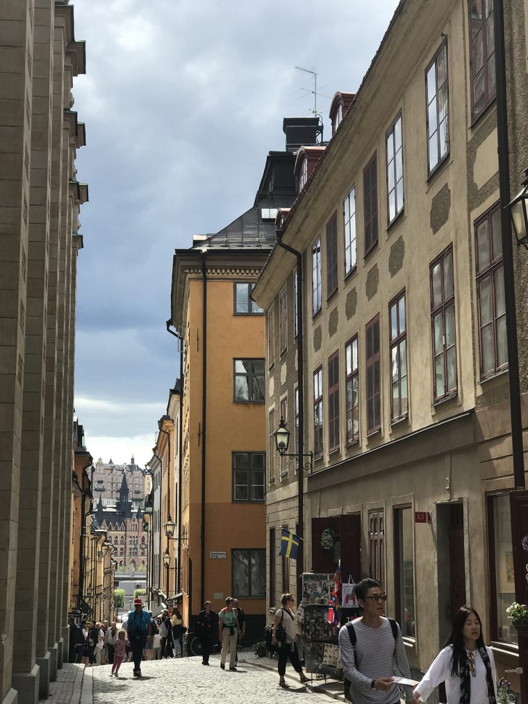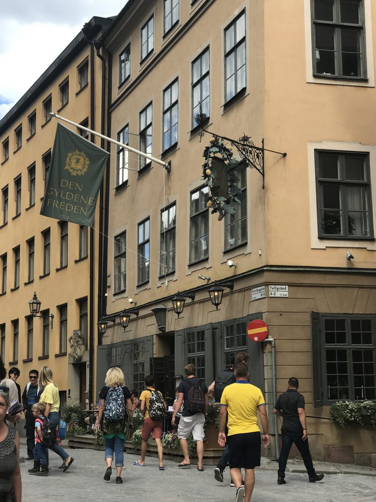 Day 77 After a very good breakfast, I left the hotel around 10am and cycled to downtown Stockholm. At Nybroplan I notice a large contingent of policemen, followed the prestigious Strandvägen boulevard to Djurgårdsbron, passed the bridge to the Djurgård island and walked through the open-air museum Skansen. As I was there police helicopters flew for a while above the nearby city centre and I heart the forty cannon salutes given in honor of crown princess Viktoria, whose 40th birthday was celebrated on that day. After having leaved Skansen, I went to Stockholm’s old town Gamla Stan, pushing my bike through the tourist crowd.
