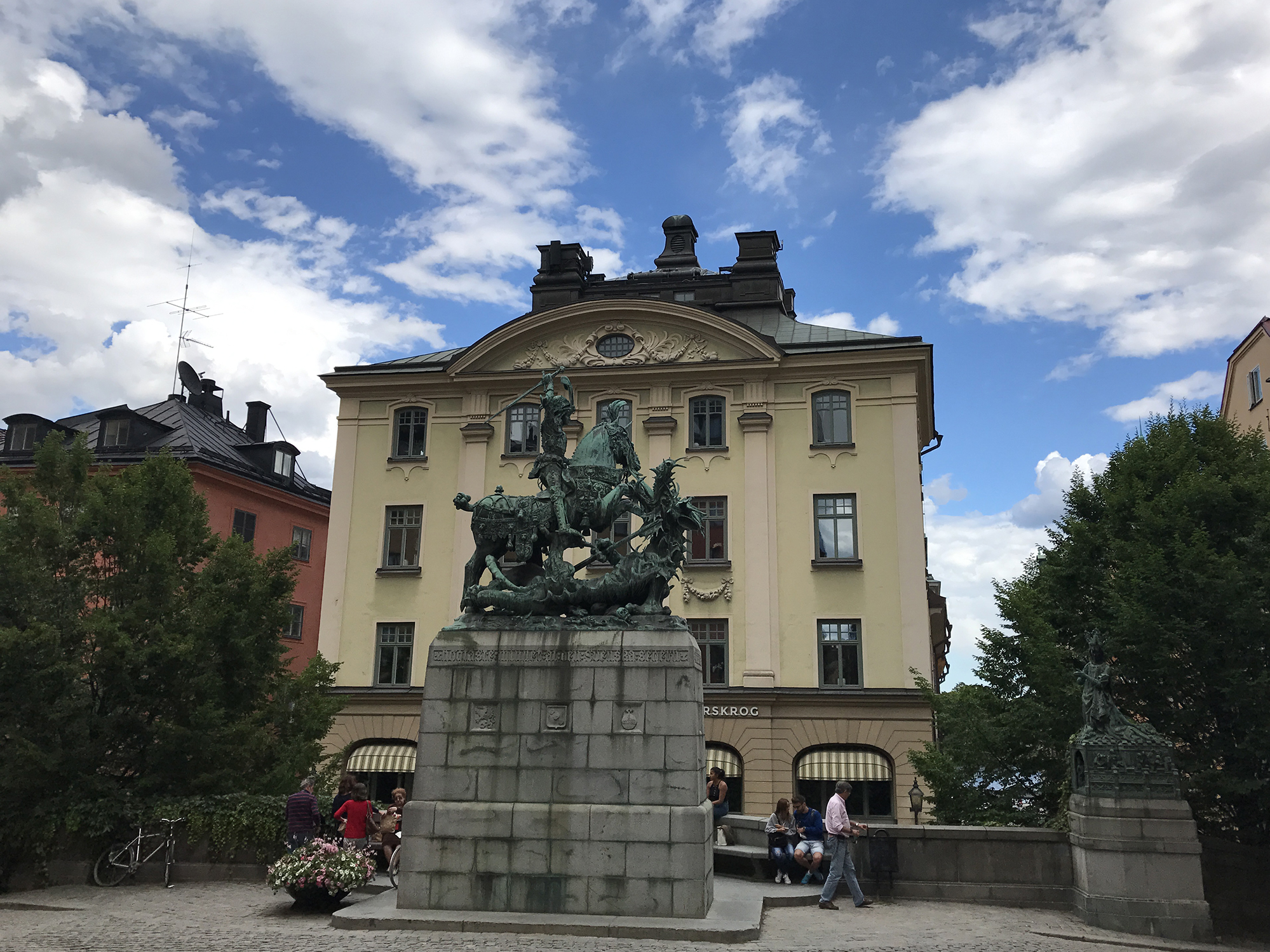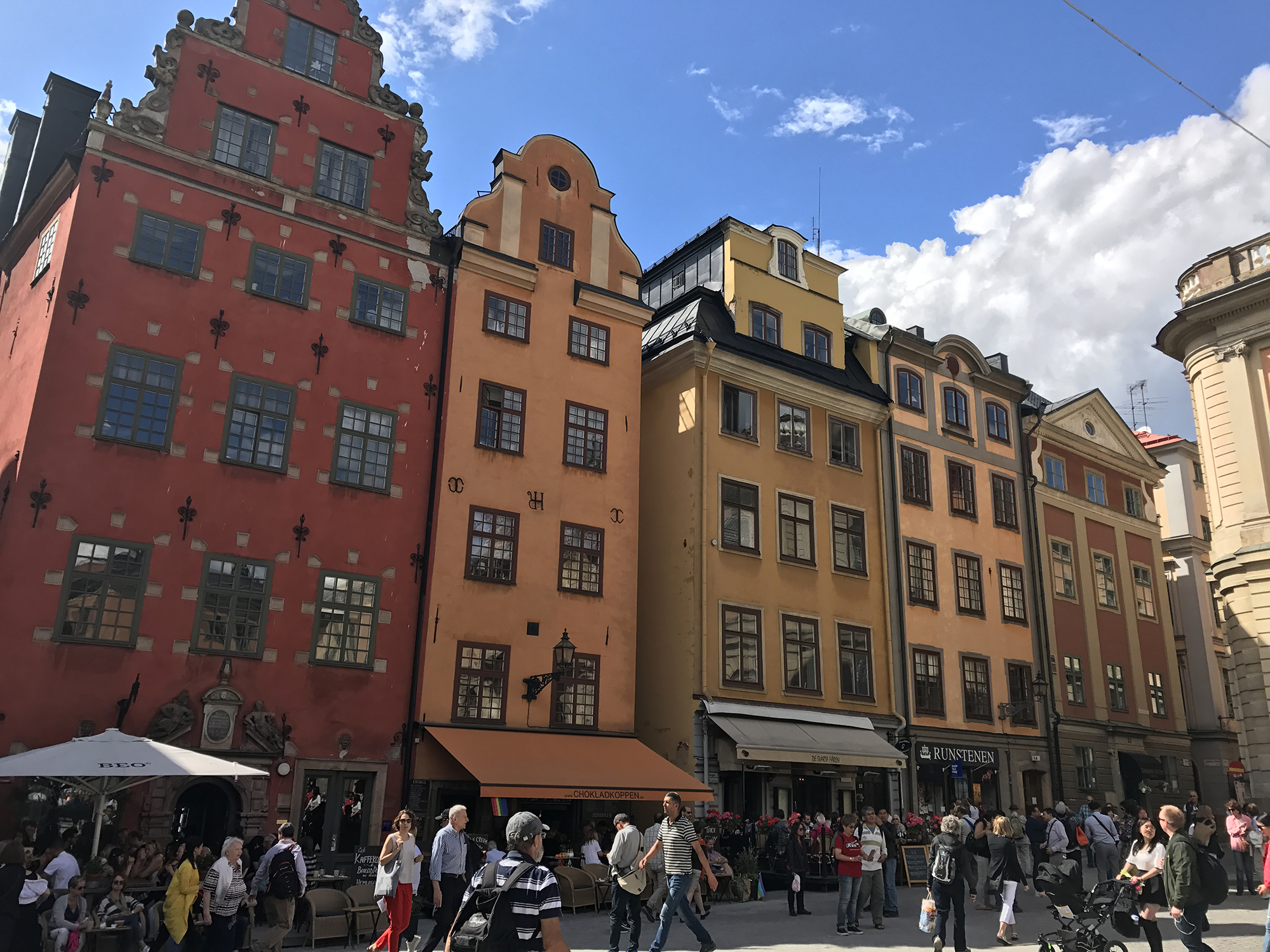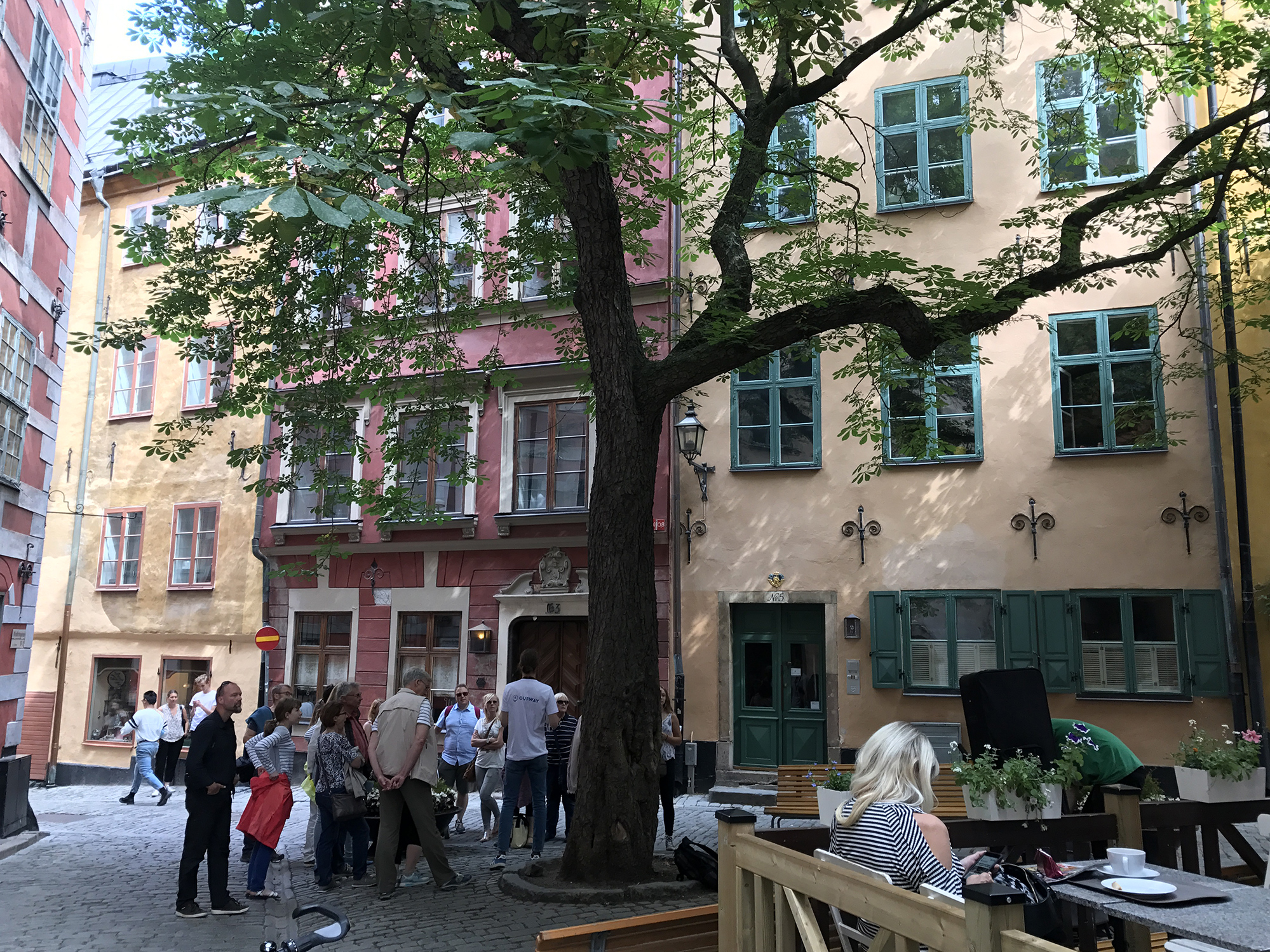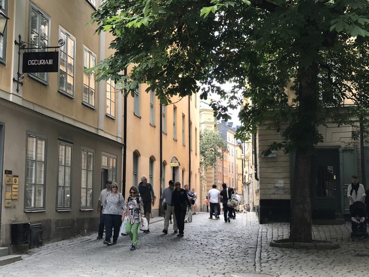 Day 77 After a very good breakfast, I left the hotel around 10am and cycled to downtown Stockholm. At Nybroplan I notice a large contingent of policemen, followed the prestigious Strandvägen boulevard to Djurgårdsbron, passed the bridge to the Djurgård island and walked through the open-air museum Skansen. As I was there police helicopters flew for a while above the nearby city centre and I heart the forty cannon salutes given in honor of crown princess Viktoria, whose 40th birthday was celebrated on that day. After having leaved Skansen, I went to Stockholm’s old town Gamla Stan, pushing my bike through the tourist crowd.