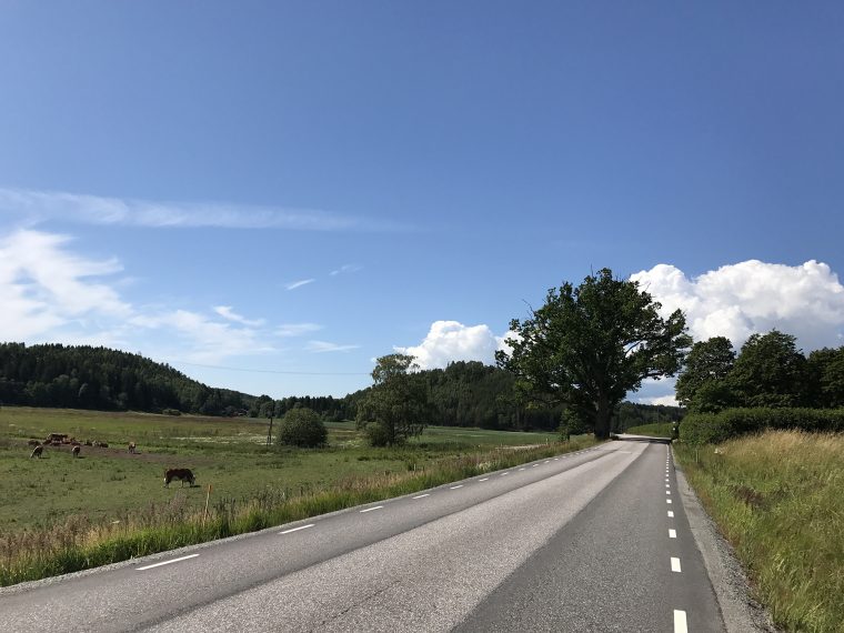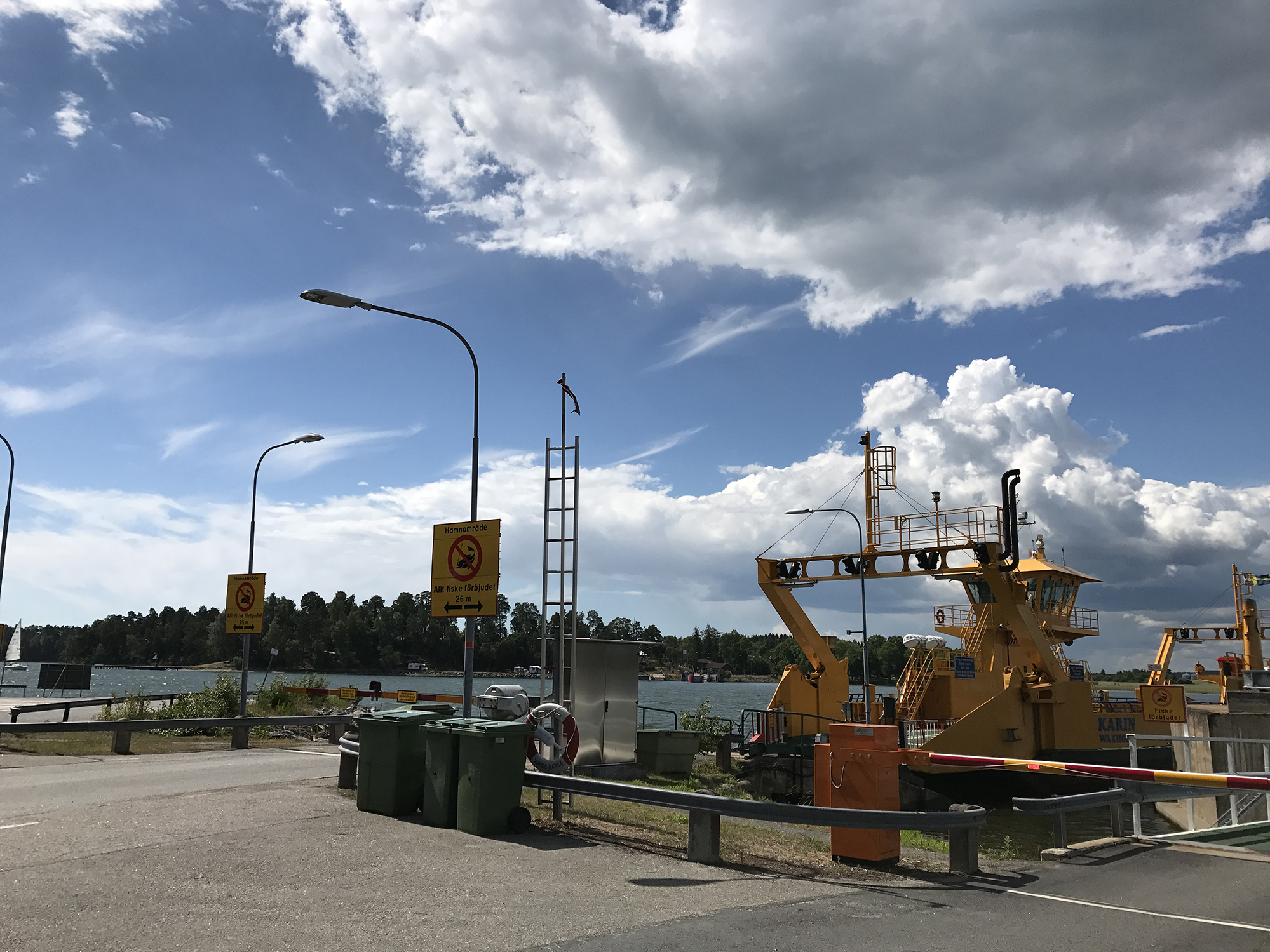 Day 78 I left my hotel in Stockholm Vasastan around 8am and was out of the city and it suburbs one hour later. The weather was fine, but a fresh headwind was slowing my pace. Around noon I reached Skanssundet and had to wait 15 min for the ferry to cross the Himmerfjärden fjord. Later I met a young russian cyclist from Saint Petersburg who took the ferry route from Turku to Stockholm and was heading to Göteborg. We shared our route for one hour before he took another direction to reach his night spot. I finally reached Nyköping around 6:30pm, bought some food and stopped for the night at a hotel close to the city centre.