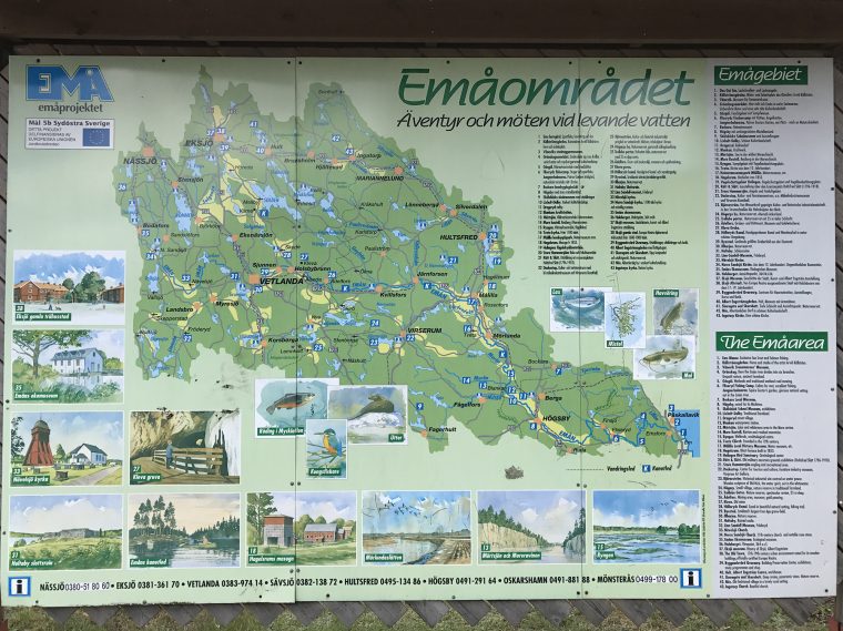 Day 81 After a good breakfast an another chat with Stefan, I left Silverdalen and in Hulsfred reached the main road 23/34 to Målilla, continued following the valley of river Emån until Högsby where I stopped at a pizzeria for lunch. The route from Högsby to Fröskelås was familiar to me. In Allgunen I pushed my bike up Aboda Klint, but was disappointed as the huge observation tower was no longer existing. Later I stopped at the Boasjön near Kråksmåla and took a refreshing swim in the lake before riding the last 5 kilometres to Jan and Cathrin’s house.