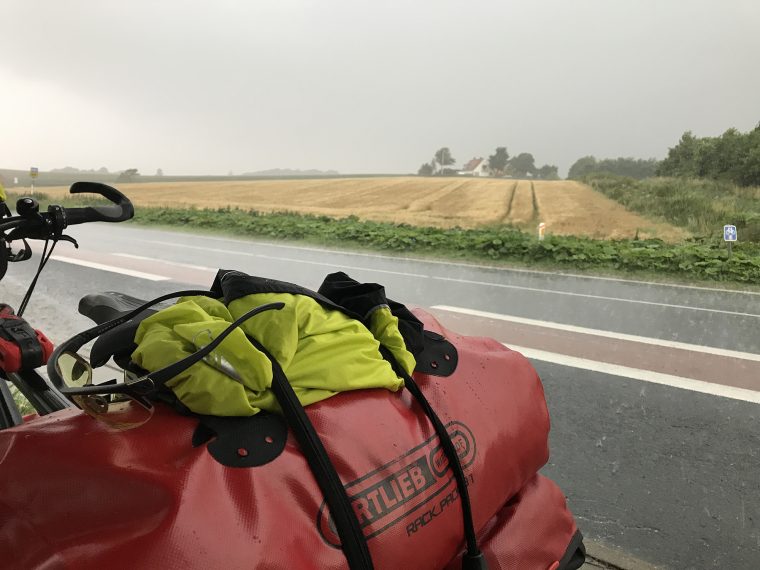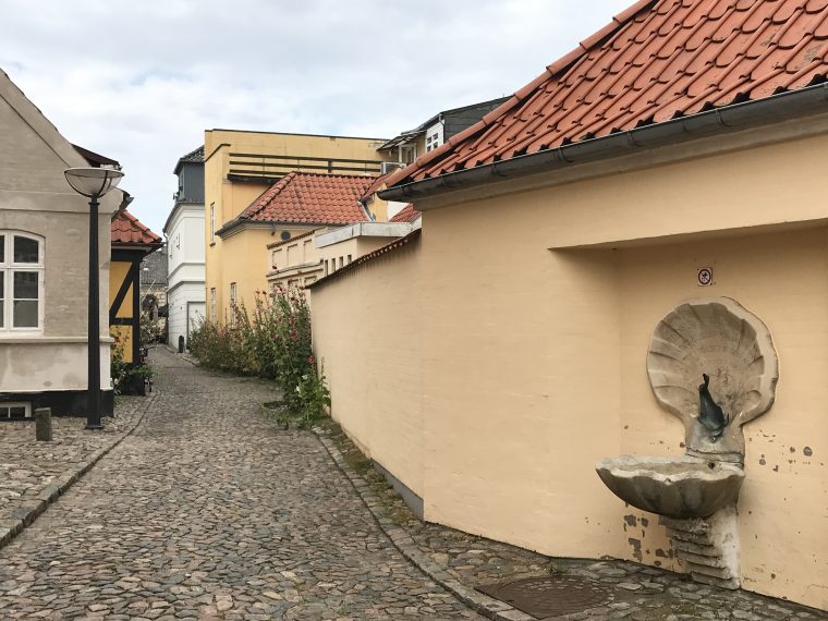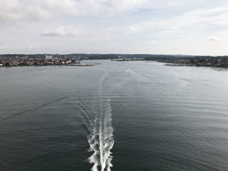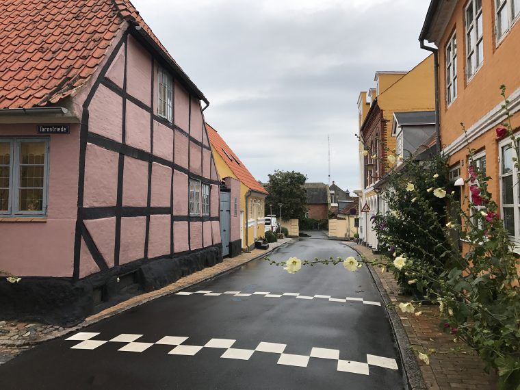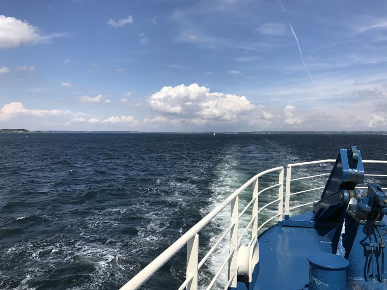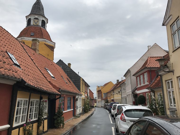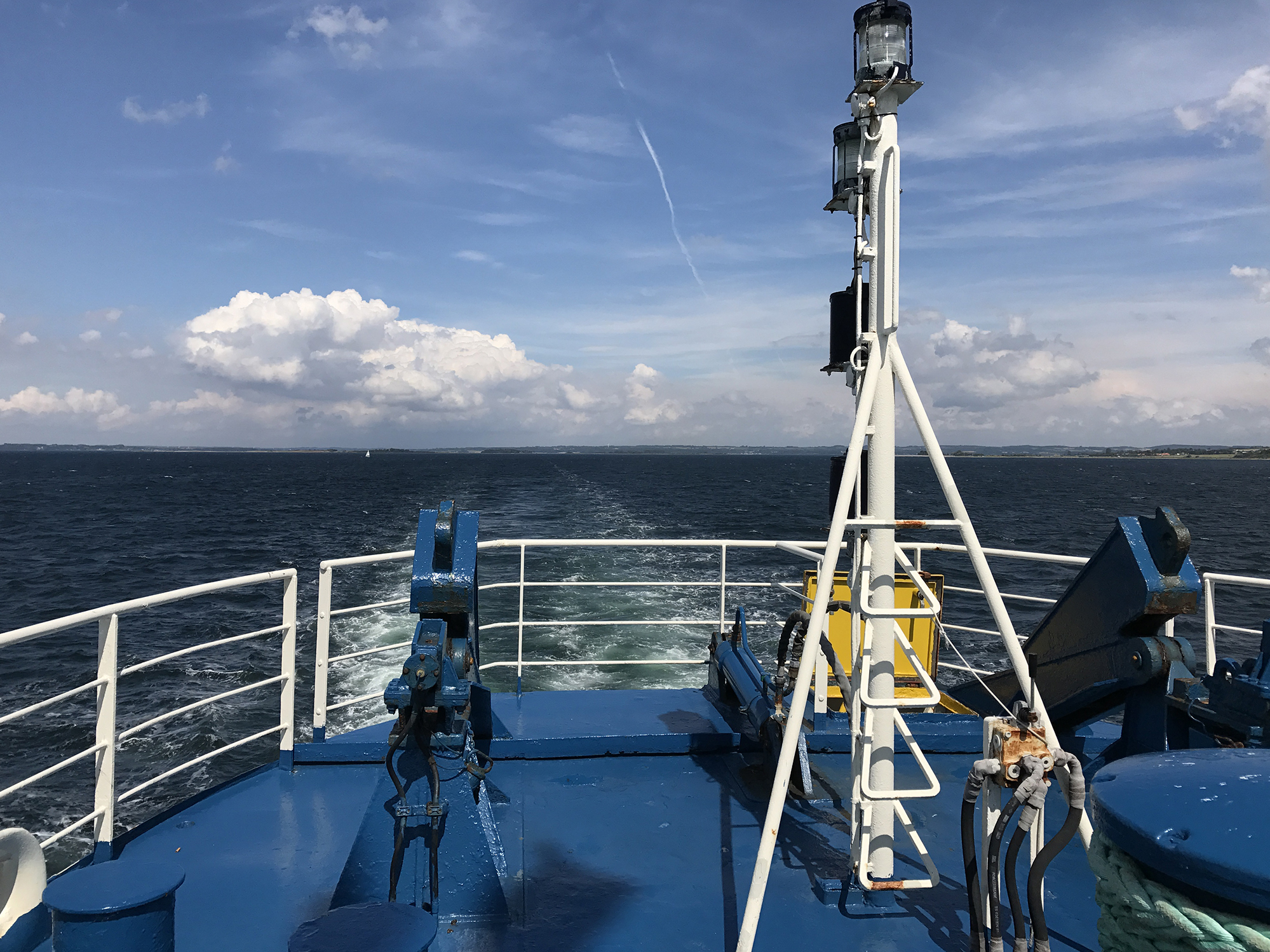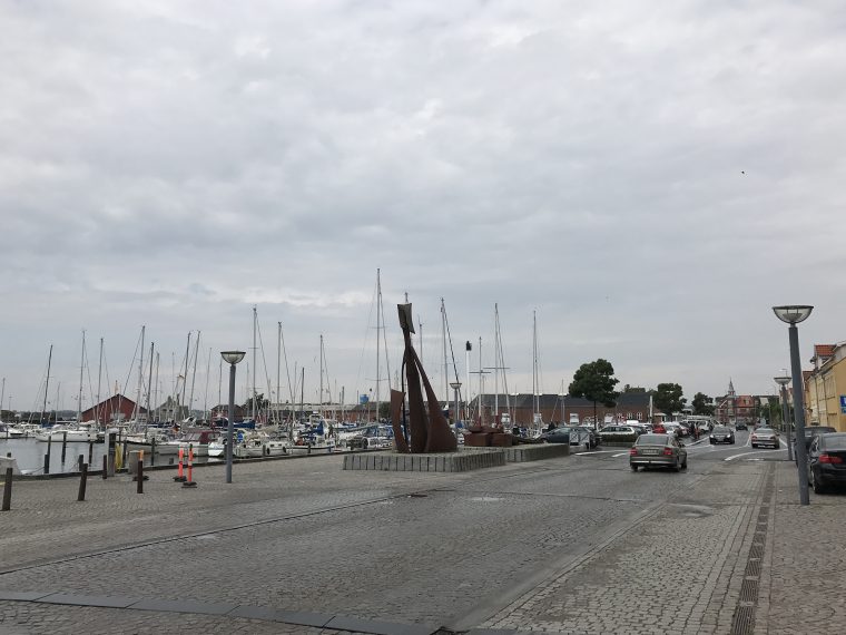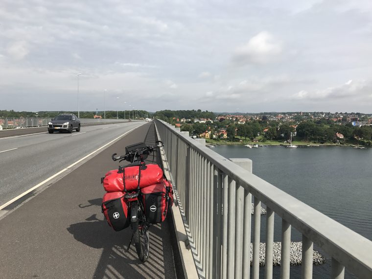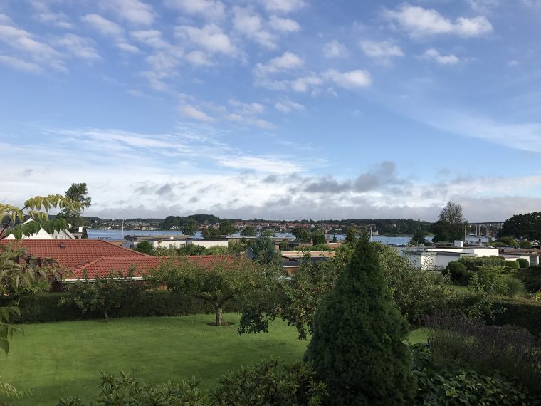Day 93 Annett offered me a delicious breakfast, especially the home-made yellow plum jam and the piano music by Robert Schumann were quite to my taste. The view from her terrasse over the Svendborgsund and the national road 9 bridge was great. The whole property was at least fabulous, but she wanted to sale it and move to a smaller house, being living alone since ince the death of her husband a few years ago. I left Annett’s house around 10am, cycled over the bridge and followed the road to Fåborg. Around noon a thunderstorm forced me to hide from the heavy rain in a bus stop cottage. After 15 minutes it stopped raining and I could continue my trip. I reached Fåborg around 12:30am and stopped to have a short look at the harbour, the old streets and town houses. Then I hurried up to the Bøjden ferry port, but had to wait half an hour for the next ferry to Fynshav. The last 20 kilometres on Als were accompained by a gusty headwind. At 4pm I reached the house of my next Airbnb host Annelise. She was not at home, but had emailed me all necessary informations to make me feel comfortable. Tomorrow morning I would pay a short visit to the Sønderborg’s town centre before taking the route to Flensburg.