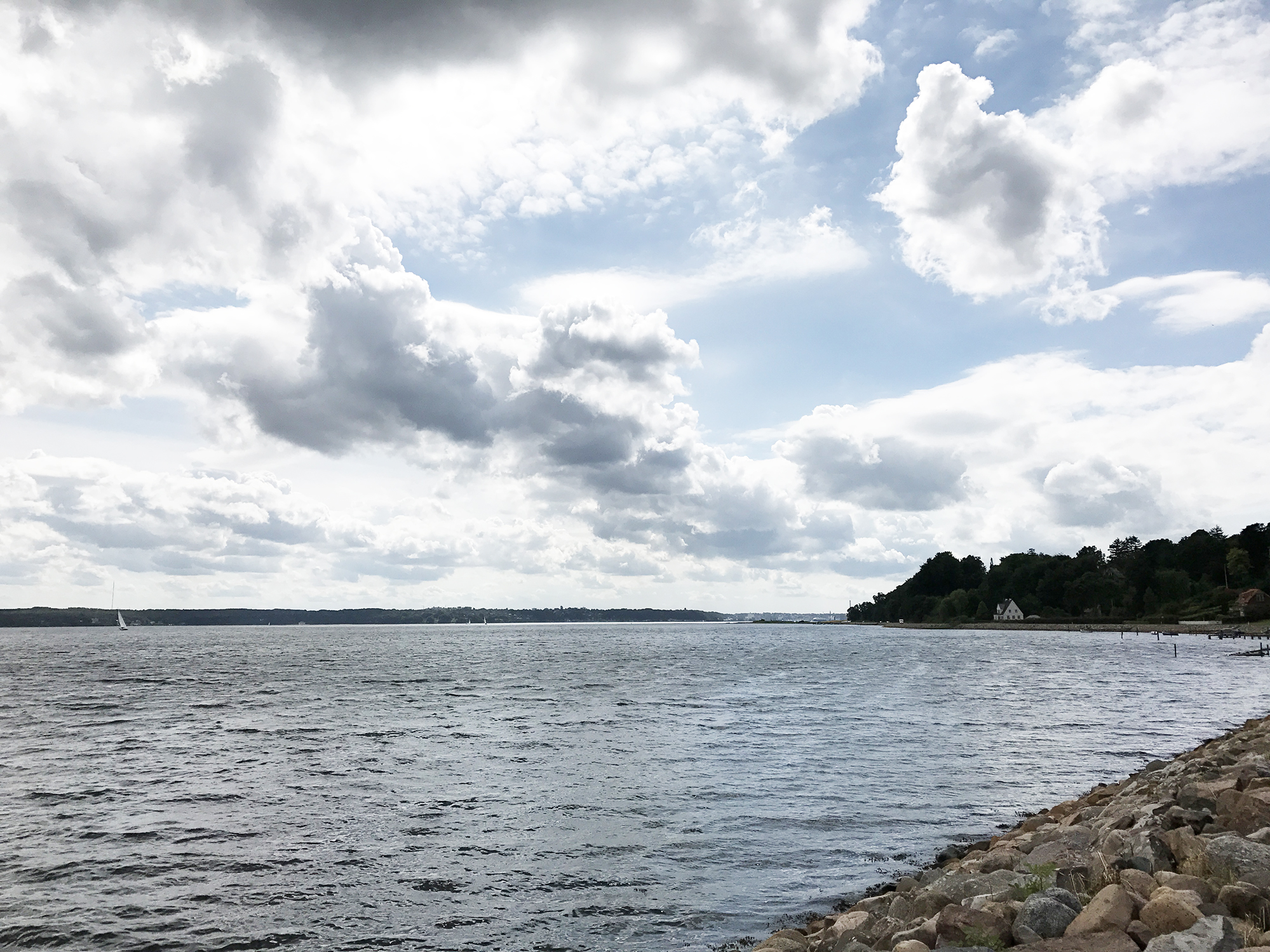 I cycled again to the harbour and enjoyed for a while the scenery and the sunny weather. I left Sønderborg around noon, passed the history centre Dybbøl Banke commemorationg the Danish-Prussian war of 1864 and followed road 401. In Rinkenæs Sogn I turned onto the Fjordvejen and cycled along the Flensburg Firth until Kollund, where I turned into a path through the Kollund Forest leading to the border crossing Schusterkate. I met many cyclists in the forest and crossed the Danish-German border at 3pm.