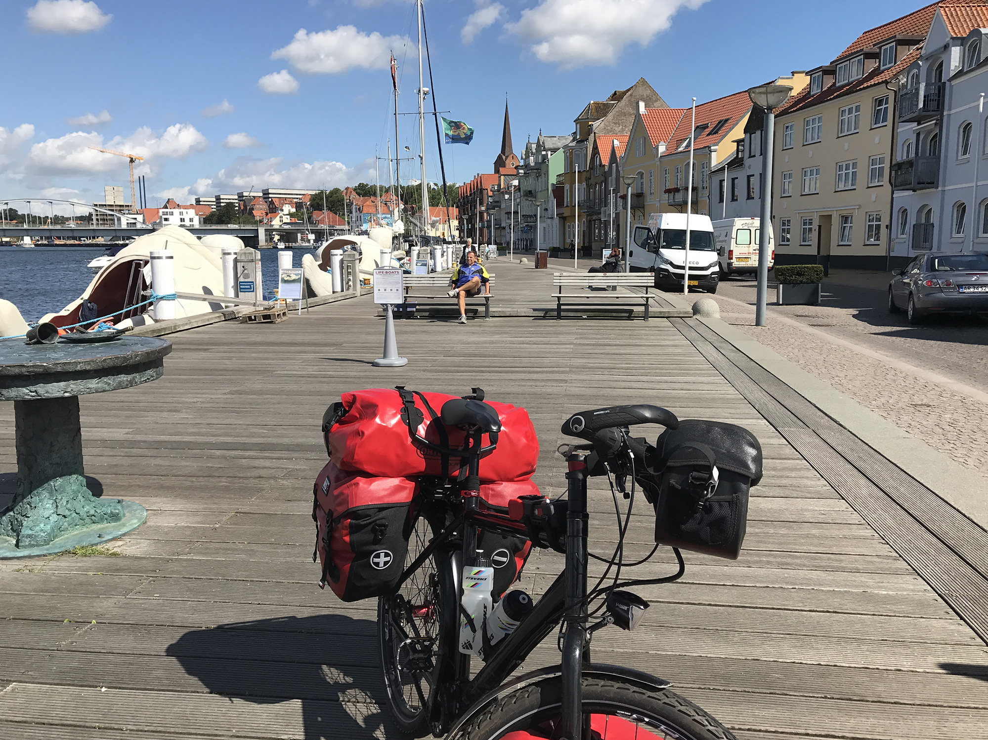Day 94 I left Annelise’s home at 10am and had arrived at the Sønderborg harbour as Annelise texted me, that I had forgotten my smartphone charger. I cycled the 5 km back to her place, but the charger she handed me over was not mine and my 4-port USB charger was as usual in my rear bag.