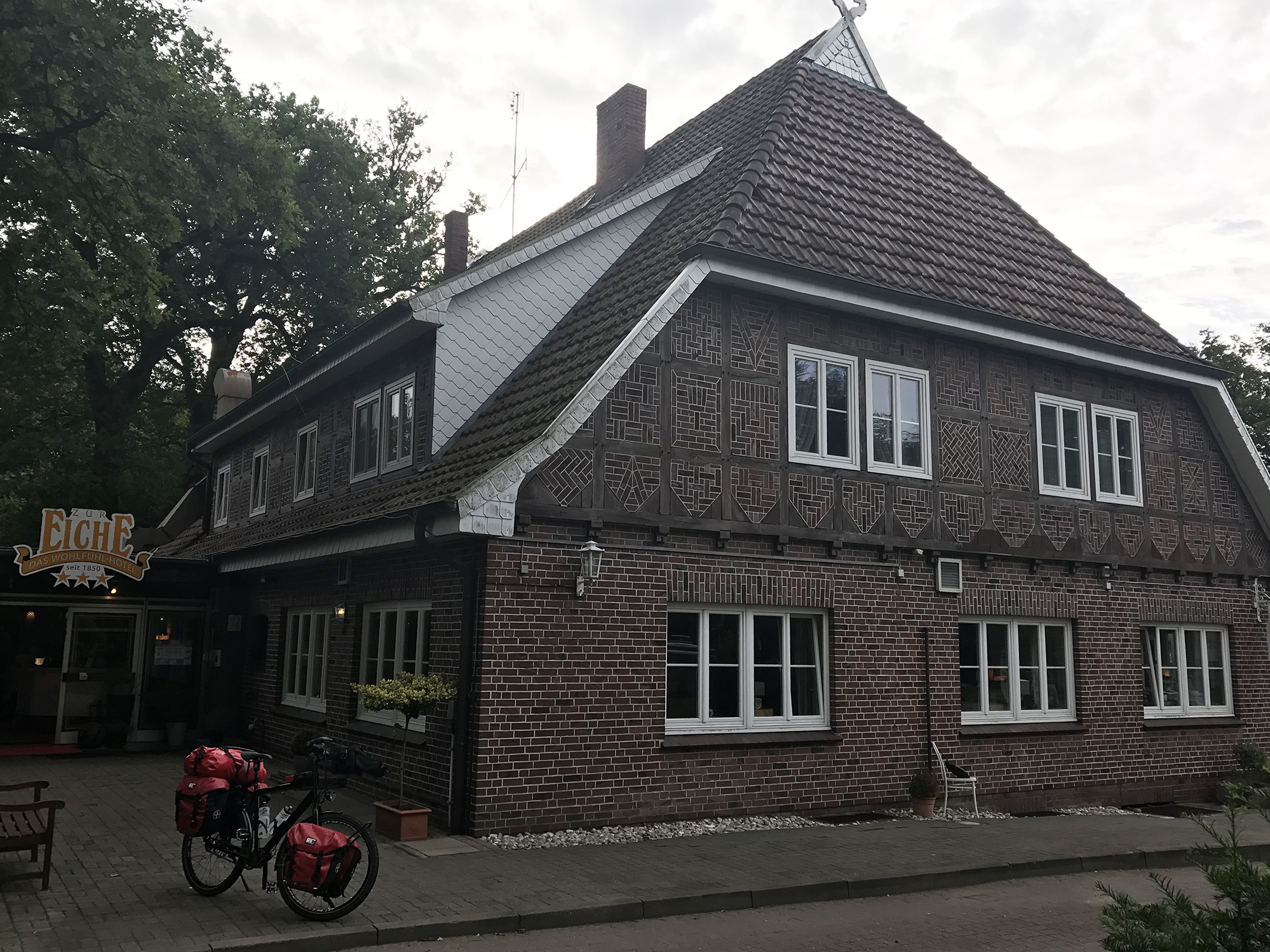 Day 98 I woke up at 6am, enjoyed a delicious breakfast and leaved the hotel at 8am. A fresh wind was blowing from southwest, but quite the half of my route was crossing forest, where I could hide from the headwind. I arrived in Garbsen at 4:30pm, stopped at the Fahrrad Meinhold cycle shop and said hello to Klaus.