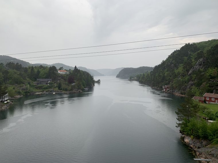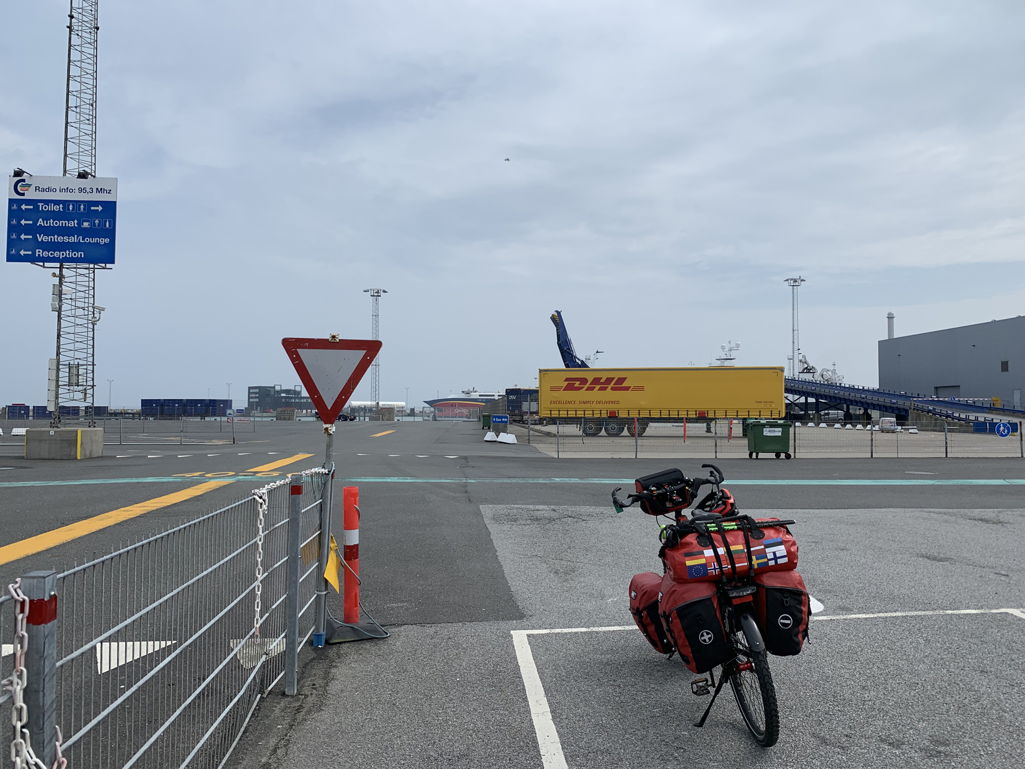 Day 7 Maiken and Junie had to leave early to go to work / school, which means that I was early outside, cycling on an alternate route to Hirtshals. Traffic was light on the narrow road and at 11:00 I arrived at the ferry terminal. The ferry to Norway came first one hour later. A motorcyclist from Norway joined my on the waiting lane and, after we had boarded, shared my table in the board restaurant, where we enjoy the lunch buffet and had good conversations.