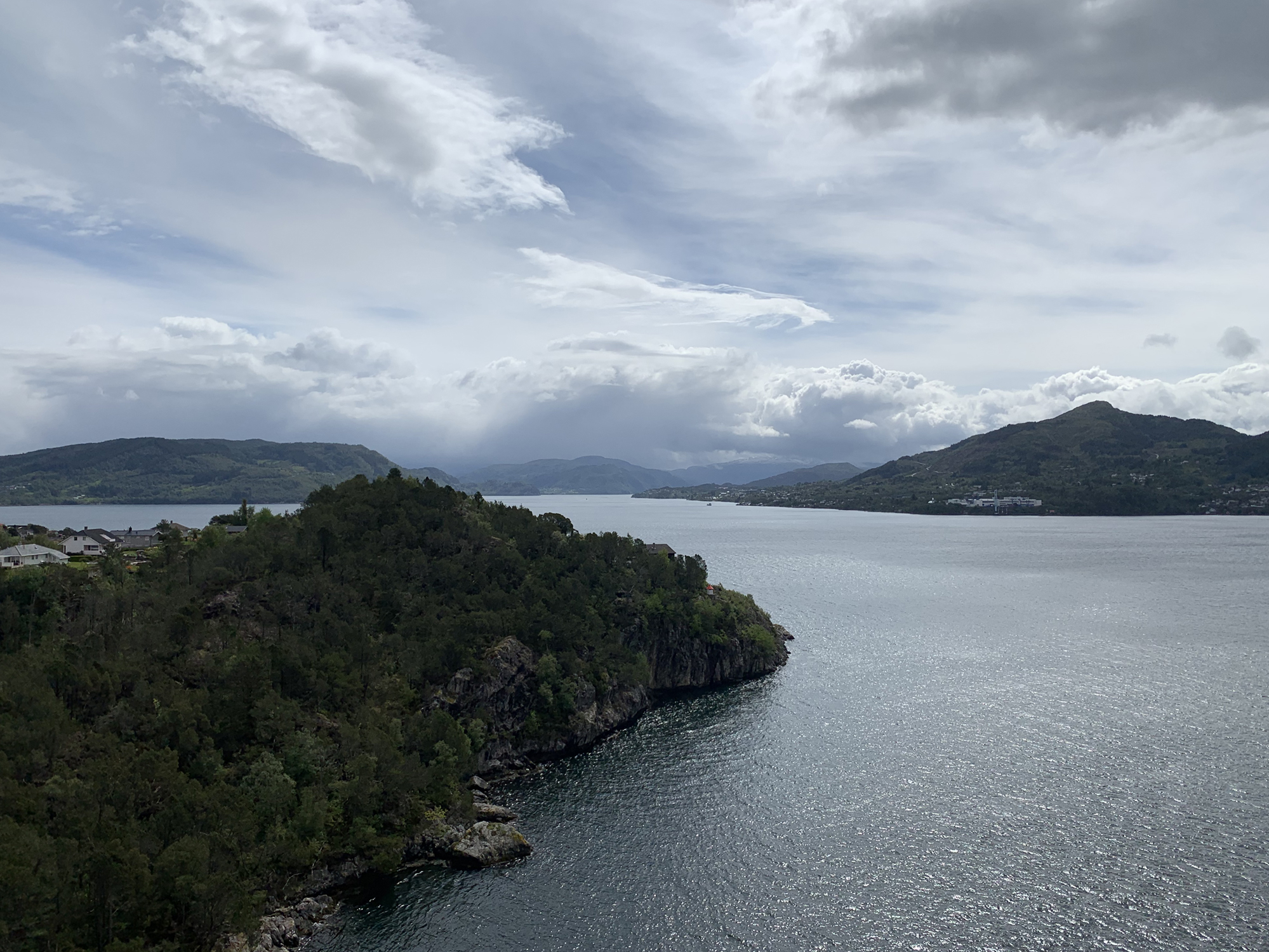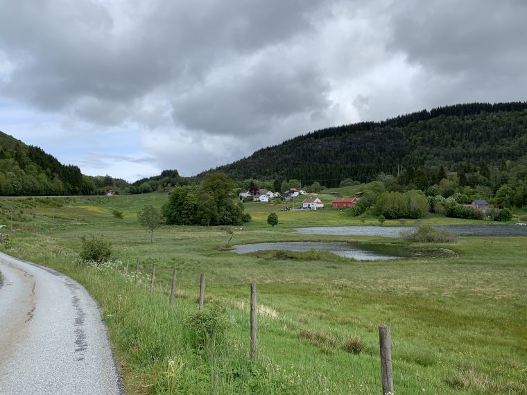 Day 15 The weather forecast had announced a rainy day and it was raining as I left the hotel around 7am. I stopped at a coffee shop for breakfast before hitting the road northward through the outskirts of Bergen.