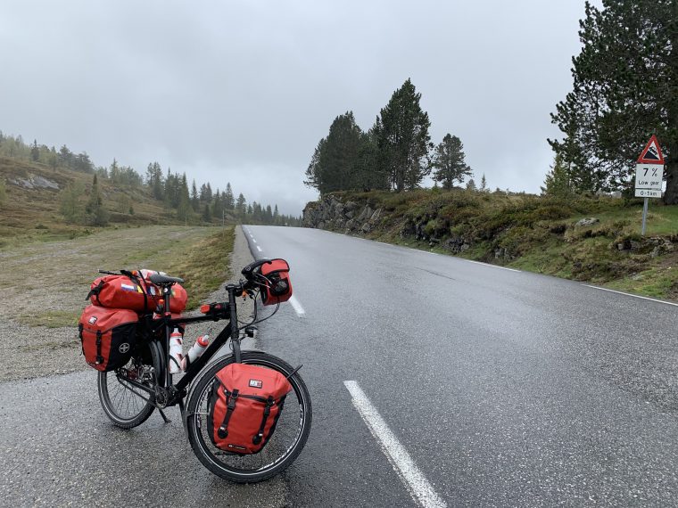A last 640 m climb awaited me after Byrkjelo, followed by a fast descent to the Innvikfjord. After a final 25 km road section along the shore of the fjord I reached Olden and stopped at a camping site.