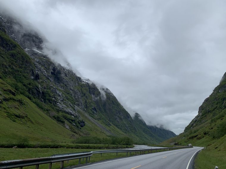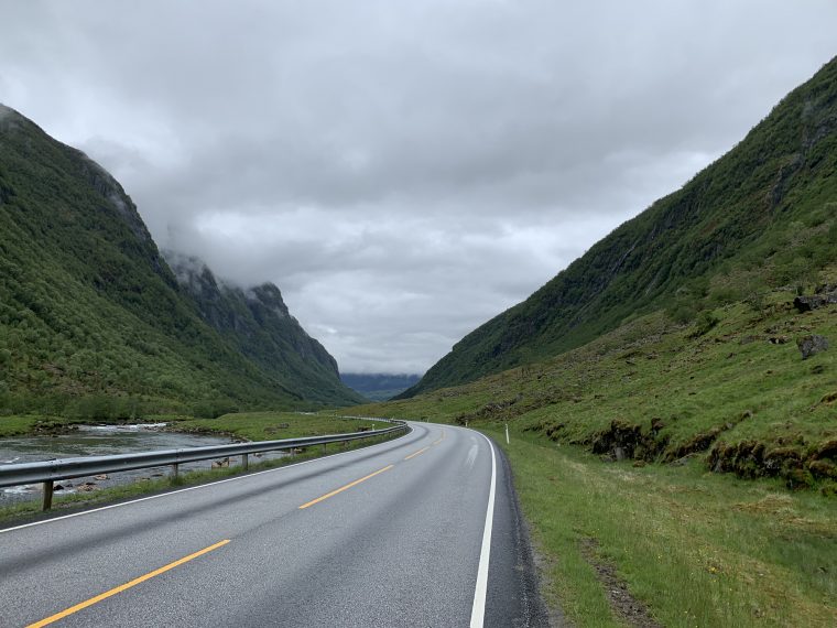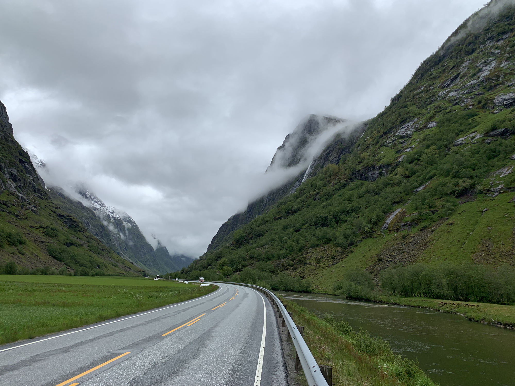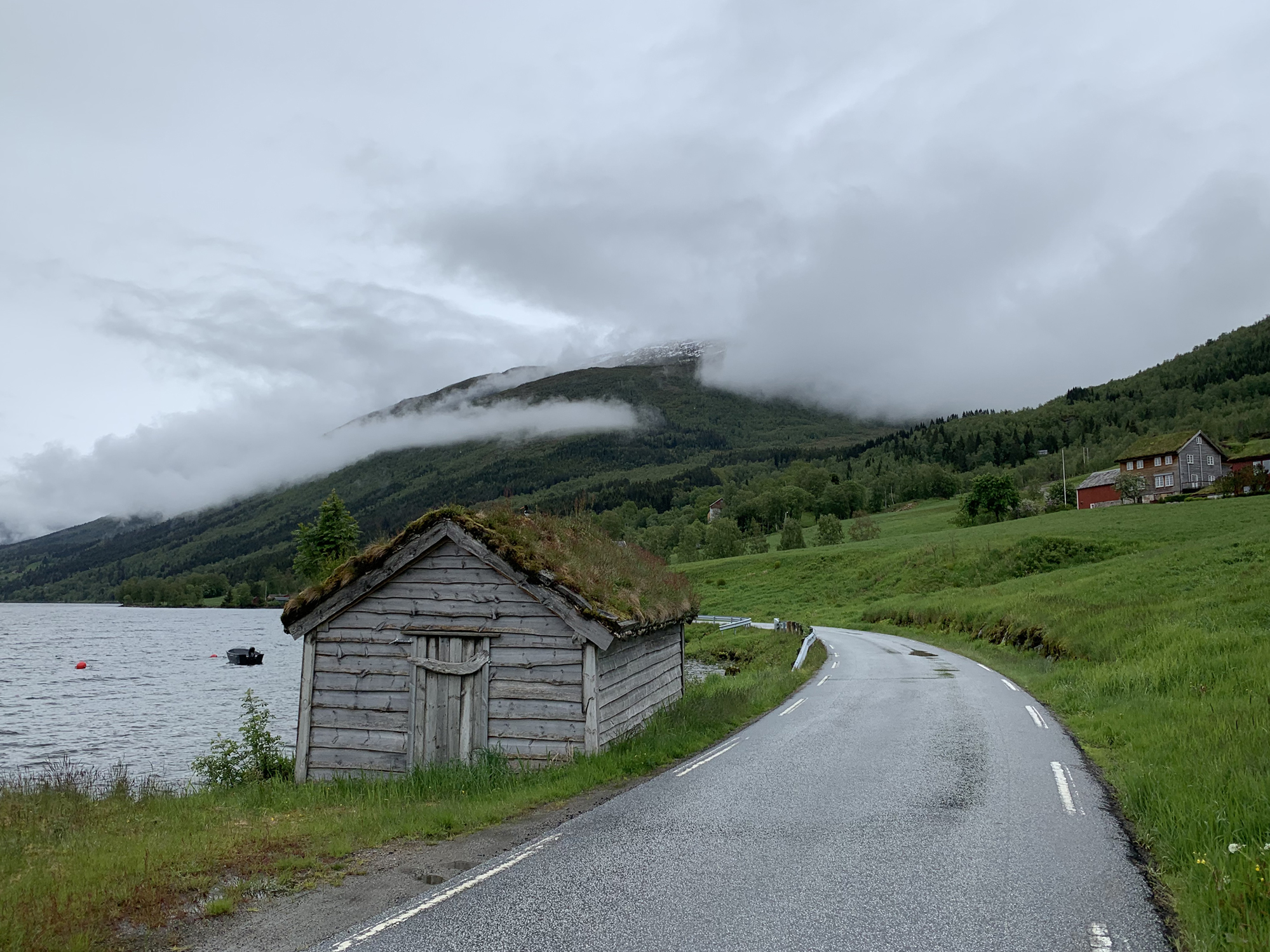 Day 18 The day started with cloudy but dry weather and I enjoyed a nice ride along the Jølstervatnet lake. Between Skei and Birkjelo the road follows a torrent curse through an ancient mossy glacier valley between 1000 m high mountain walls. Grieg’s “In the Hall of the Mountain King” echoed in my mind. I was overwhelmed by the wild beauty of the scenery and later left the valley with a large smile on my face. ⠀