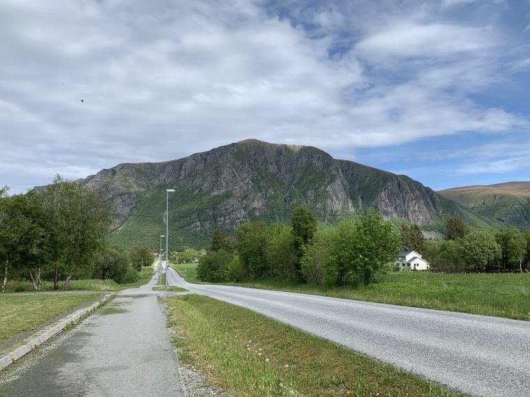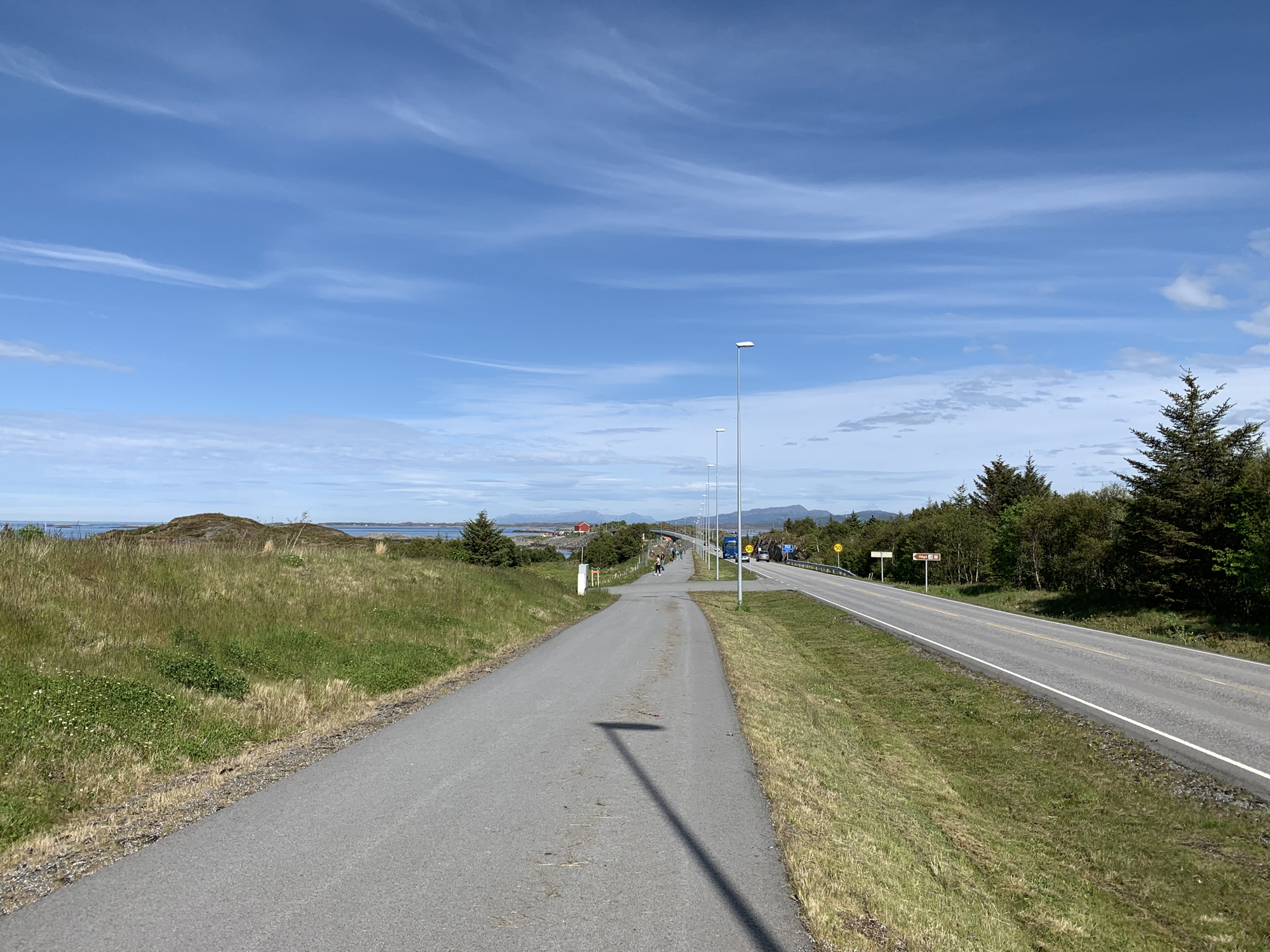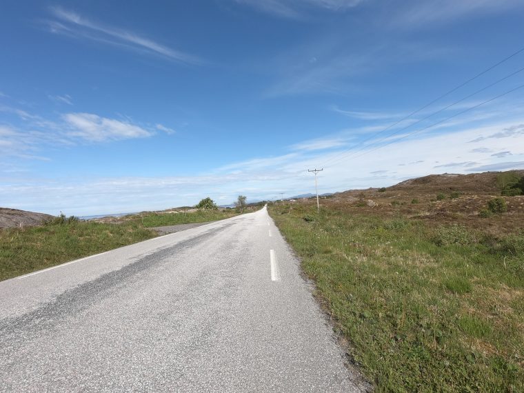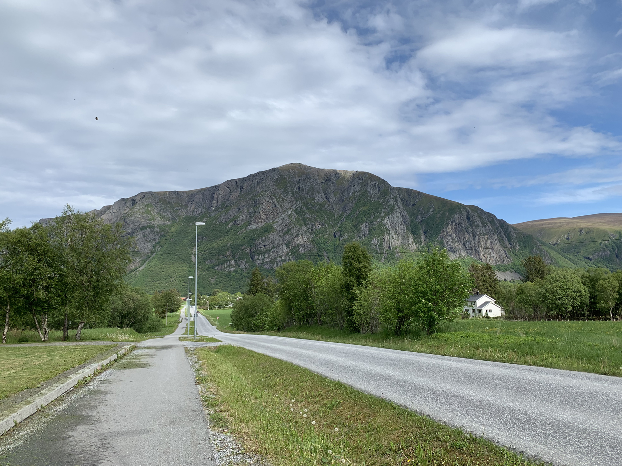 Day 22 I left the Airbnb around 10am and took a quiet road along the coast. Short after having left Molde it started to rain and it kept raining until 3pm. The wind blowed the rain clouds away and during one hour I enjoyed sunshine. But it became again cloudy as I reached Vevang around 4pm.