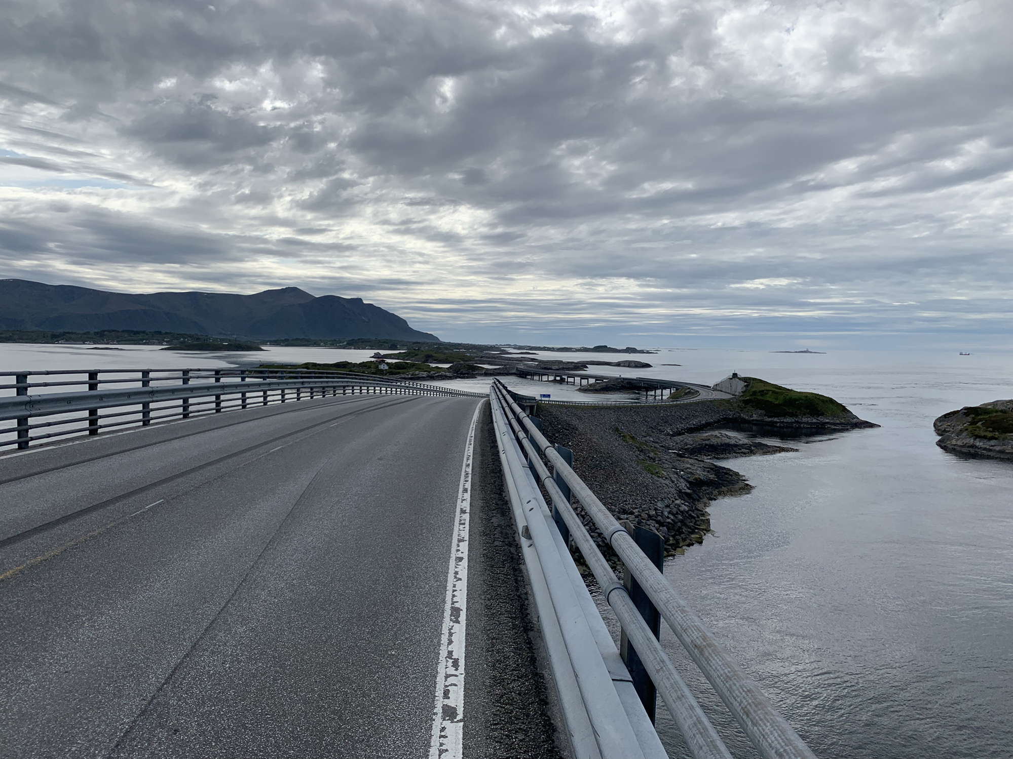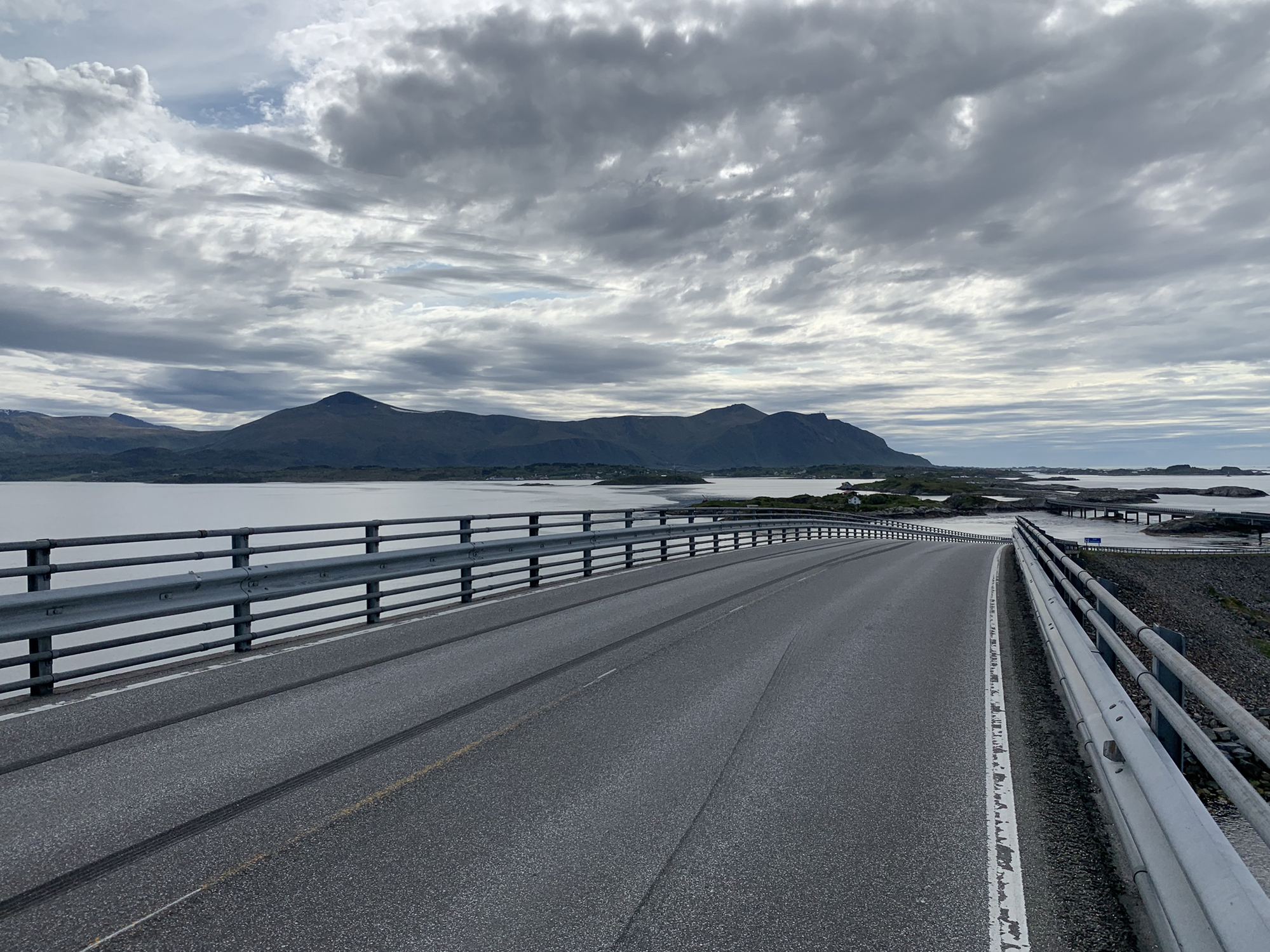 The Atlantic Ocean Road had been closed to the public until 3pm to host a film stage of the next James Bond movie “No Time to Die”. After reopening all parking places along the scenic road remained closed to the public, but as there was no police or security at the top of the high bridge, I stopped to take a few pictures before turning back.