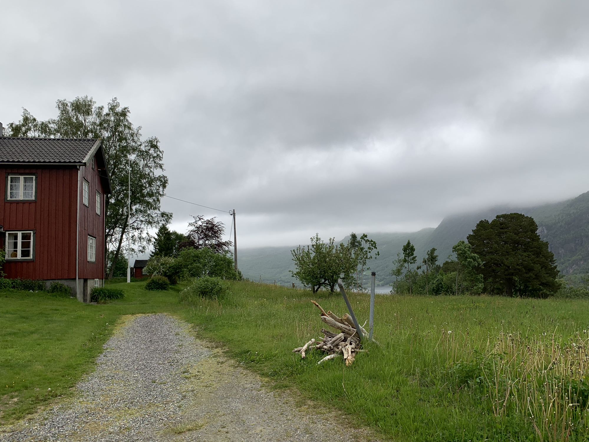 After the heavy traffic on the E39, it was pleasant to be alone on a quiet road despite the rain. Short before reaching Fannrem, the rain stopped and I easily found the old-fashioned inn in the middle of the town.