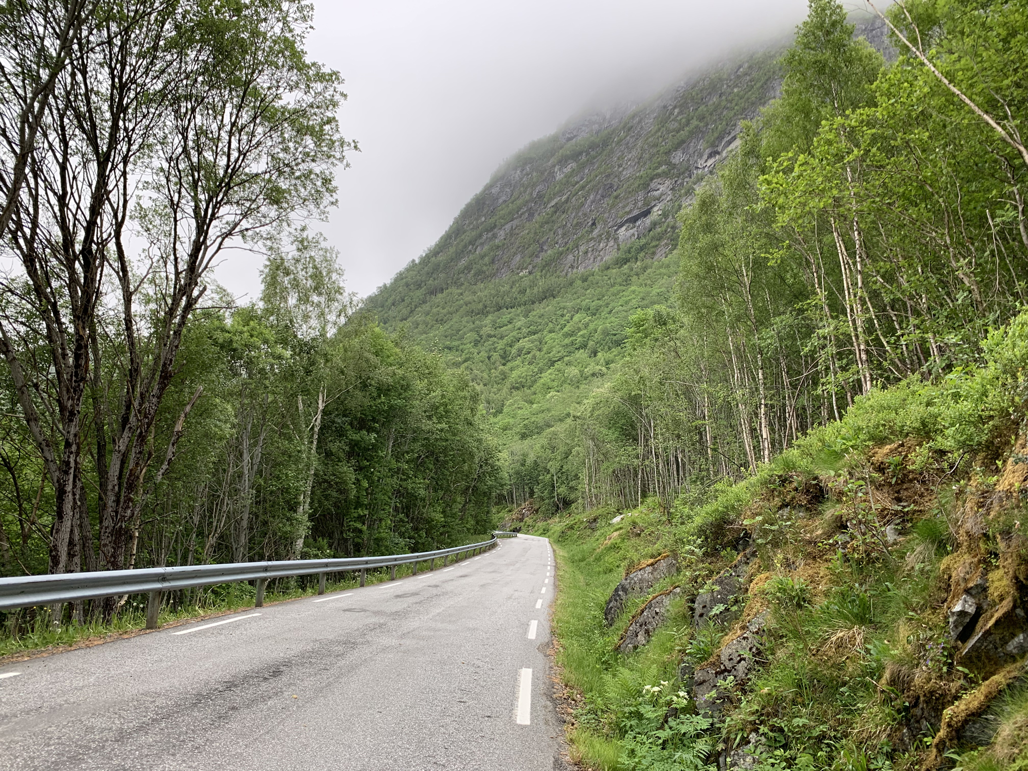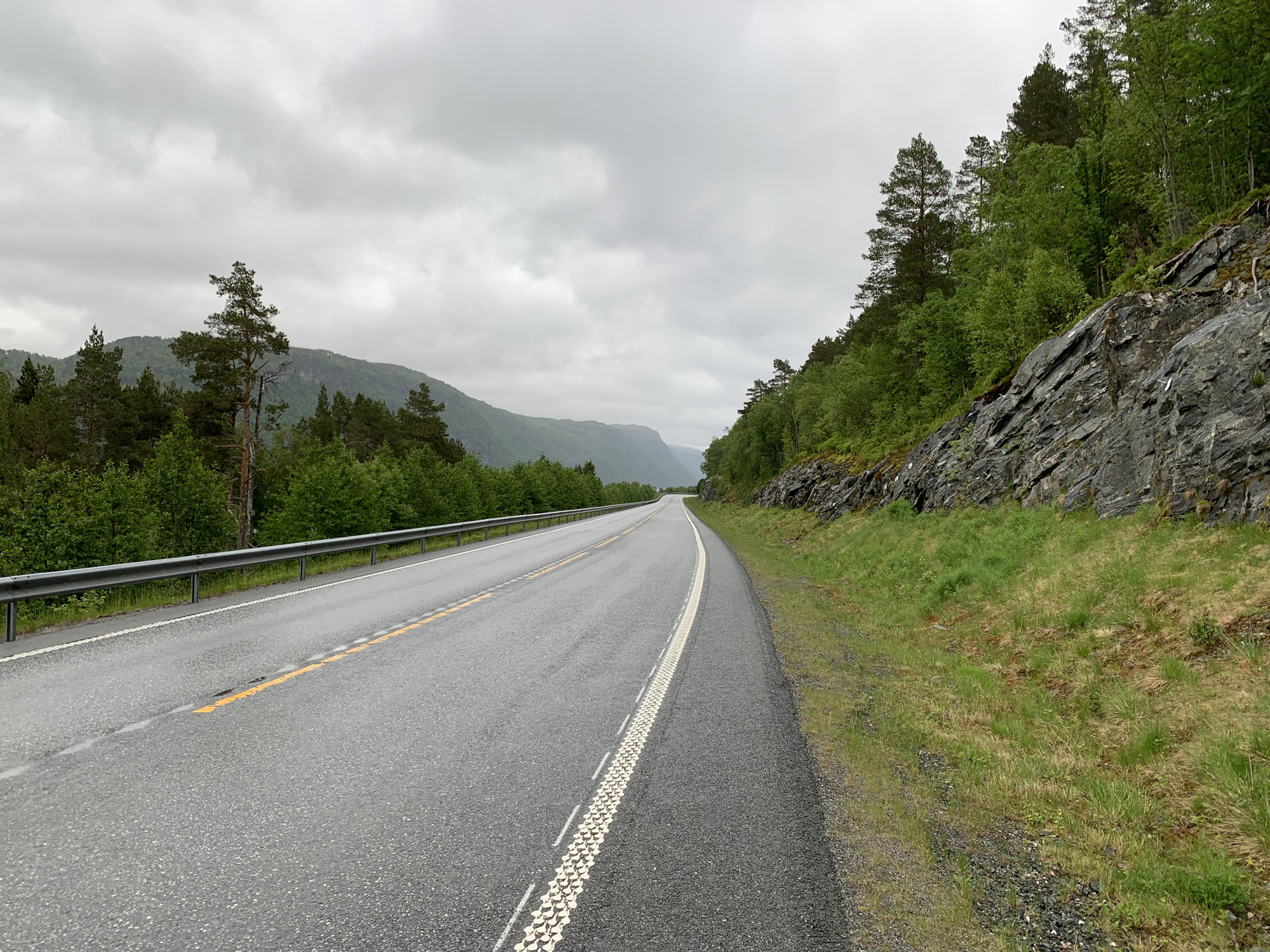 It started to rain and it should rain most of the day. Because of the pouring rain on the E39, I missed to turn right at the junction with road Fv463 to Fannrem and had to wait for a safe opportunity to u-turn on the busy road.