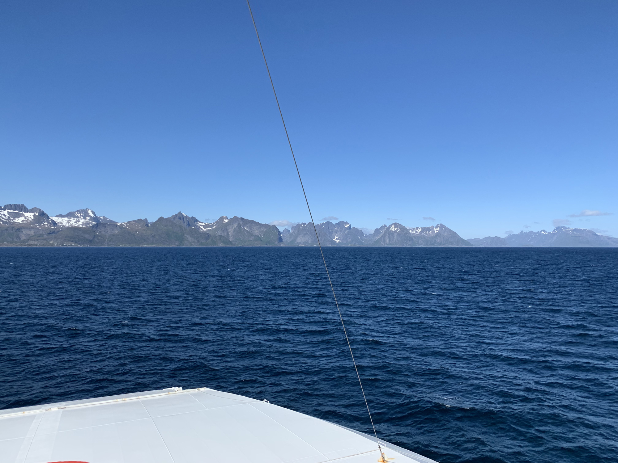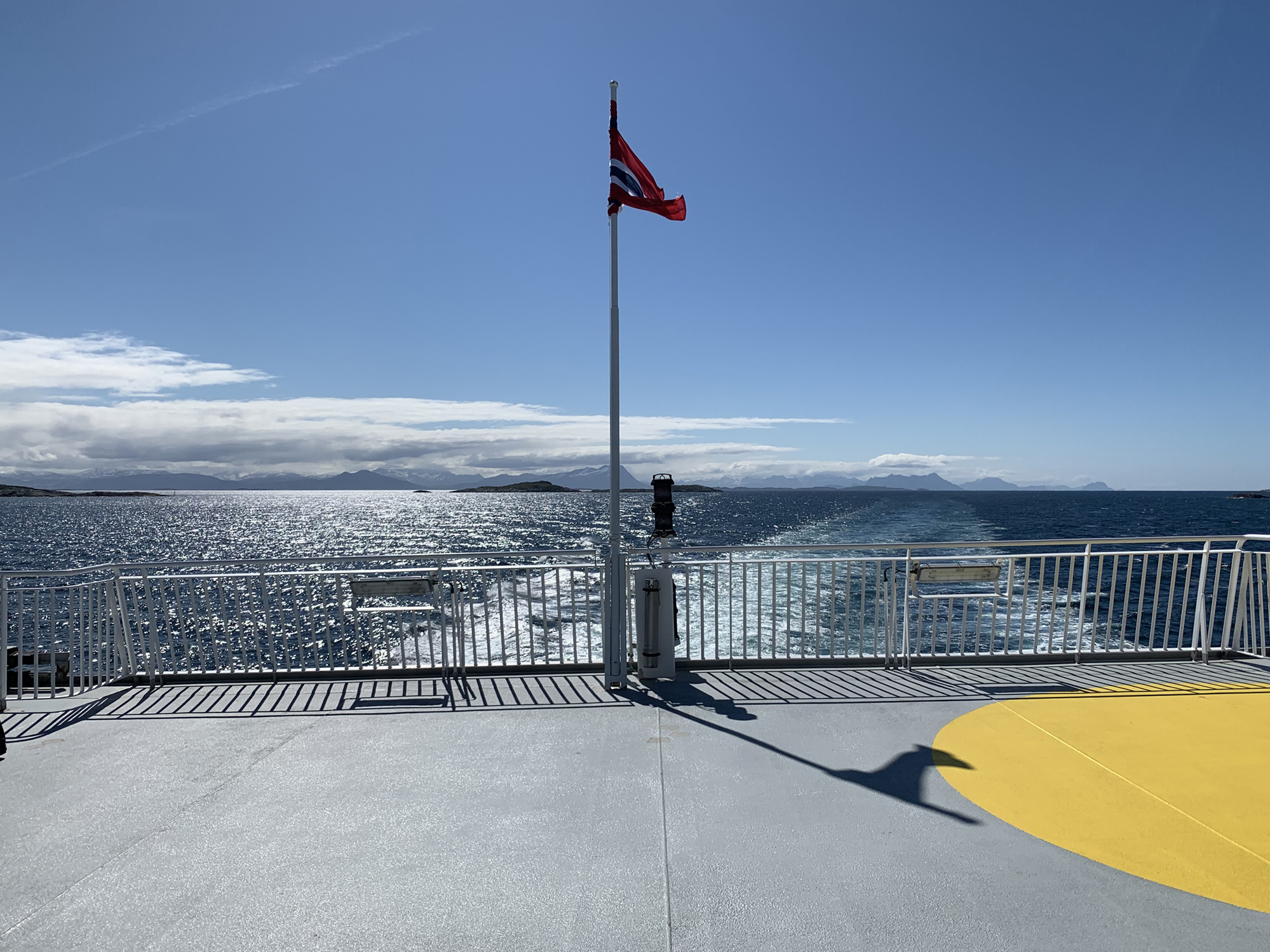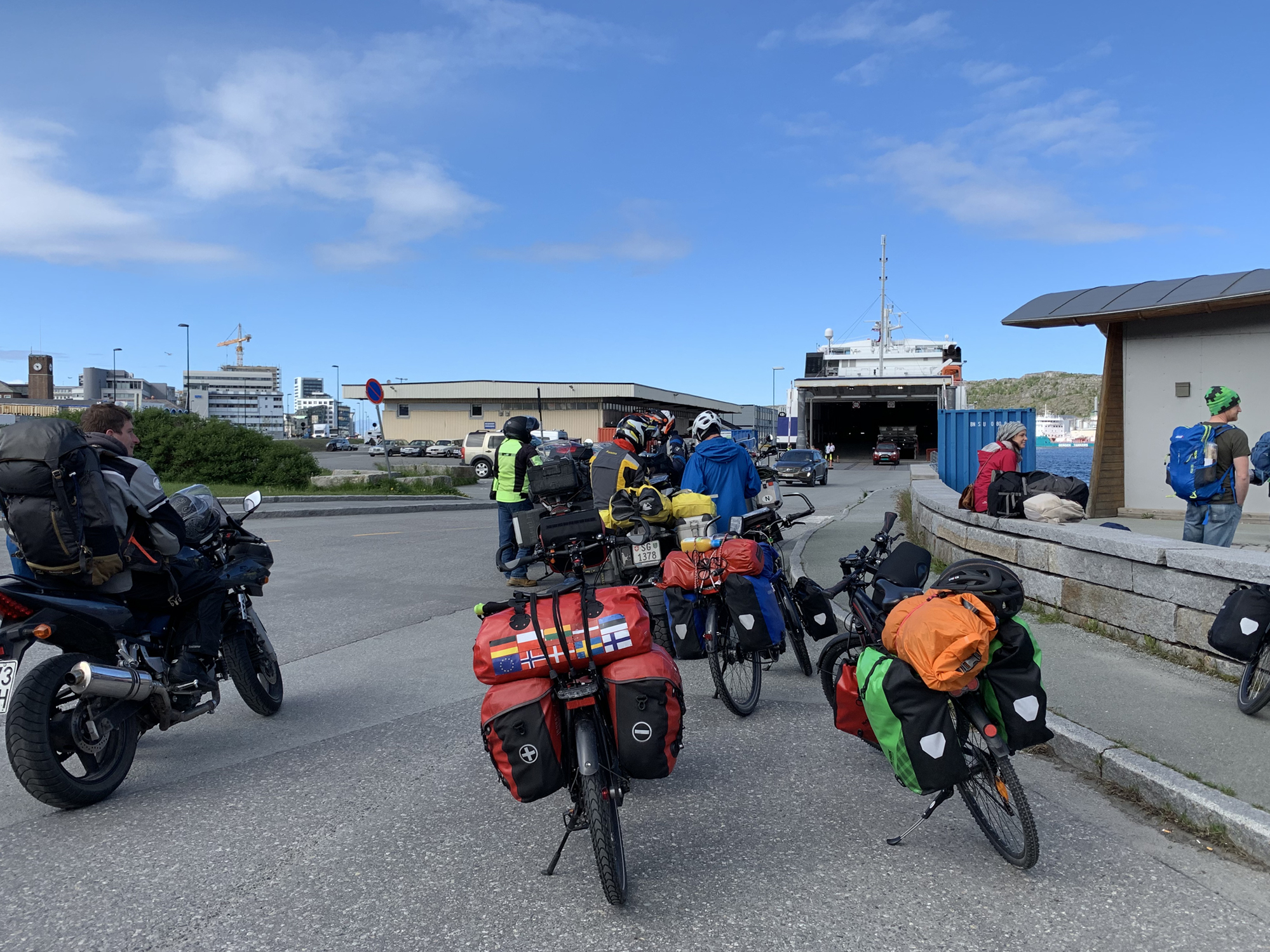 Day 28 I left the Airbnb around 10.30am and arrived at the ferry terminal a few minutes later. Starting from now, I would meet more cyclists on the way to Nordkapp. I had only met a norvegian couple heading to Bergen on my way to Trondheim. A few cyclists from the Netherlands, Germany, France and Liechtenstein were still waiting and a few more came until the ferry departed at 11am.