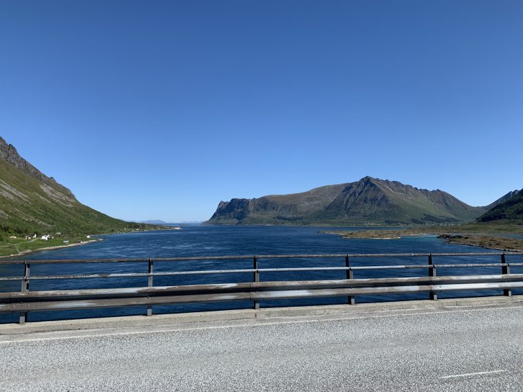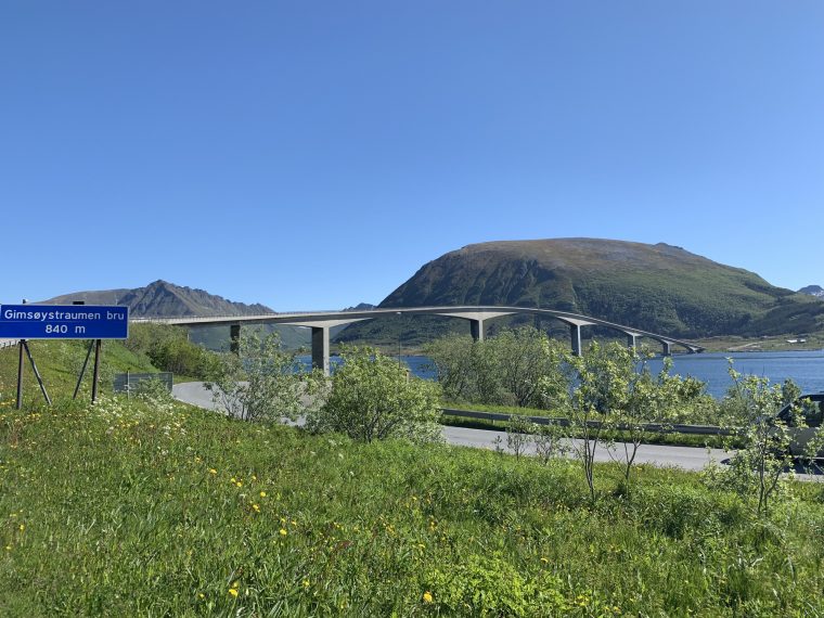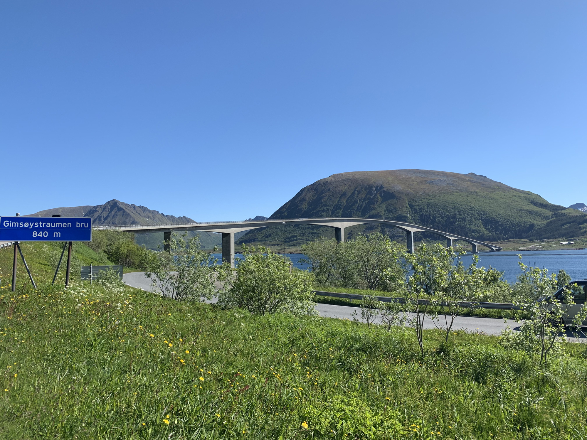 Twenty minutes later I left the island by crossing the 839 m long Gimsøystraumen Bride (Gimsøybrua) connecting Gimsøya and Austvågøya and continued on the E10.