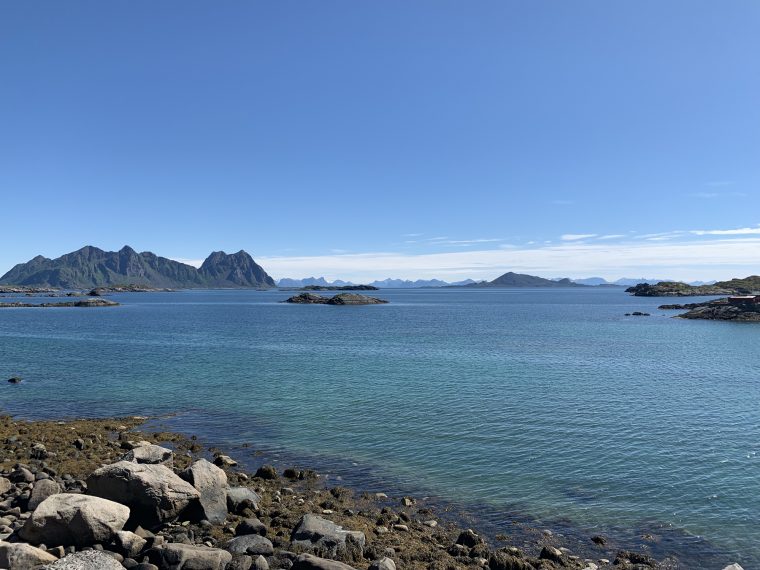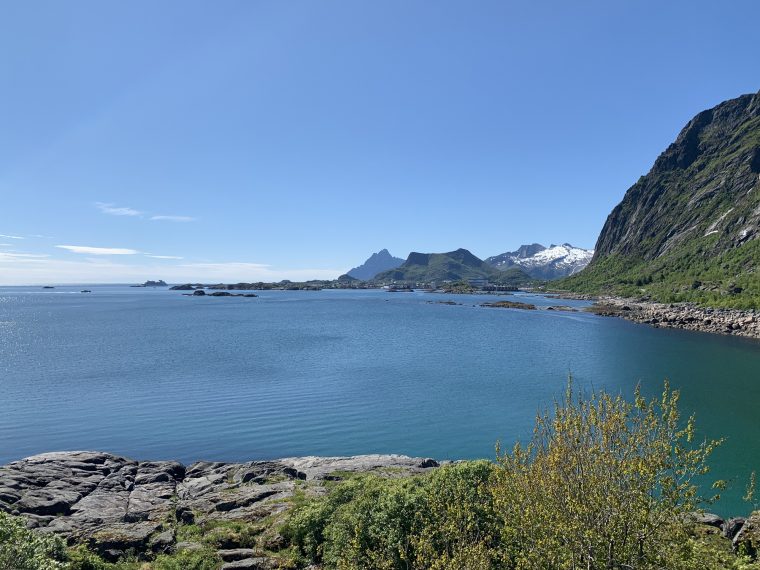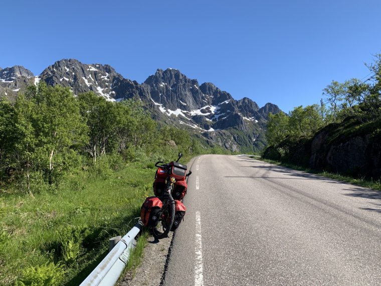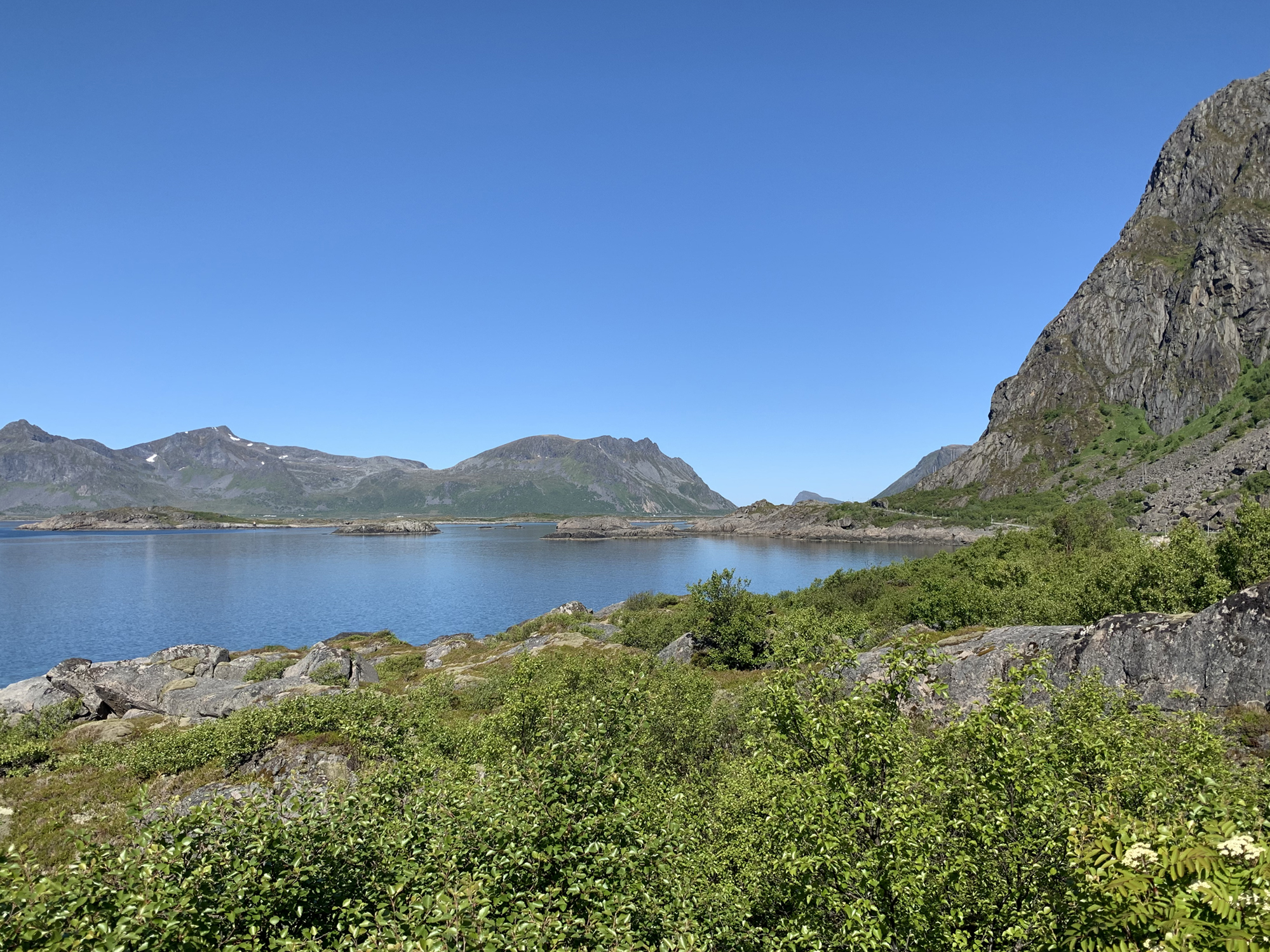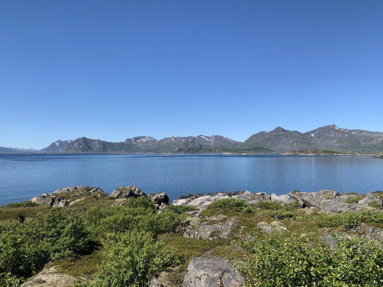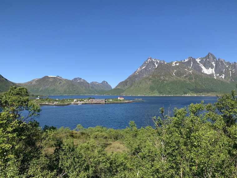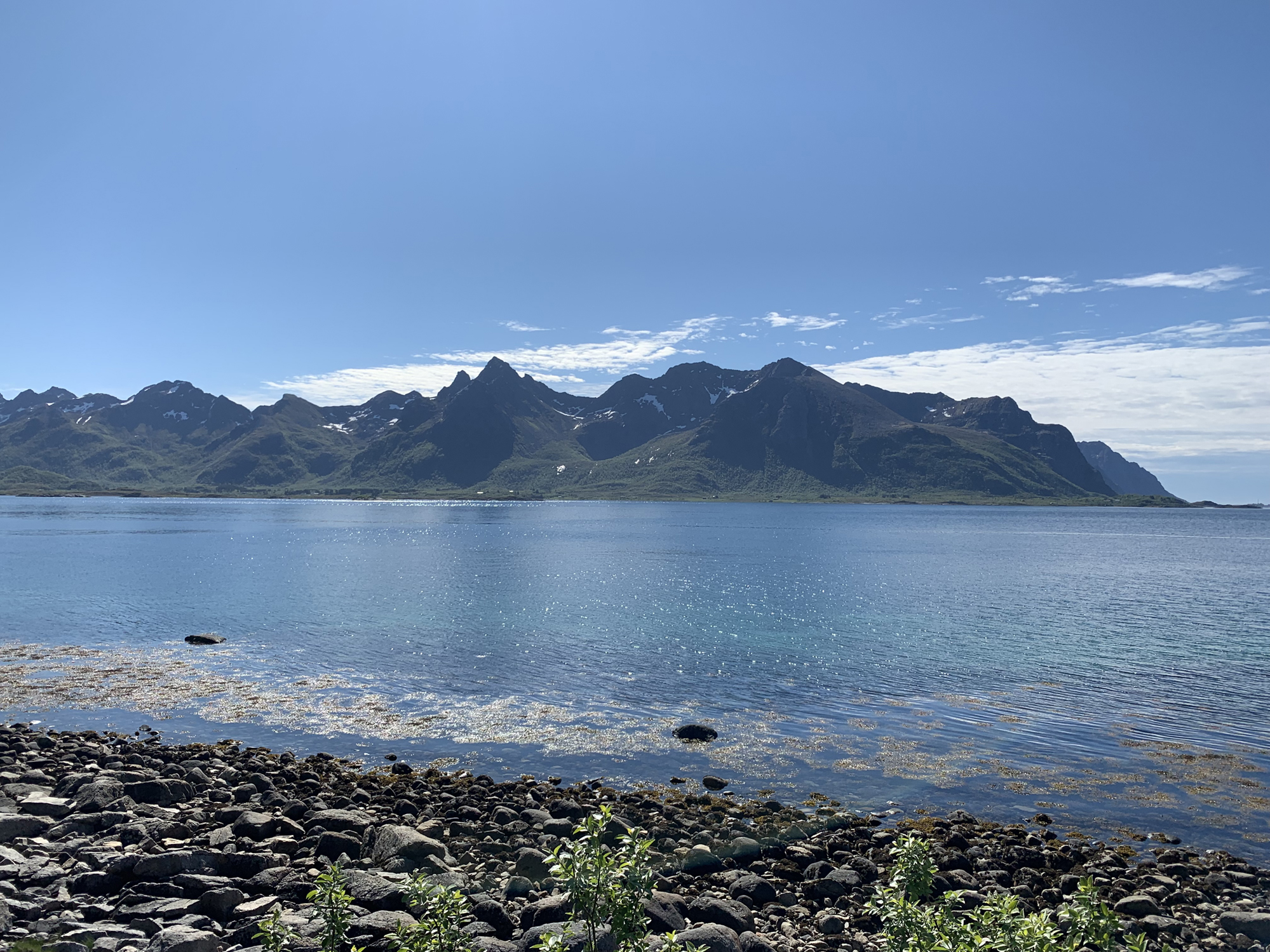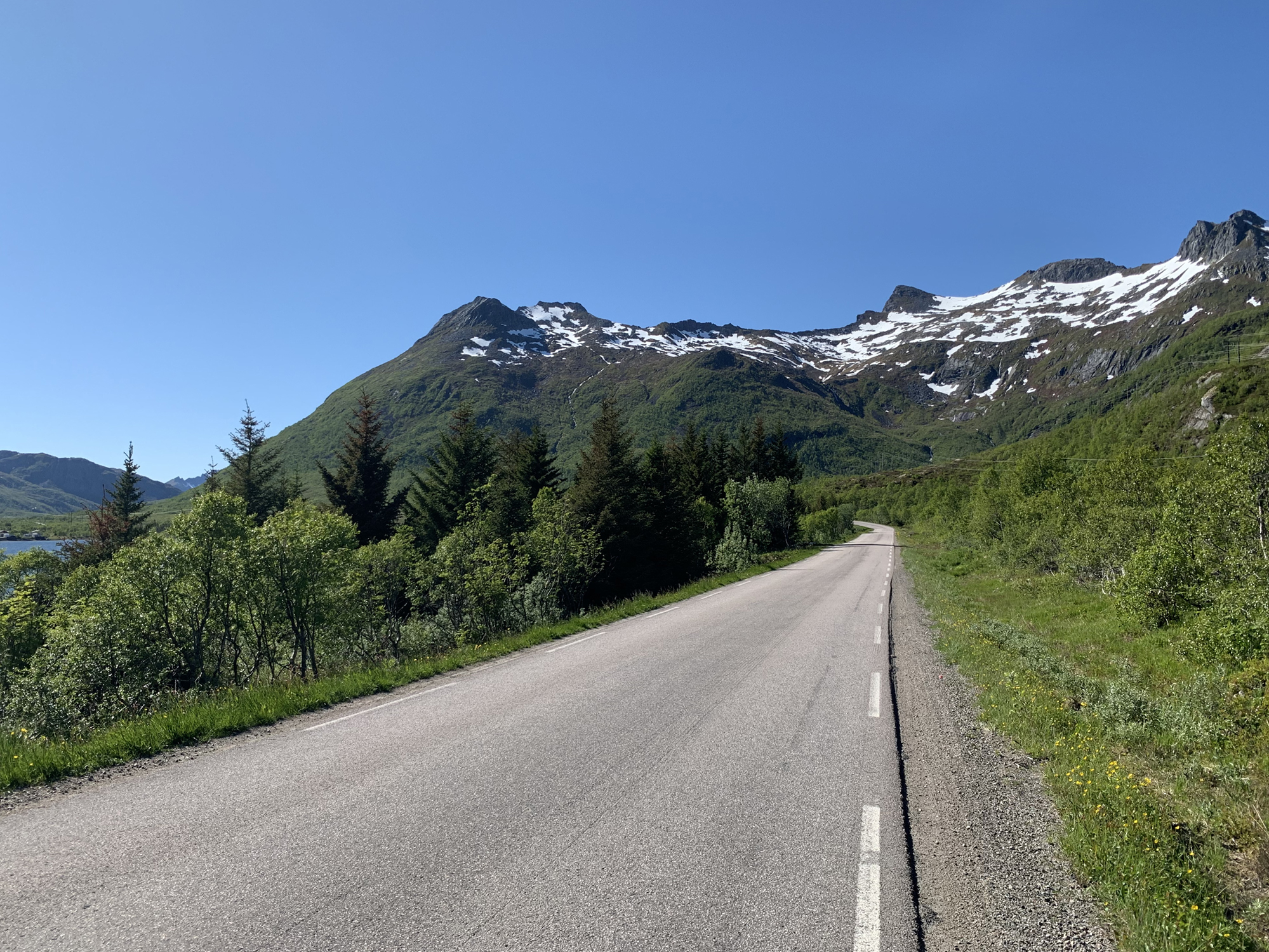 Day 30 Another day of island hopping. I left the camping site around 9am with sunshine and mild 12°C, heading northward on road 815. After 20 km the road ended in mainroad E10 and I passed the Sundklakk Bridge (Sundklakkbrua) connecting Vestvågøya and Gimsøya.
